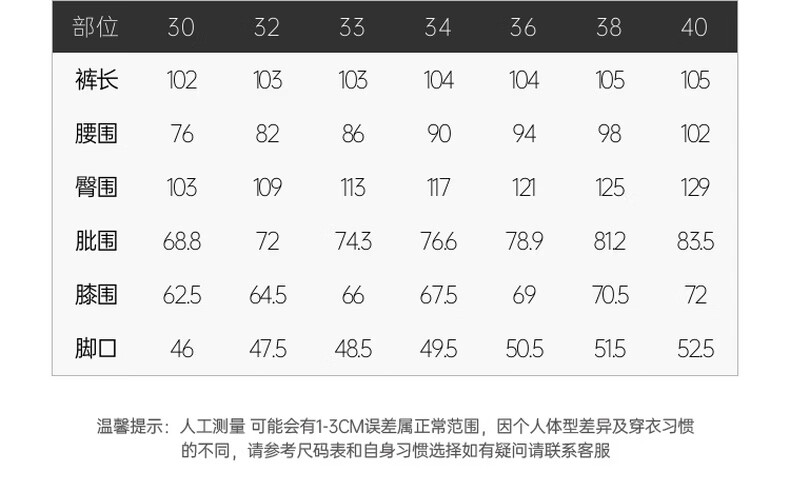 USA(inch) 28-30 30-32 32-34 34-38 38-42