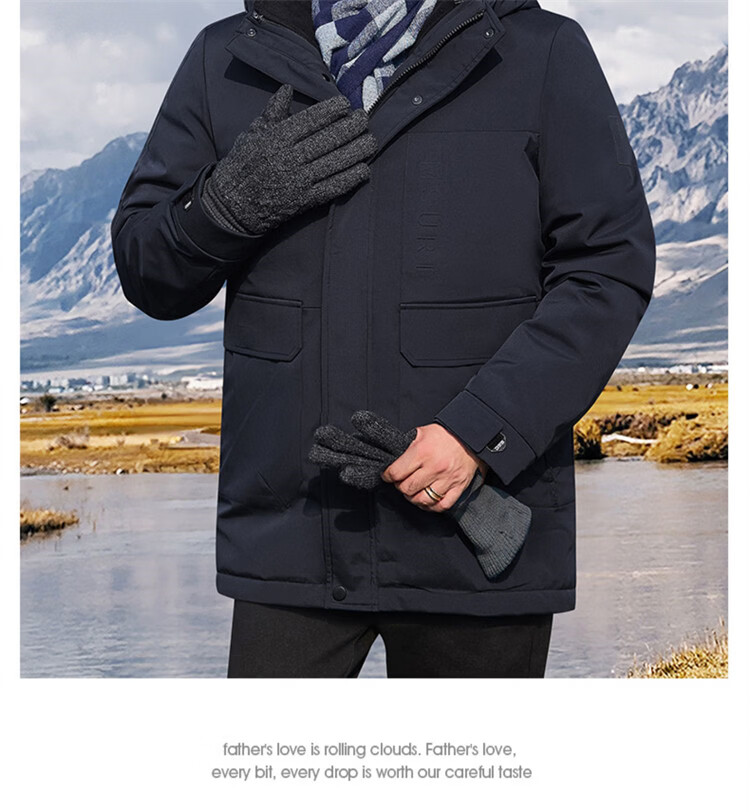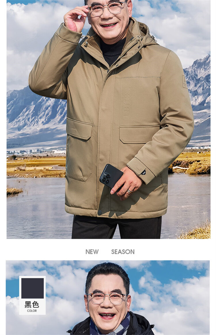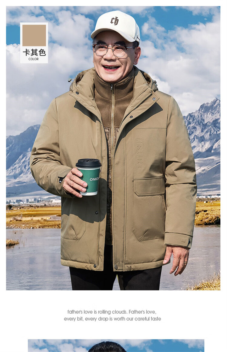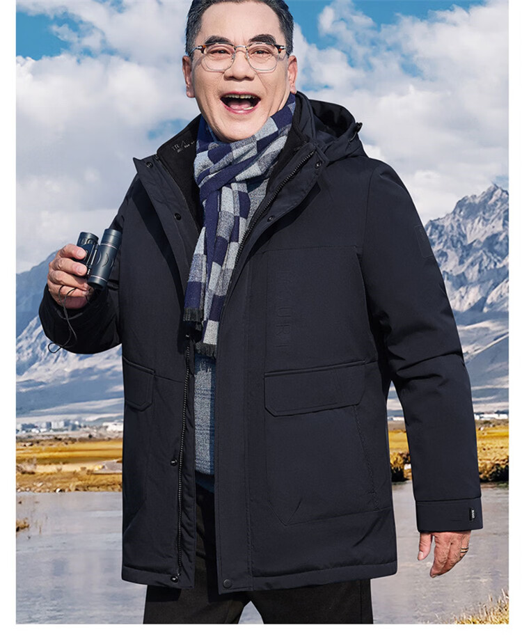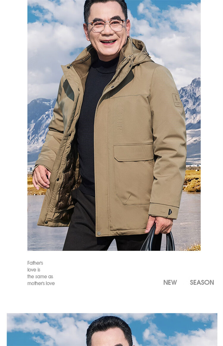 Hengyuanxiang мужское зимнее пальто на утином пуху среднего возраста 90, цельный универсальный пуховик средней длины плюс бархатная толстая куртка для папы цвета хаки M