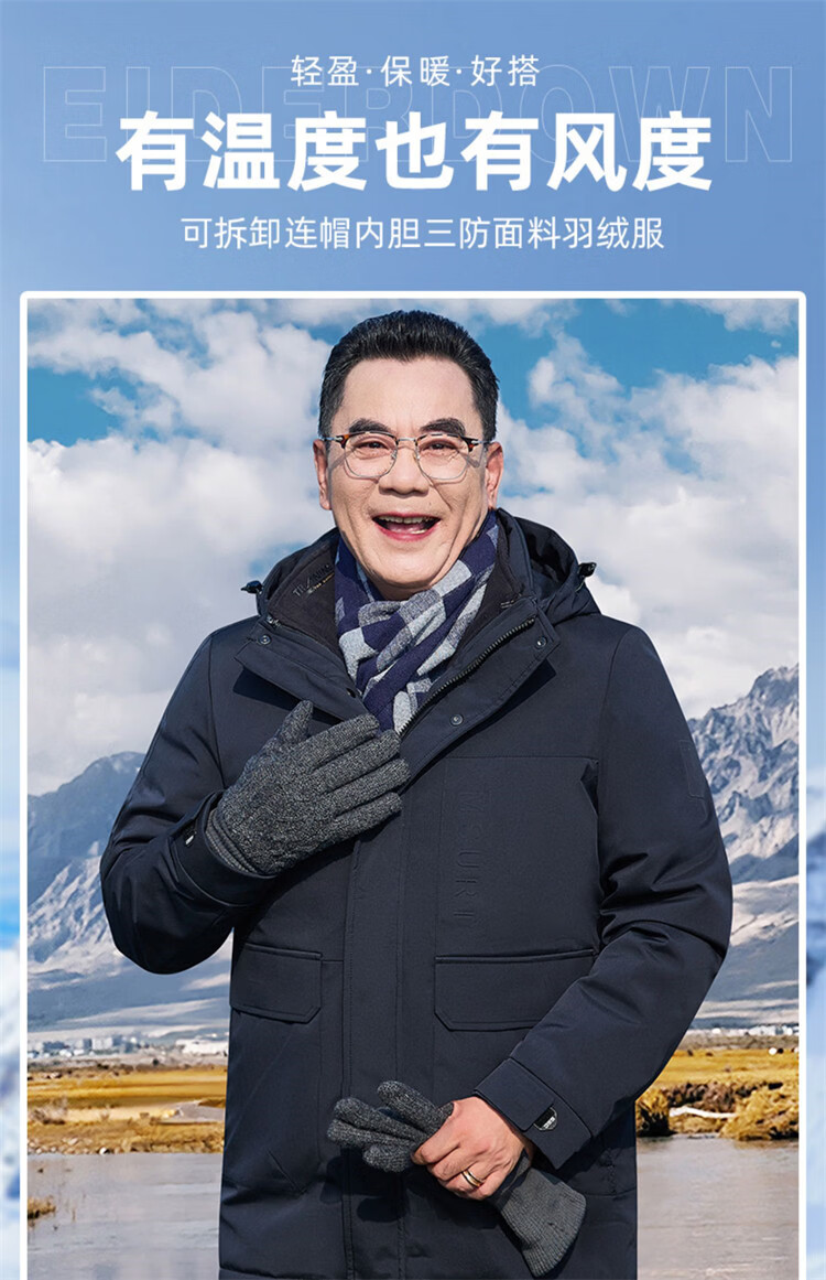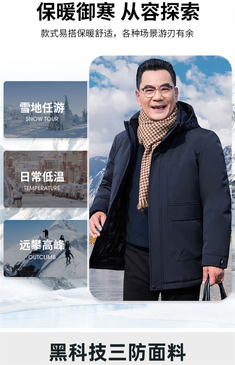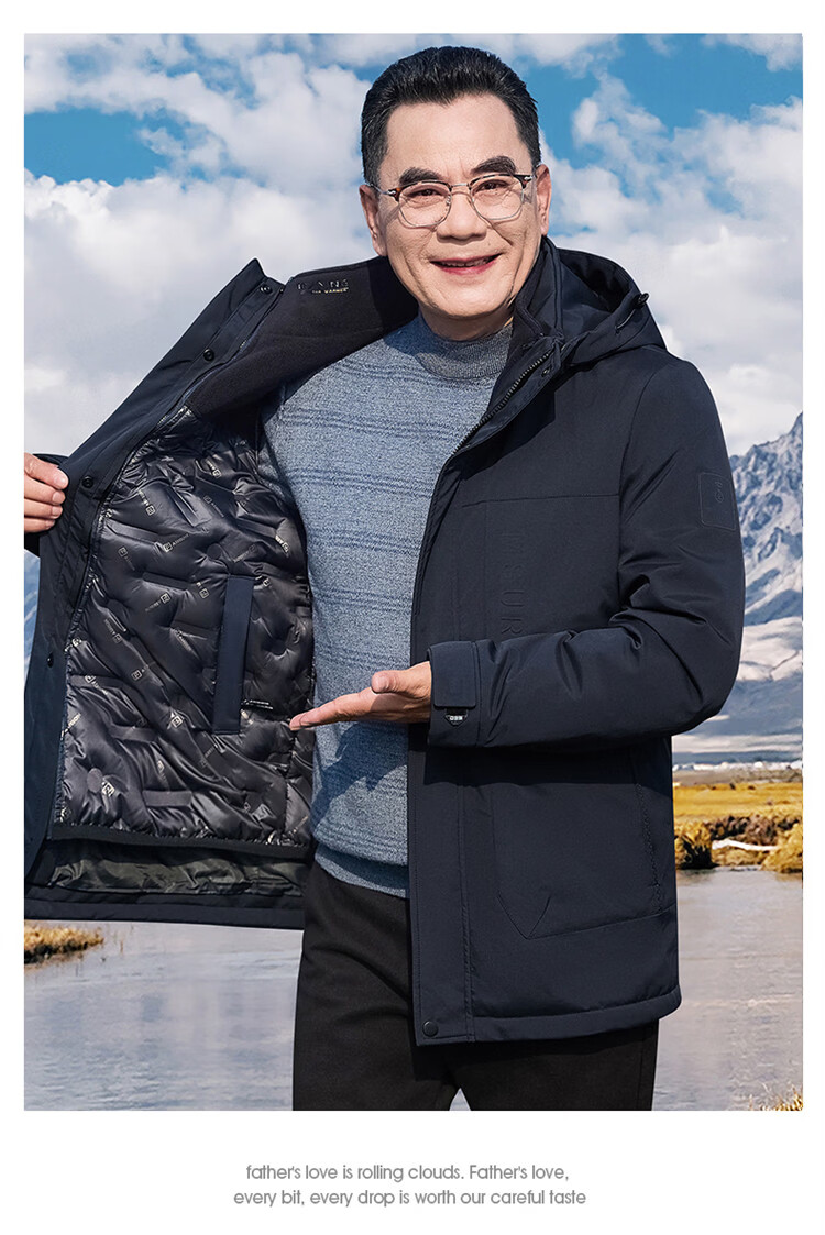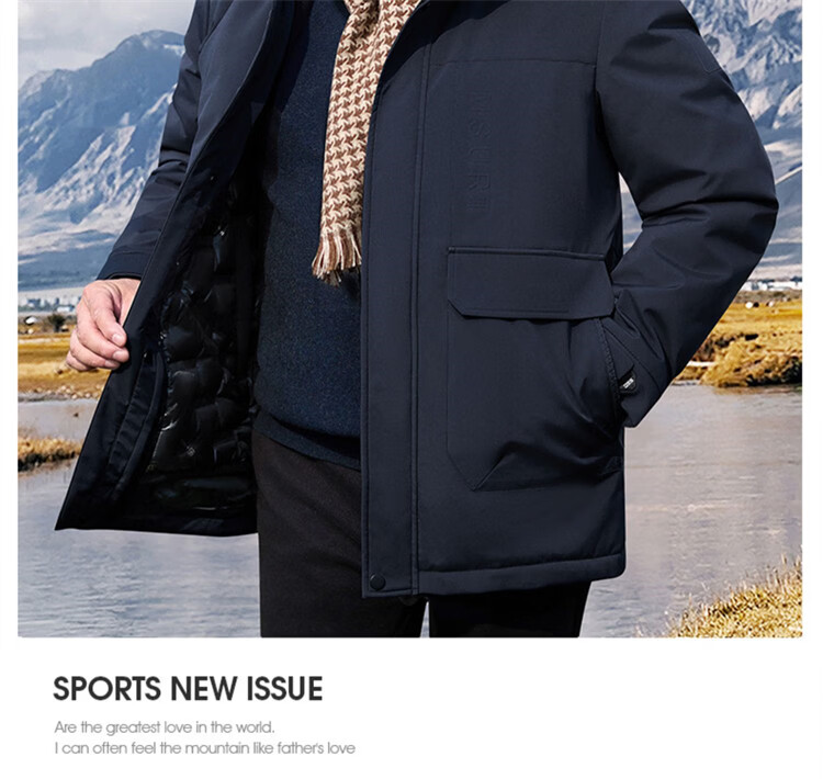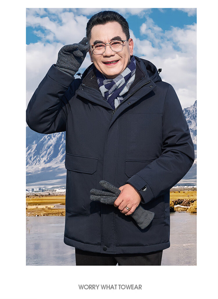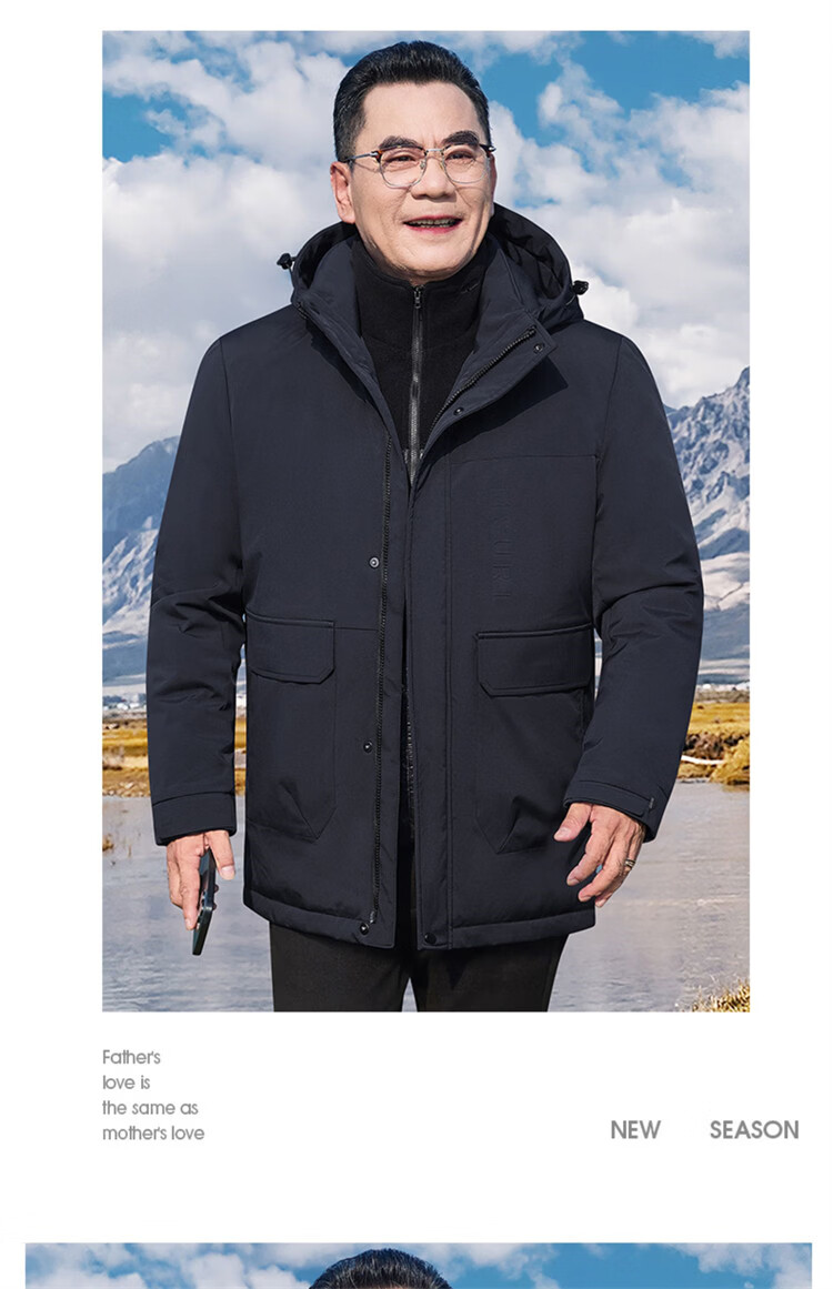 Hengyuanxiang мужское зимнее пальто на утином пуху среднего возраста 90, цельный универсальный пуховик средней длины плюс бархатная толстая куртка для папы цвета хаки M