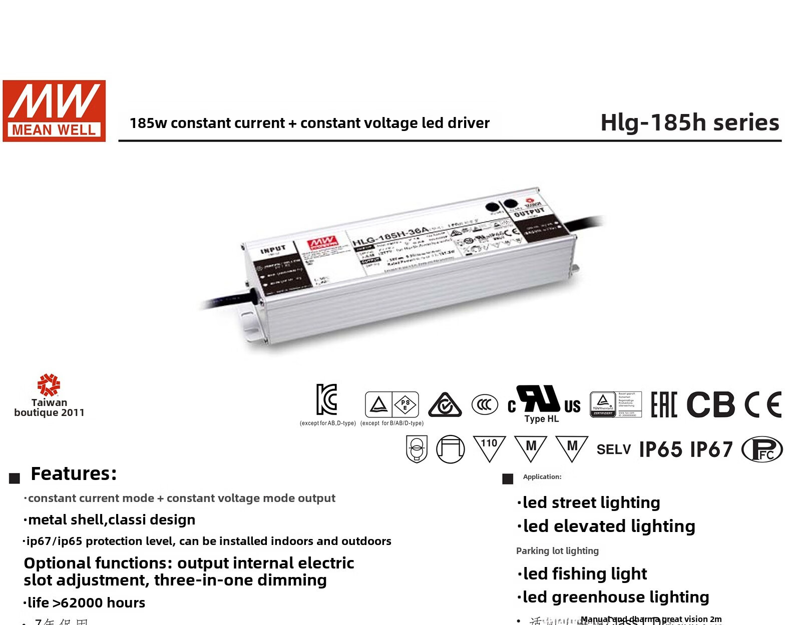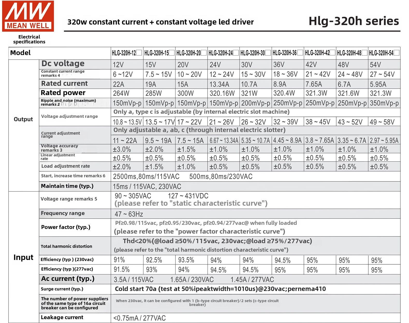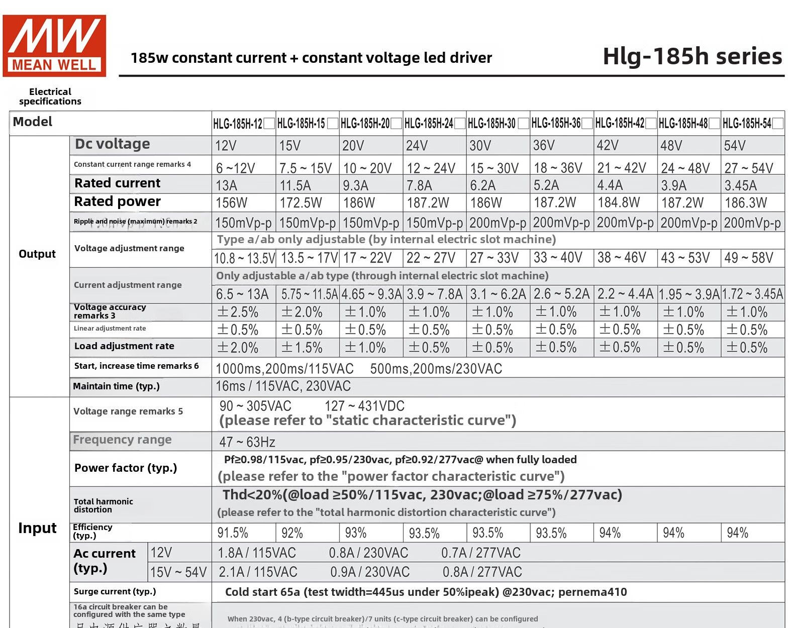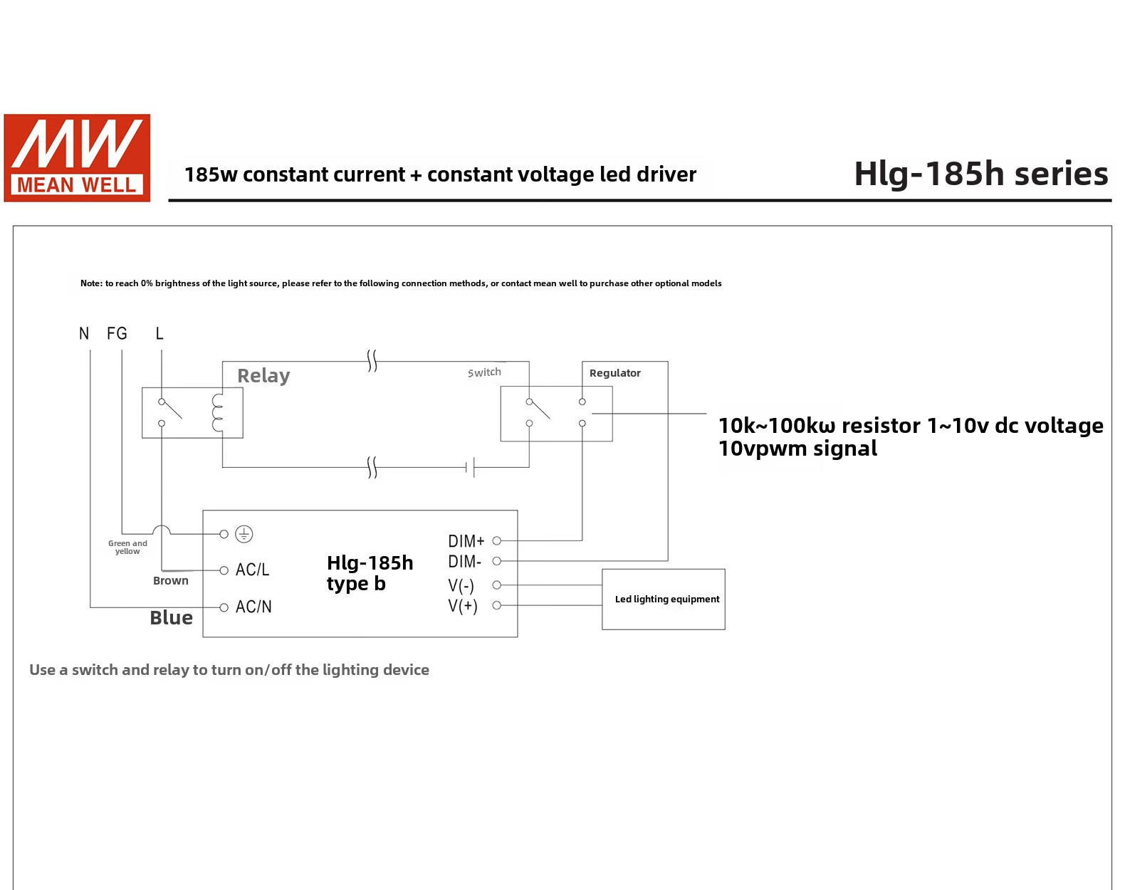 Taiwan MEAN WELL LED driver switching power supply HLG-320H-12B/HLG-185H-12B constant current and constant voltage power supply HLG-320H-12B
