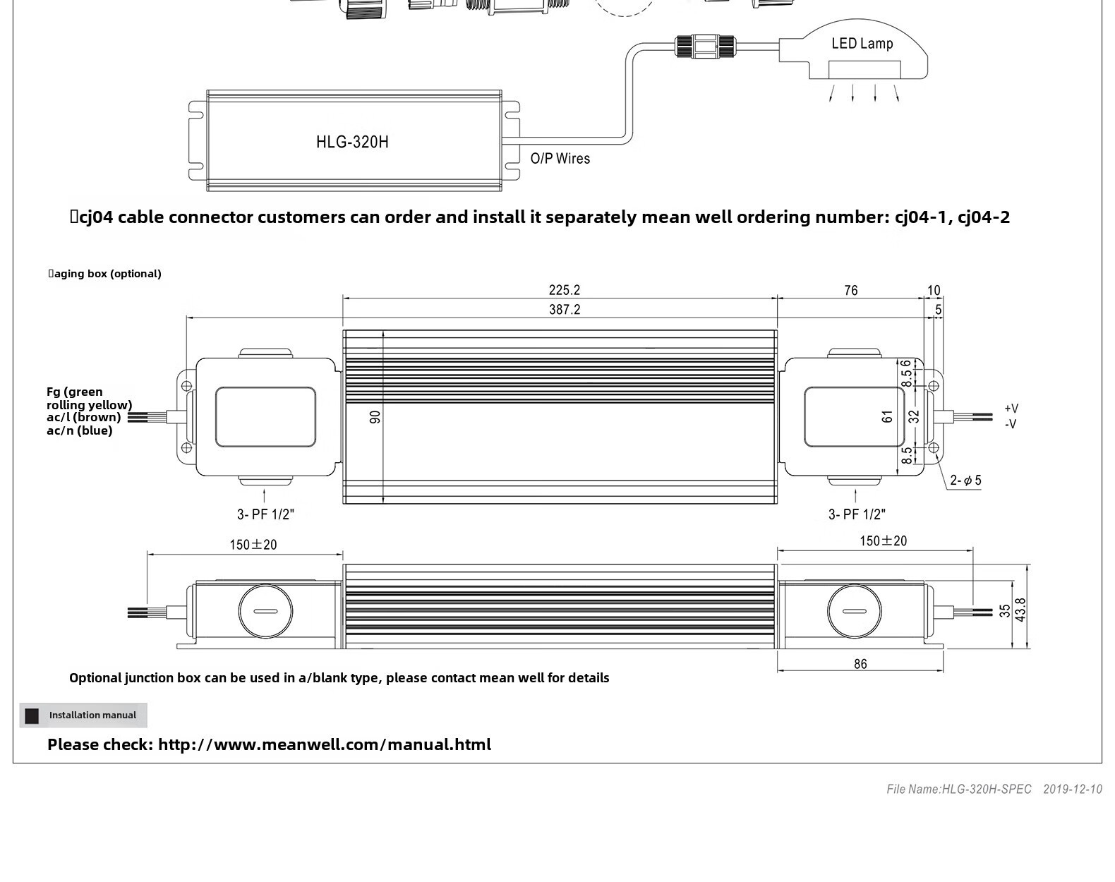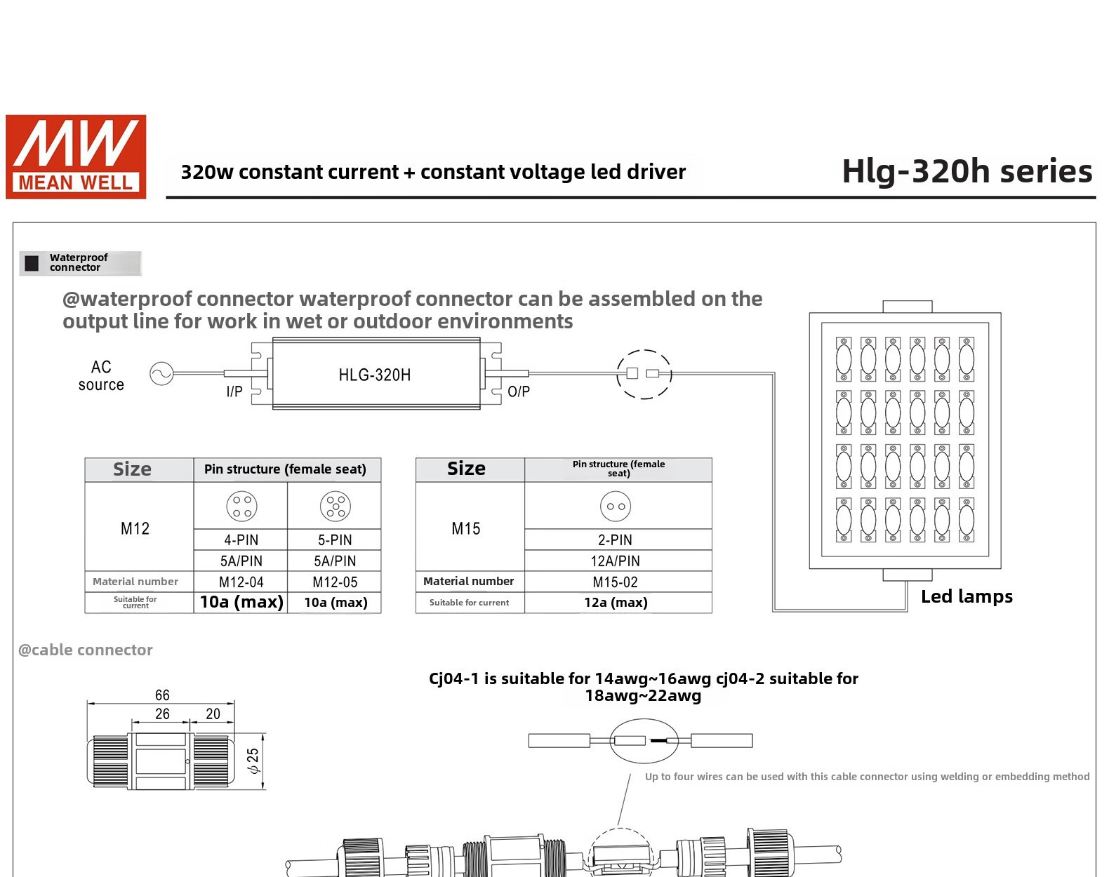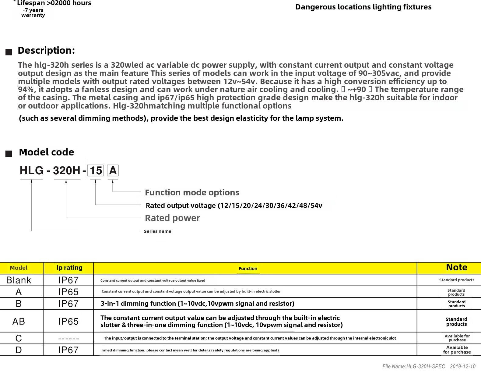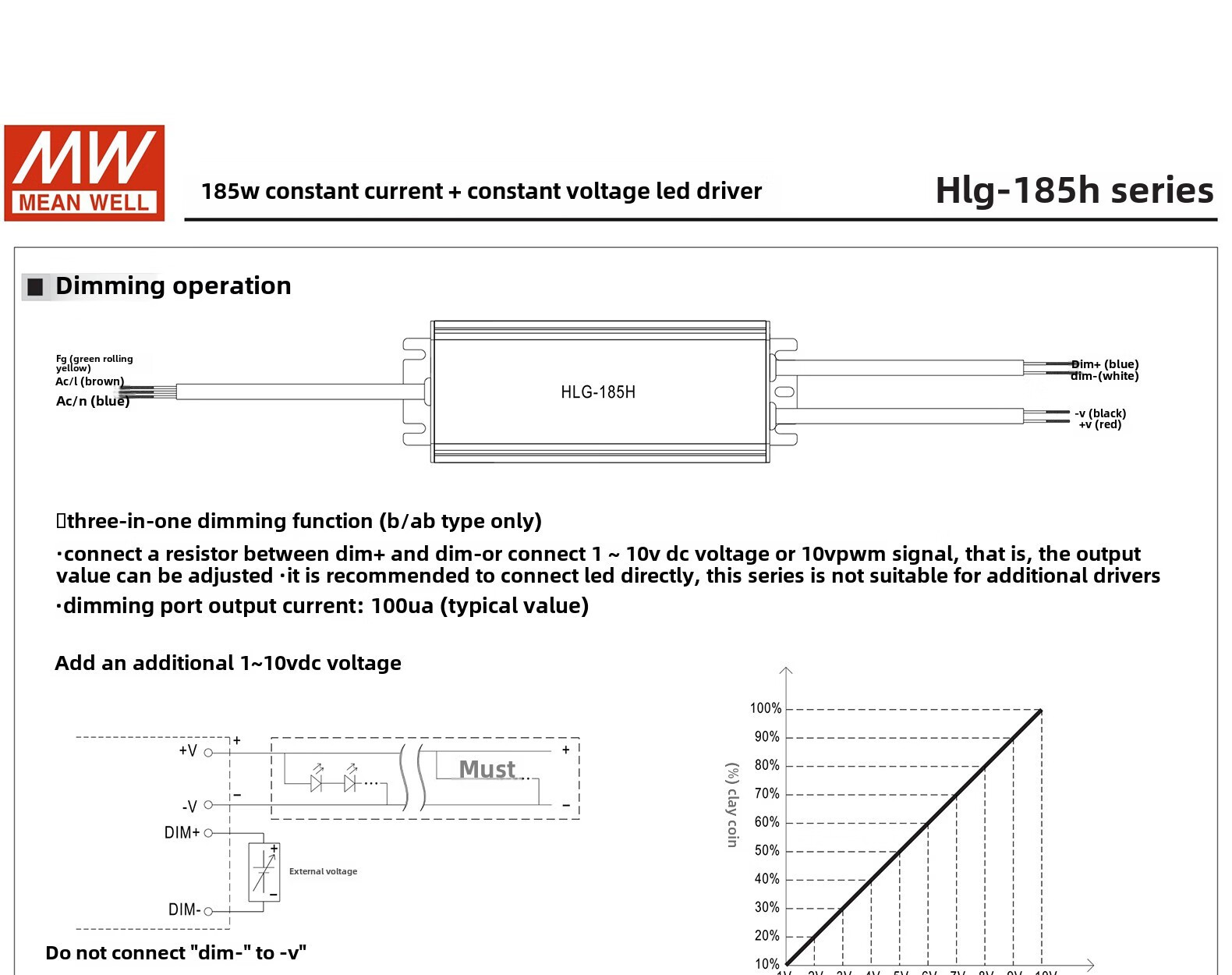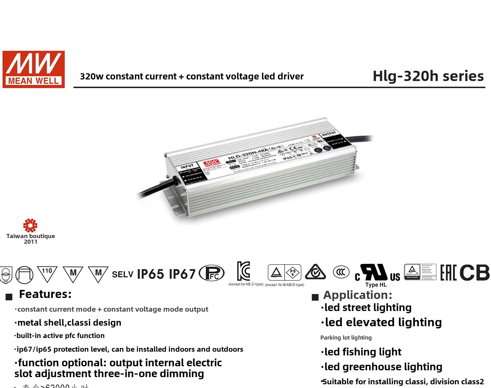 Taiwan MEAN WELL LED driver switching power supply HLG-320H-12B/HLG-185H-12B constant current and constant voltage power supply HLG-320H-12B