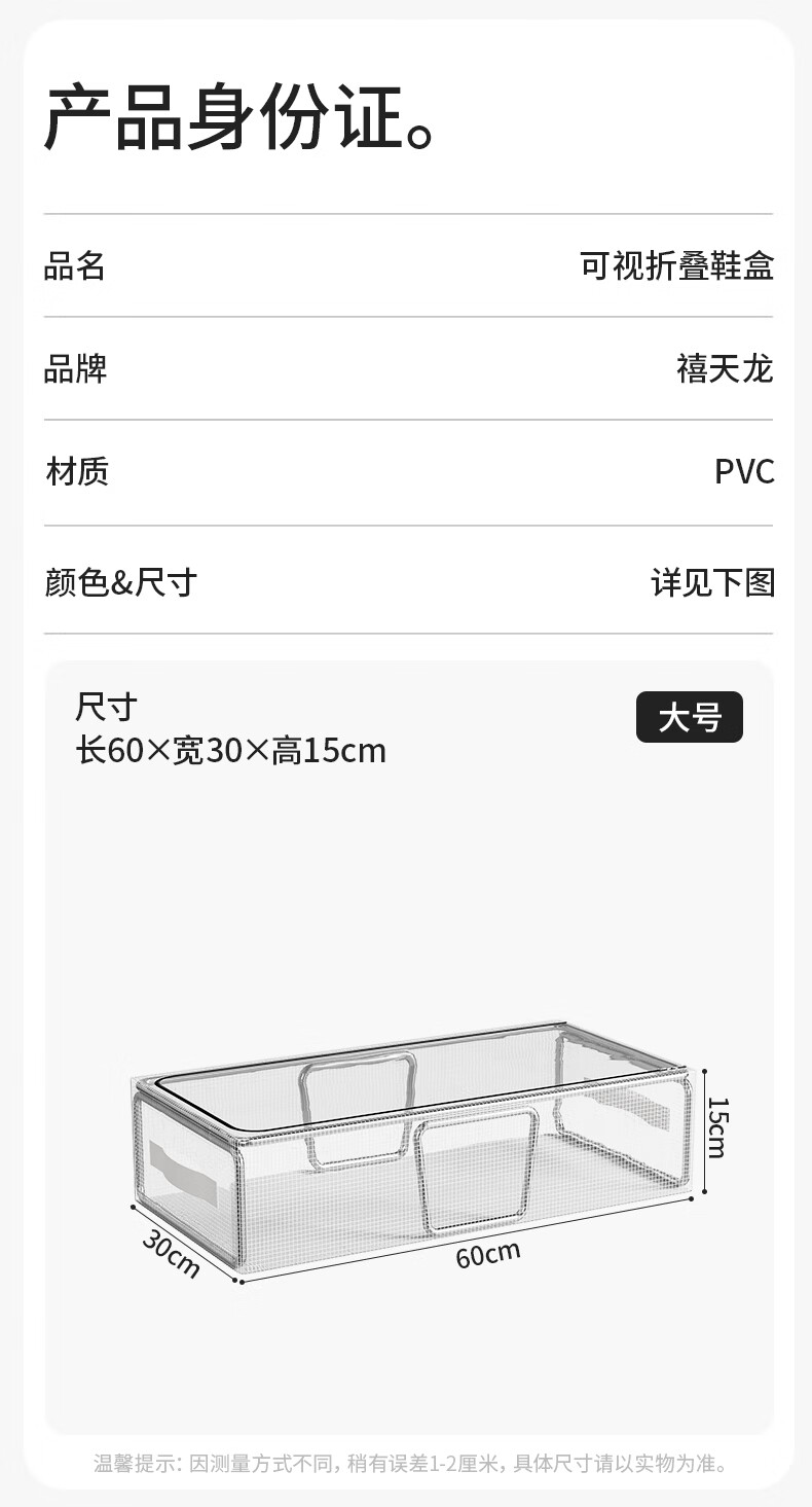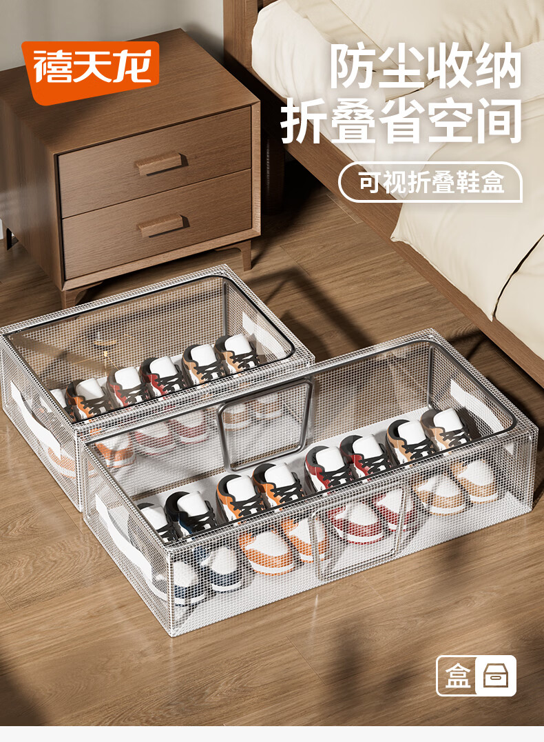 Xitianlong shoe storage artifact space-saving under the bed transparent shoe support shoe cabinet box shoe box storage box transparent shoe rack large dust-proof shoe box 60*30*15cm