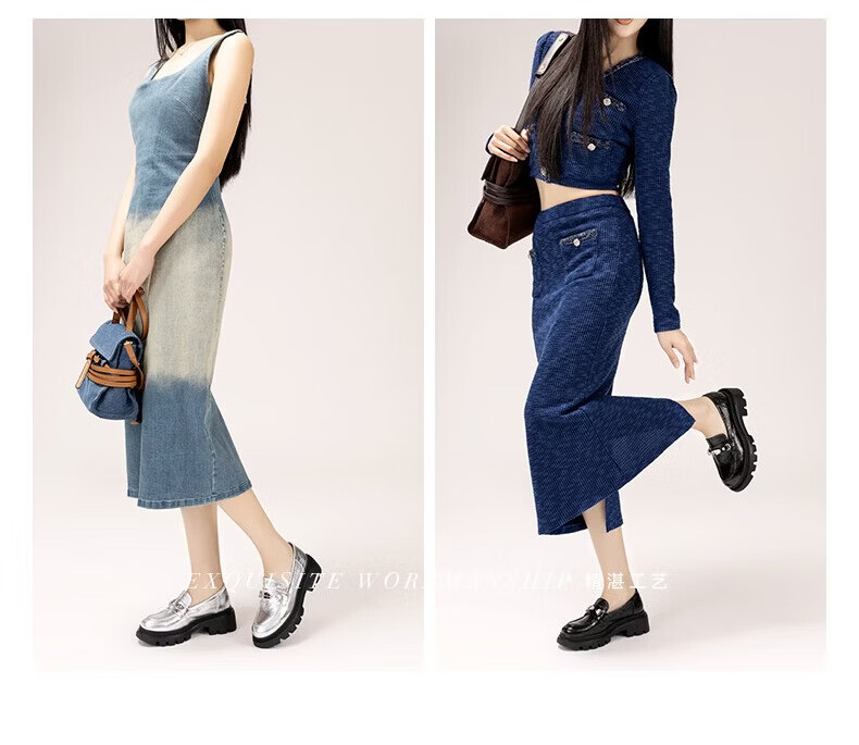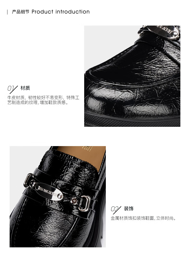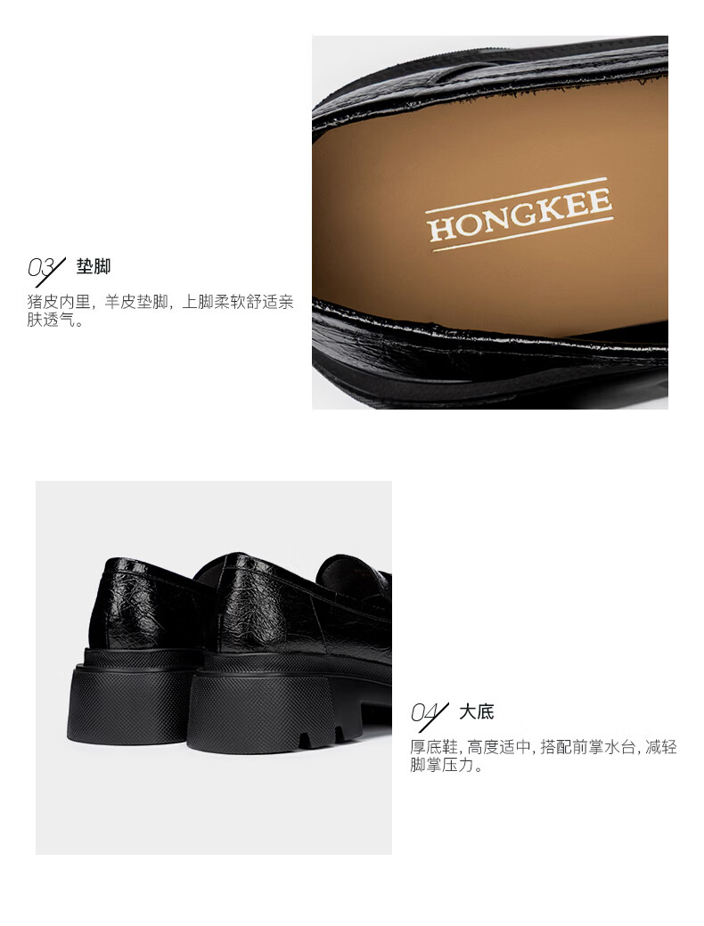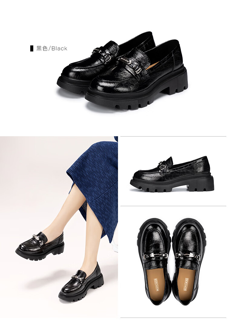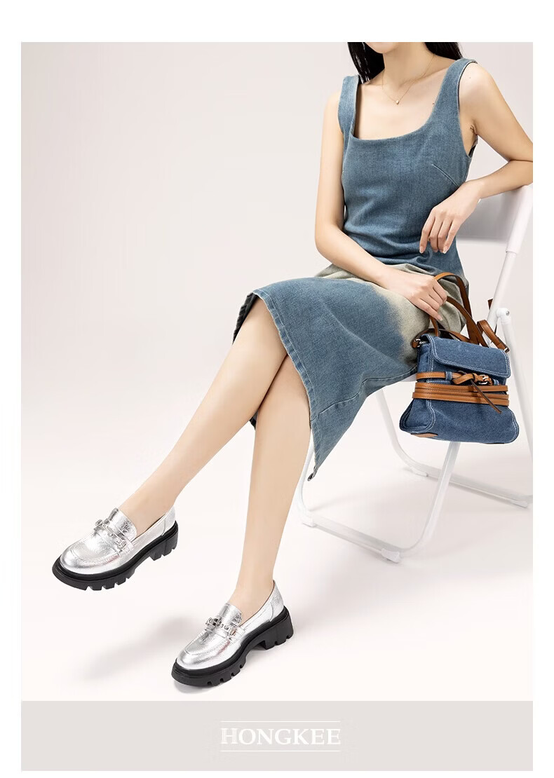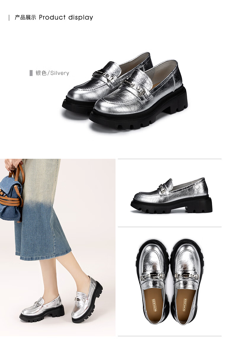 HONGKEE Women's Shoes 2026 Spring New Thick Heel Thick Sole Versatile Loafers Single Shoes H816D100 Silver 35