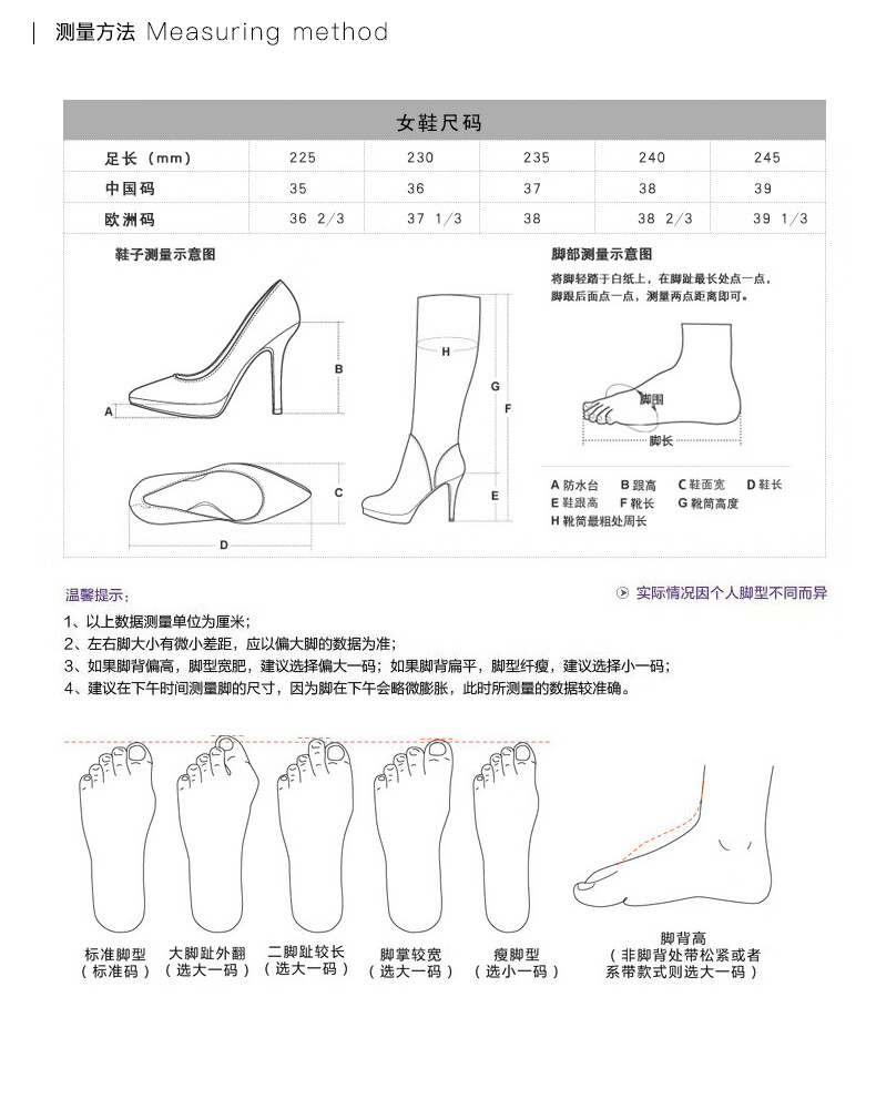 China (cm) 36 - 37 38 - 39 40 - 42 43 - 44 45 - 47