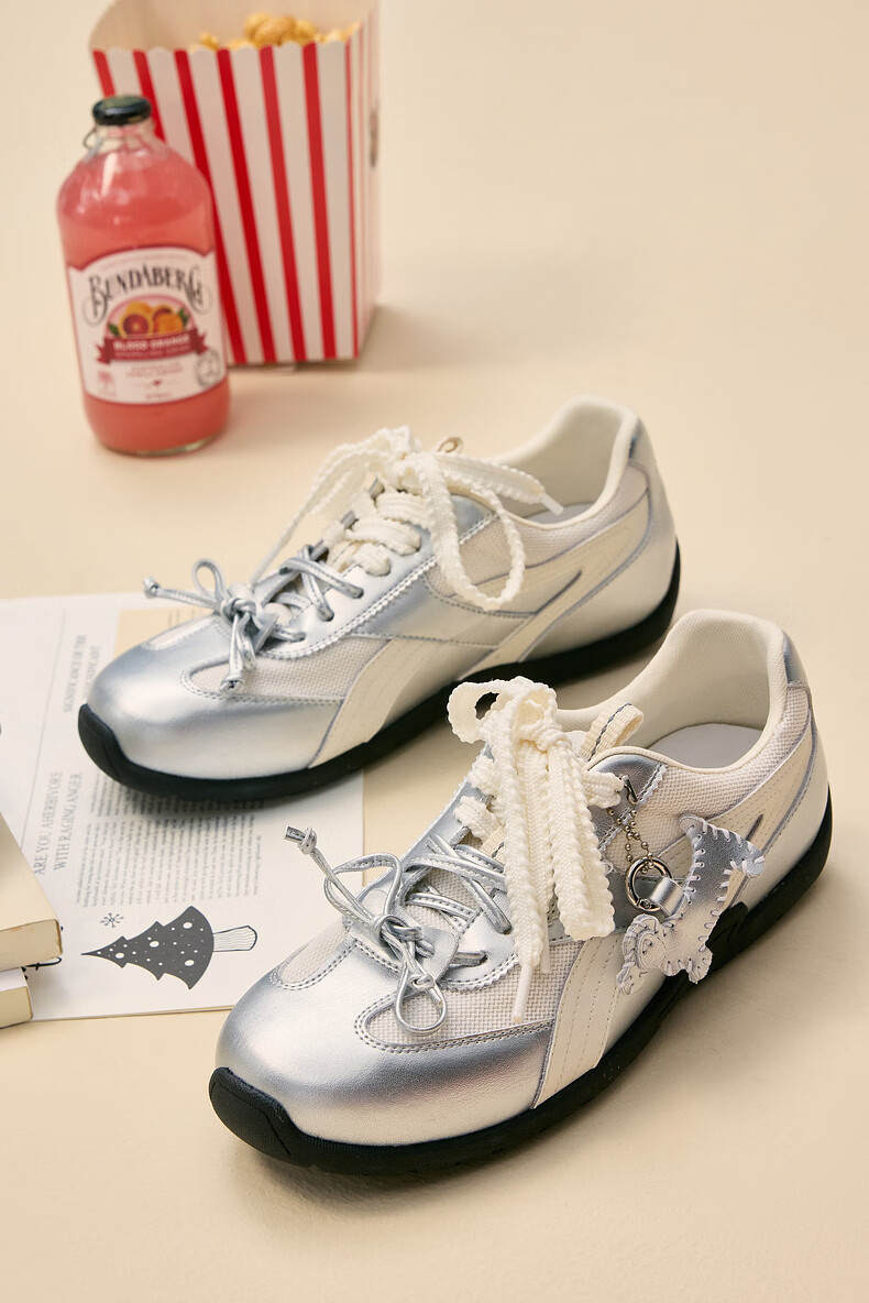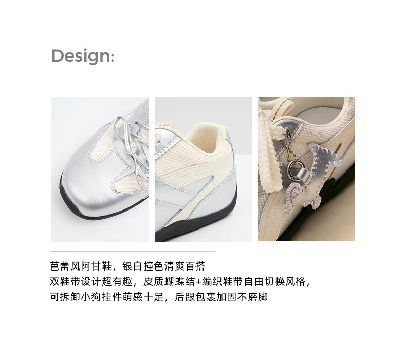 Zihan (ZIHAN) Zihan retro fashionable silver low-top running shoes puppy pendant decoration double shoelace design ballet forrest shoes trendy shoes silver 36