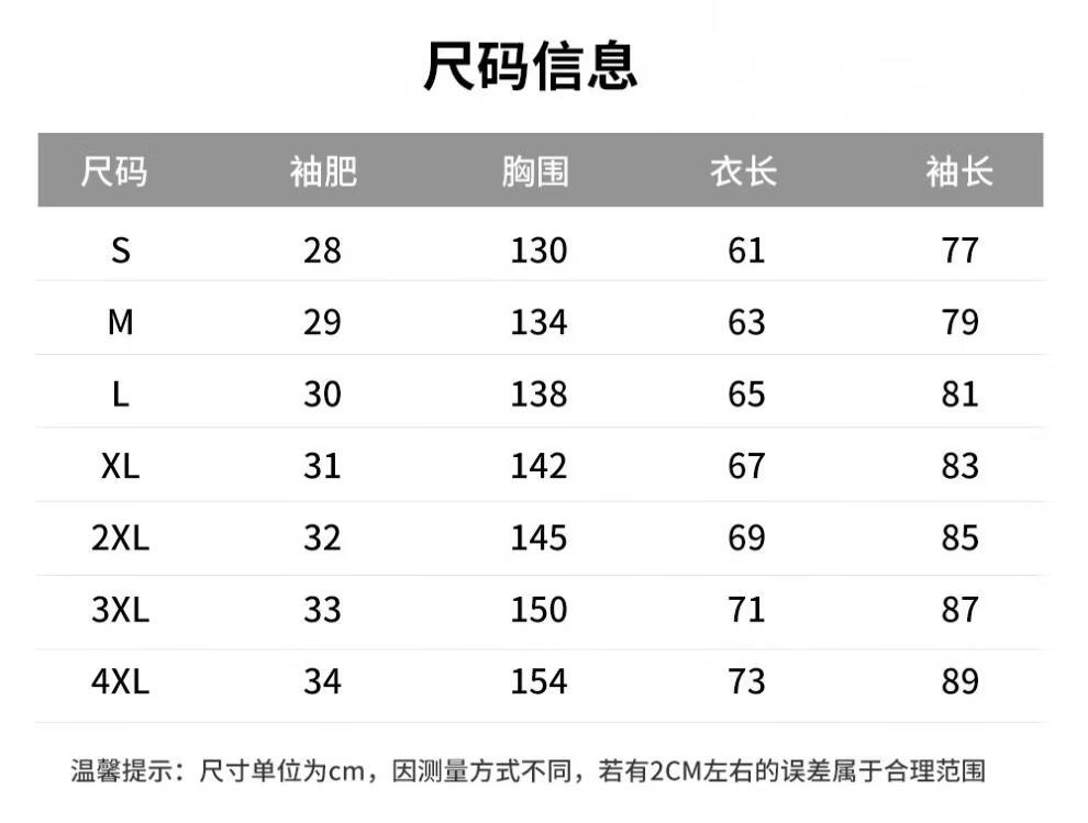 China (cm) 165 / 88-90 170 / 96-98 175 / 108-110 180 / 118-122 185 / 126-130