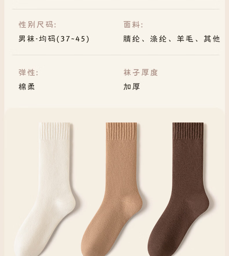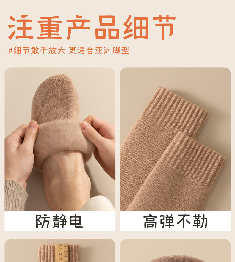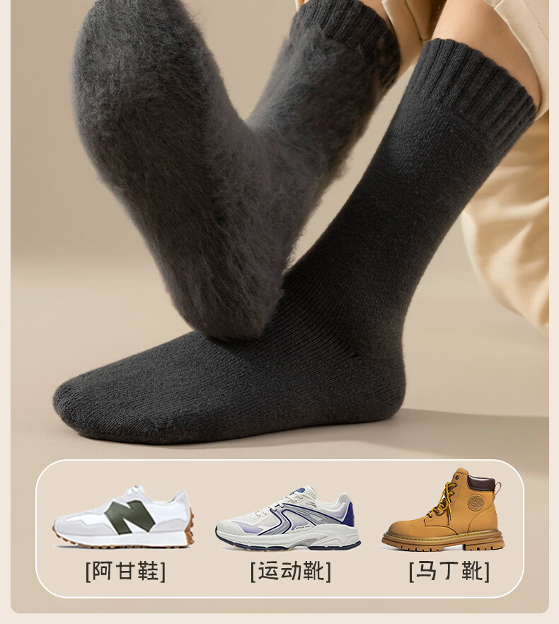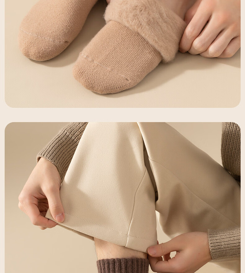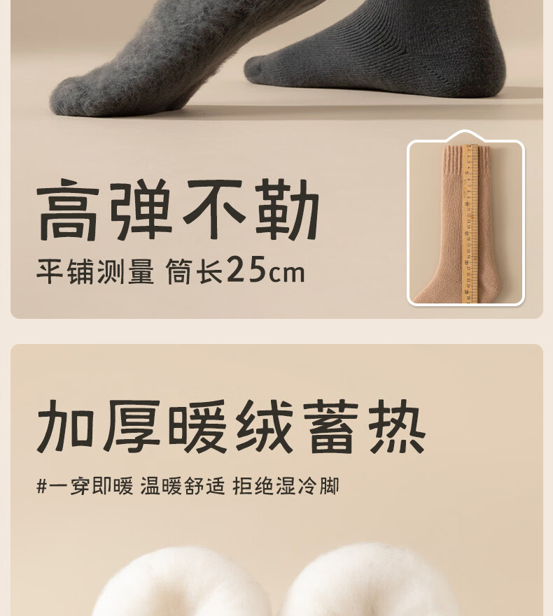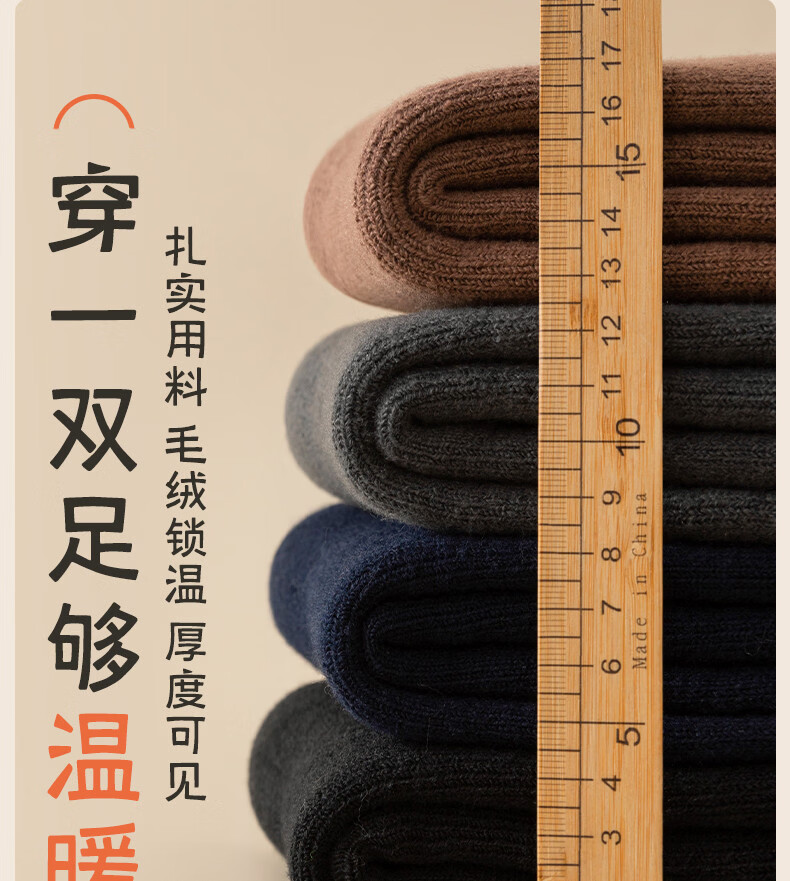 Wool socks men's stockings winter plus velvet thickened warm high cotton socks autumn and winter super thick plush sleep stockings 4 pairs of black 4 pairs one size fits all size 37+45