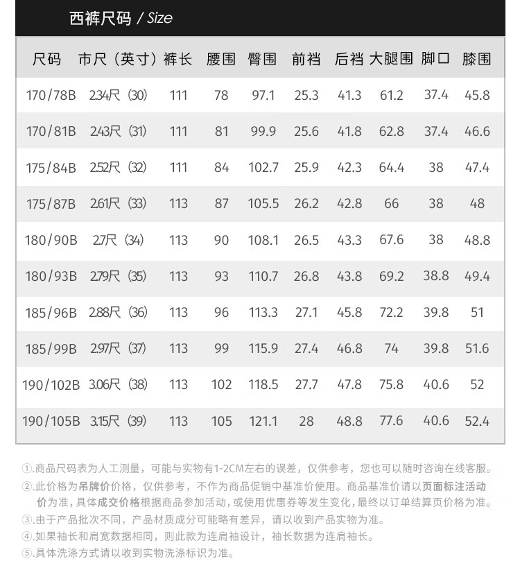 China (cm) 160-165/84-86 165-170 / 88-90 167-172 / 92-96 168-173 / 98-102 170-176 / 106-110