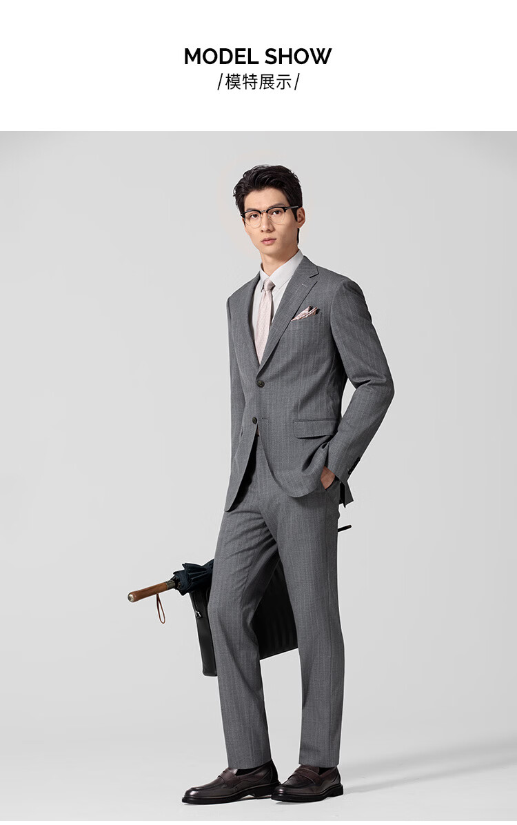 VICUTU Men's Formal Suit Business Versatile Travel Commuting Gray Pinstripe Suit 26 New Style Gray Pinstripe 175C Suit Top