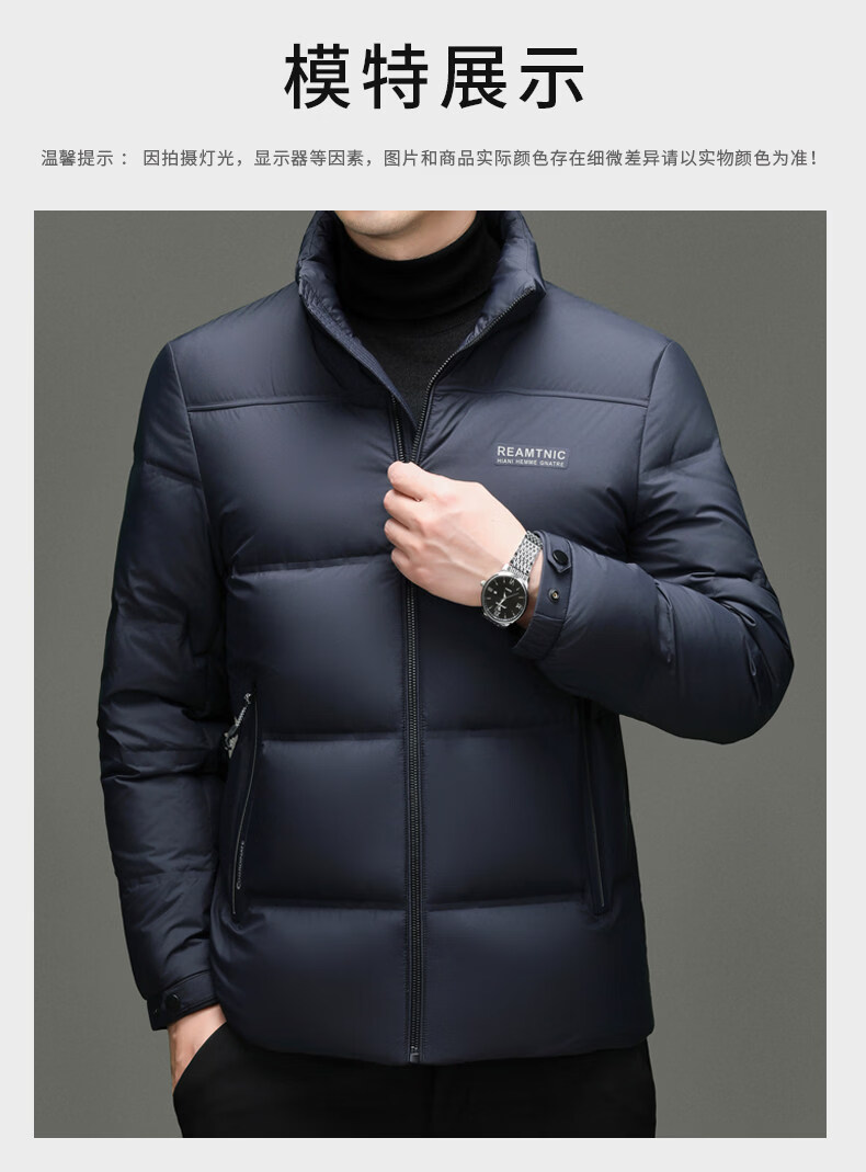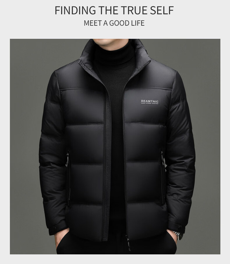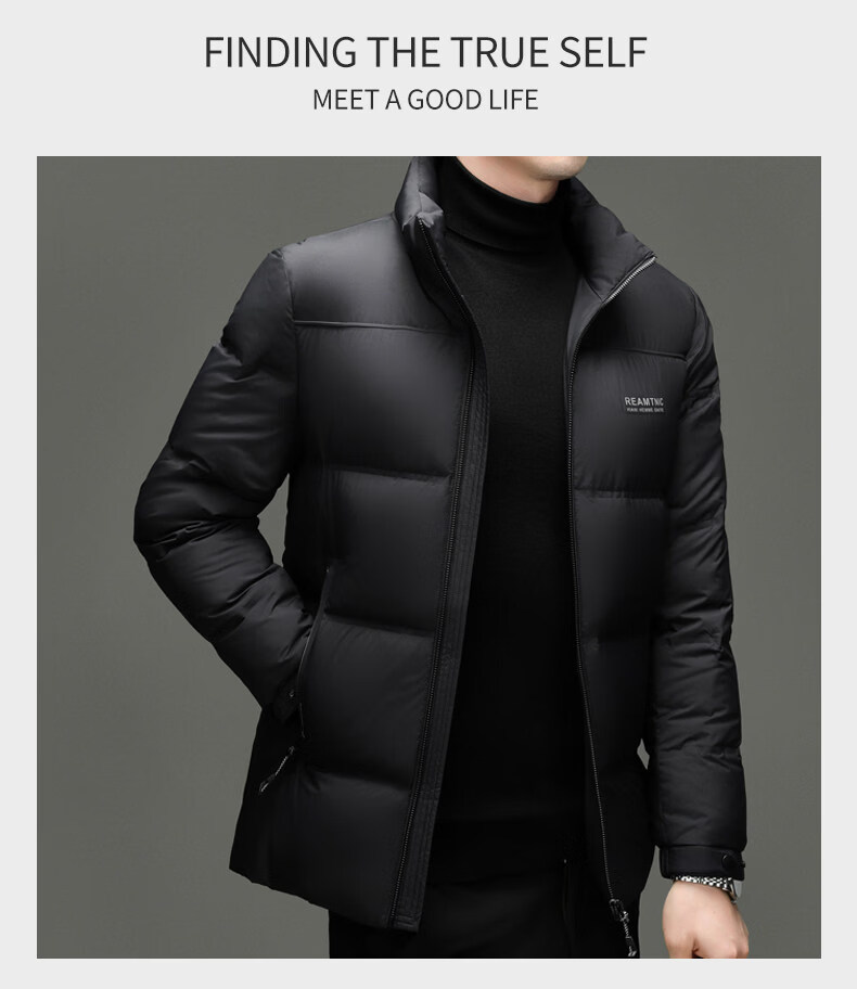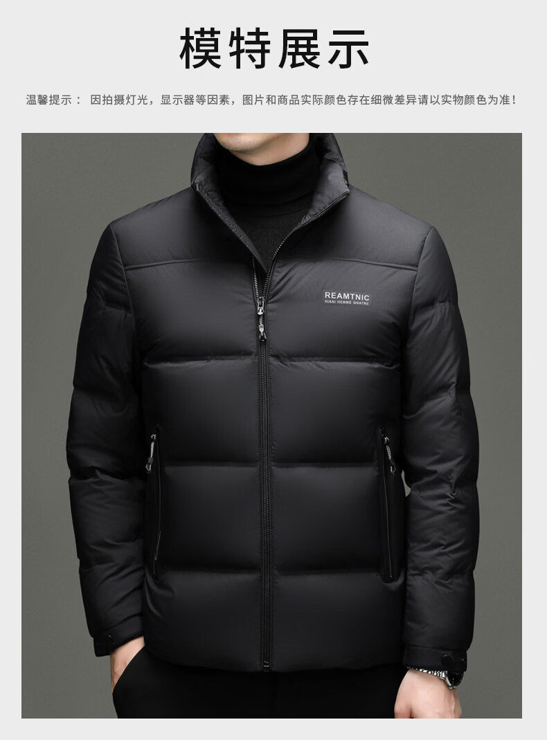 Hengyuanxiang 2025 New Duck Down Down Jacket Men's Winter Thickened Business Casual High-End Stand-up Collar Coldproof Jacket for Men Black Warm and Thickened L 170 Recommended 100-120 Jin Jin equals 0.5 kg