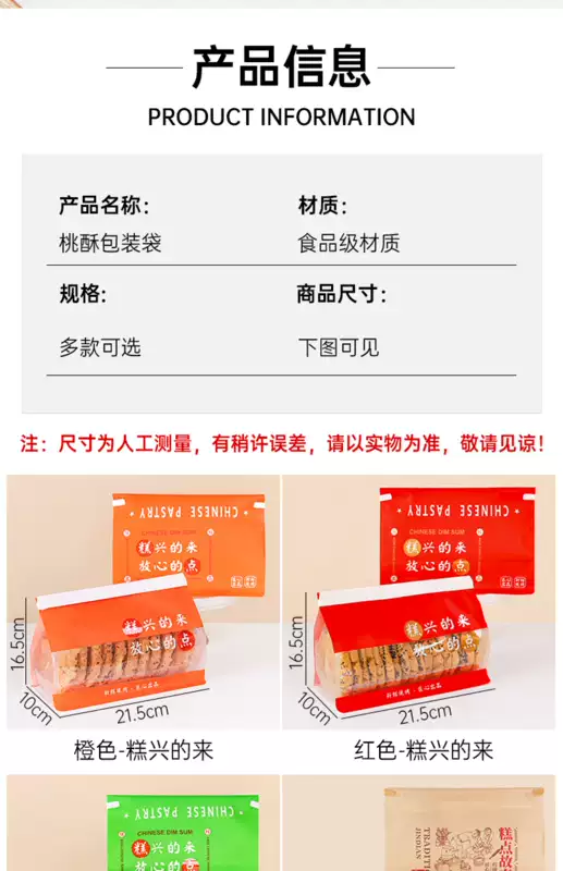 Yusenyi peach cake packaging bag snack Chinese shortbread independent packaging bag egg roll food toast bread bag pastry ziplock bag orange cake making supreme-bottom 1 piece orange cake making supreme-bottom 100 pieces