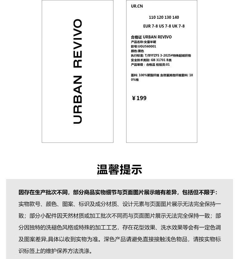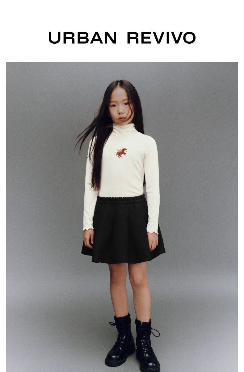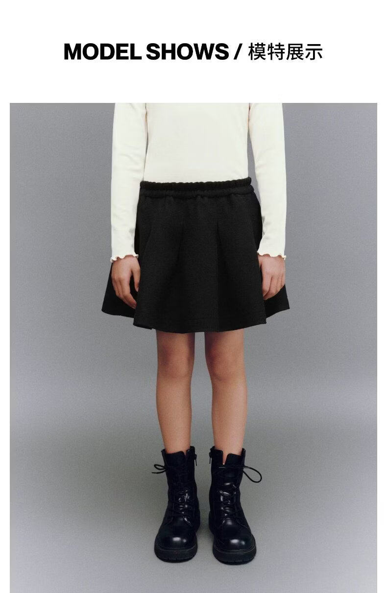 UR2026 Spring New Children's Clothing Girls Urban Elastic Waist Pleated Super Loose Skirt UGU560001 Black 110