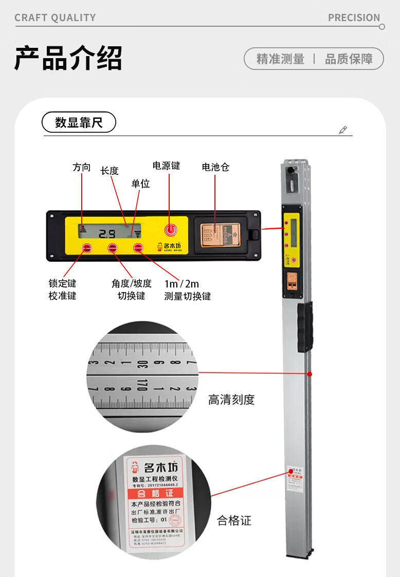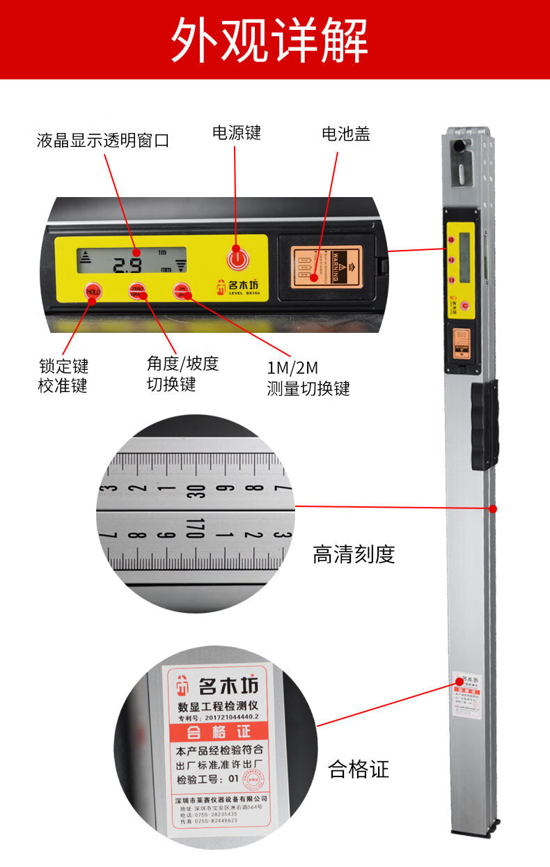 2-meter folding aluminum alloy ruler 2-meter folding level ruler high-precision digital display measurement engineering inspection ruler 2-meter ruler (digital display)