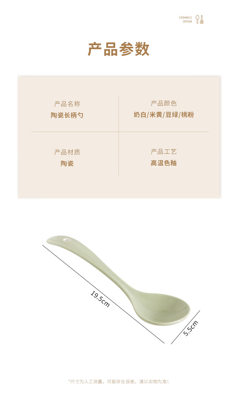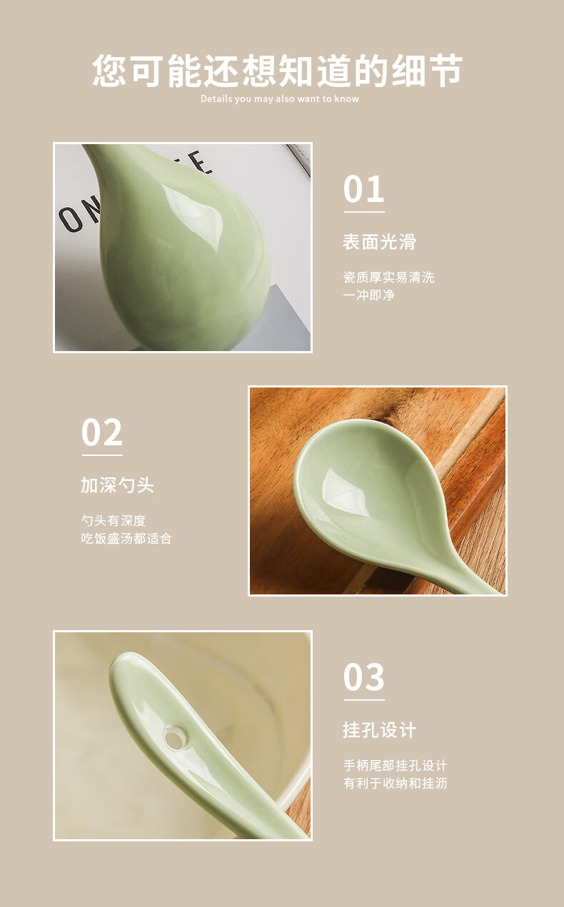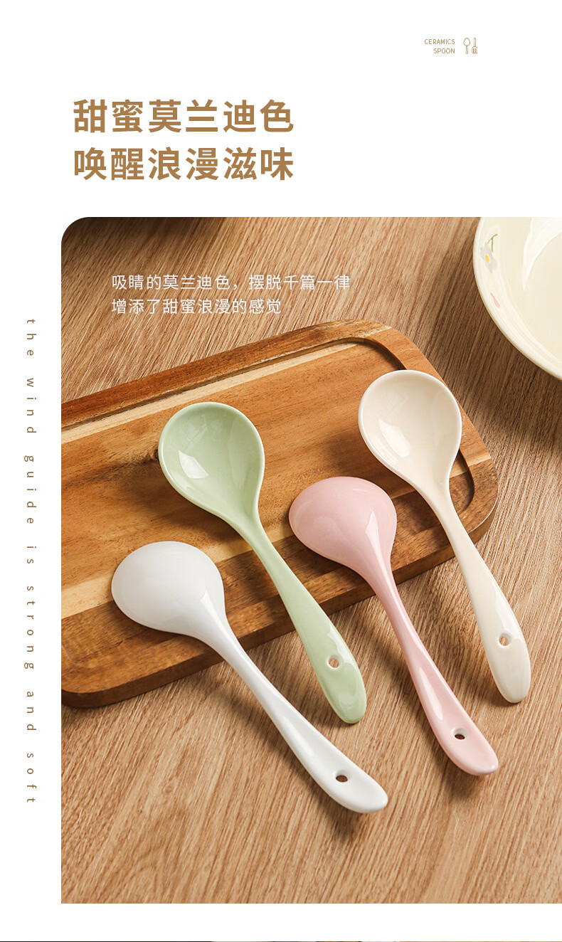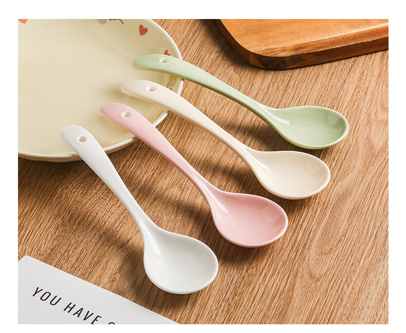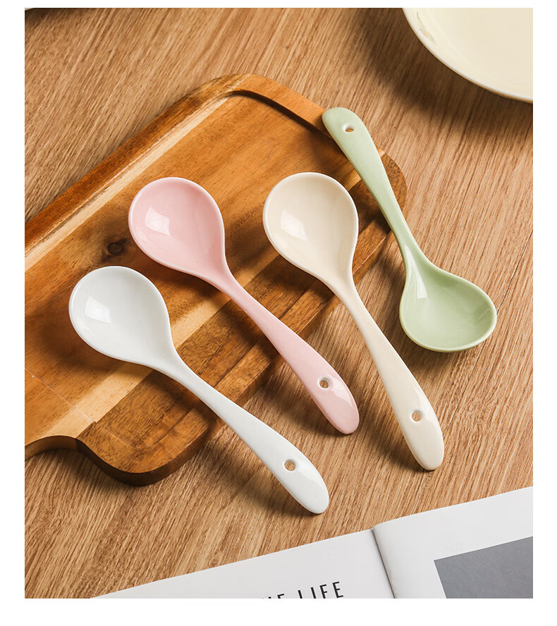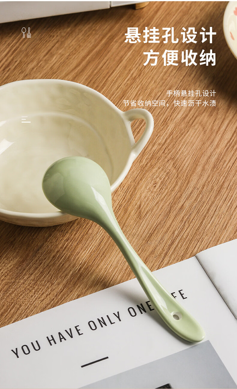 Zailu ceramic long-handled soup spoon for household use, one spoon for each person, noodle and porridge dual-purpose spoon, milk green-noodle spoon