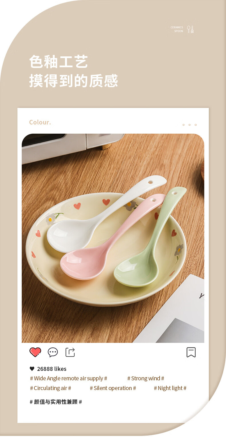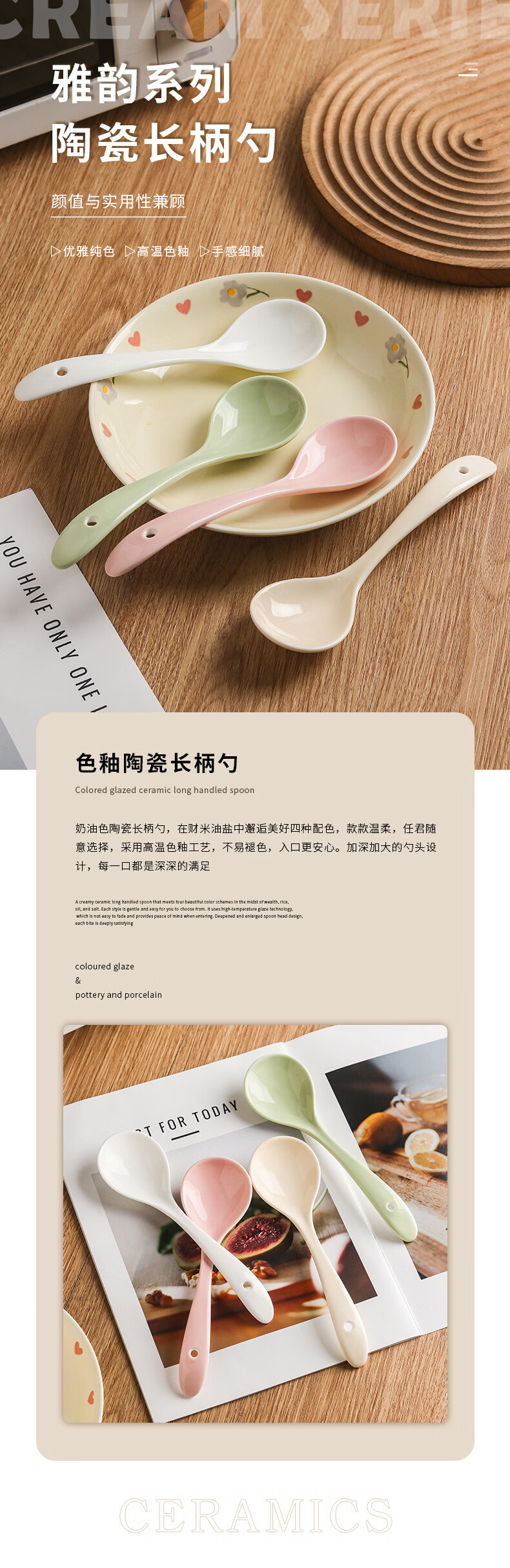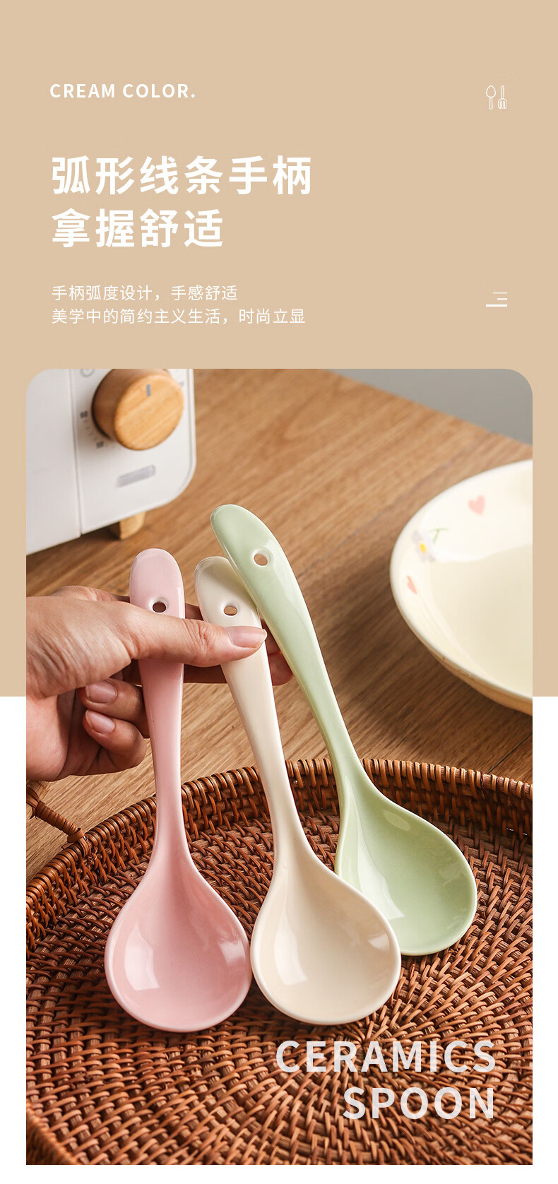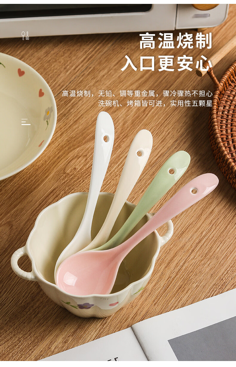 Zailu ceramic long-handled soup spoon for household use, one spoon for each person, noodle and porridge dual-purpose spoon, milk green-noodle spoon