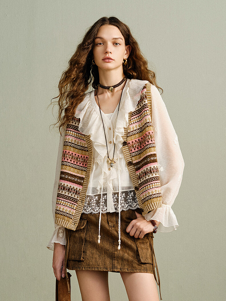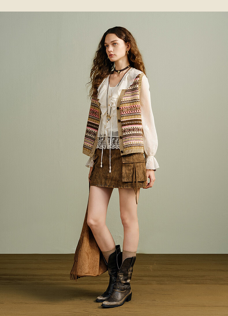 Wancaoyi (wancaoyi) shopping mall same style 2026 spring new wool sweater G06621611 smoke pink S