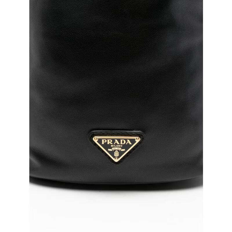 PRADA Women's Handbag Adjustable Shoulder Strap Drawstring Design Portable Storage Shoulder Carrying Black Sheepskin Metal Ring Black TU