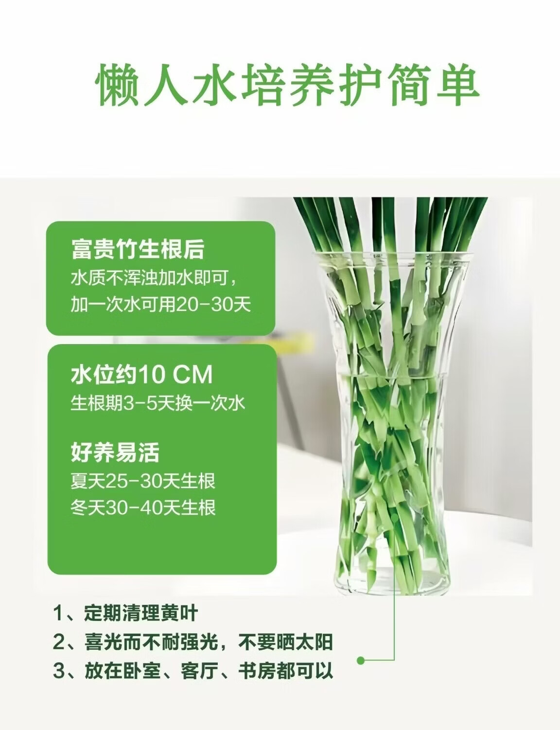 To attract wealth and bring good luck, hydroponic lucky bamboo furniture and office display green plants, free nutrient solution, hydroponic lucky bamboo, medium lucky bamboo 8 pieces, 70CM-75CM