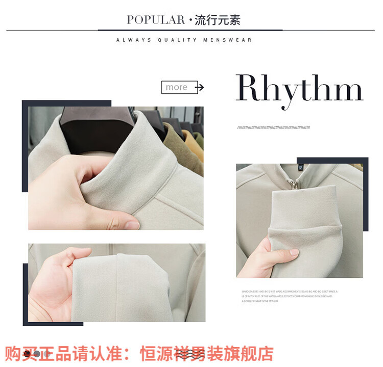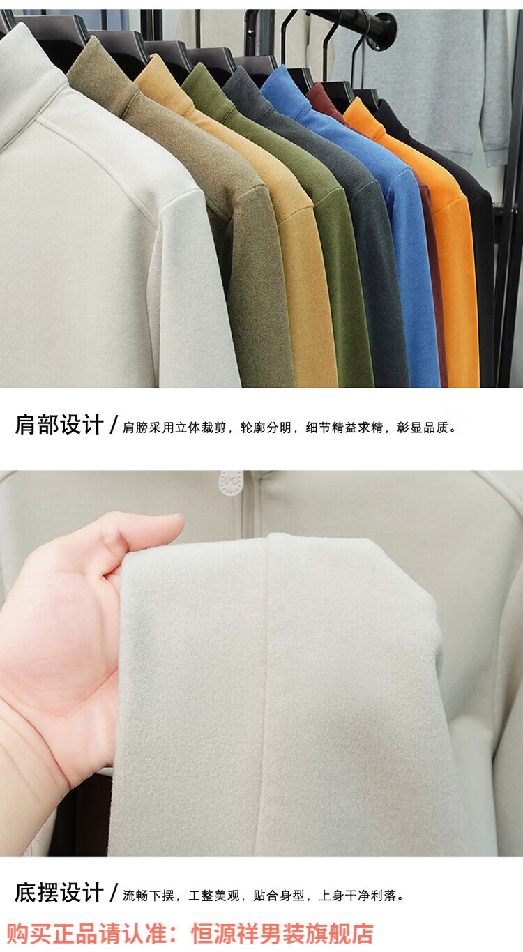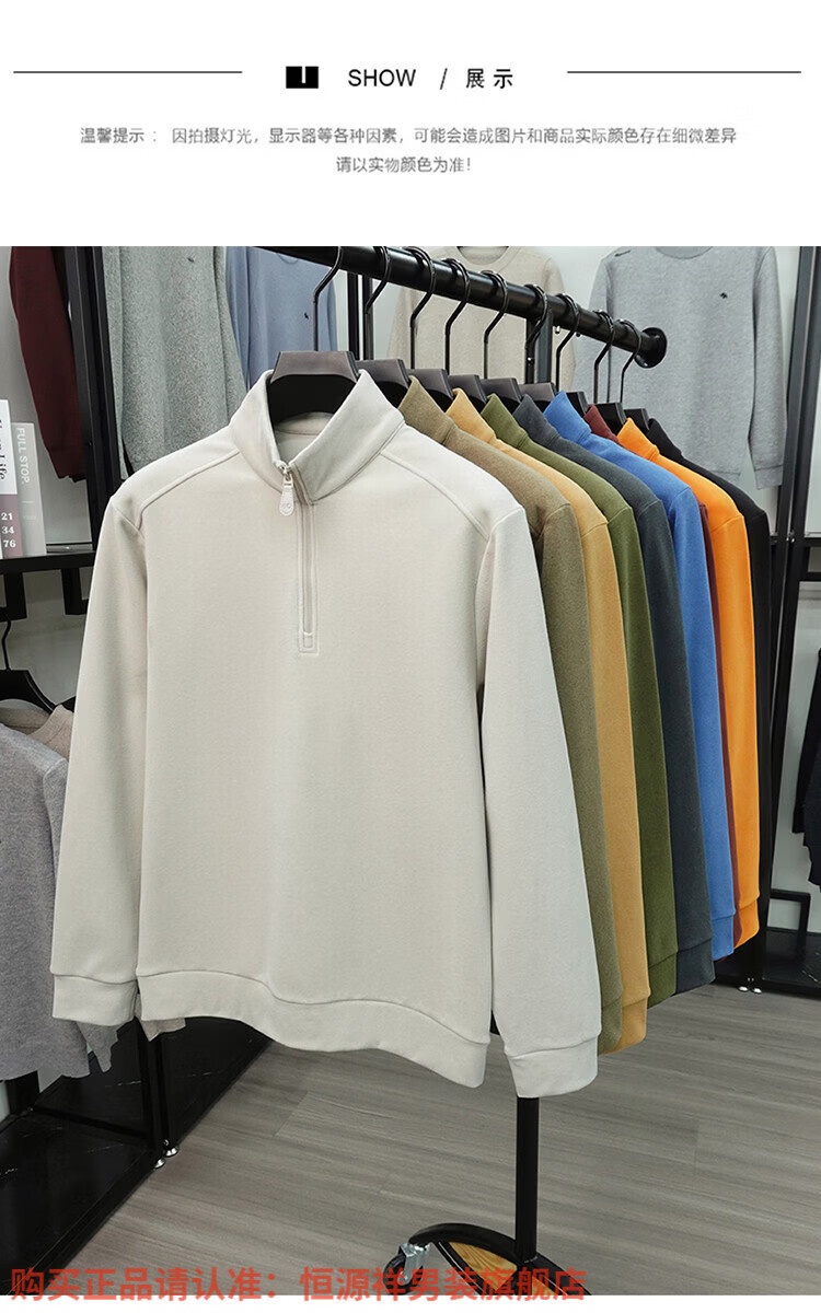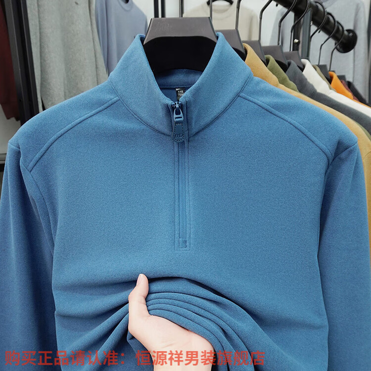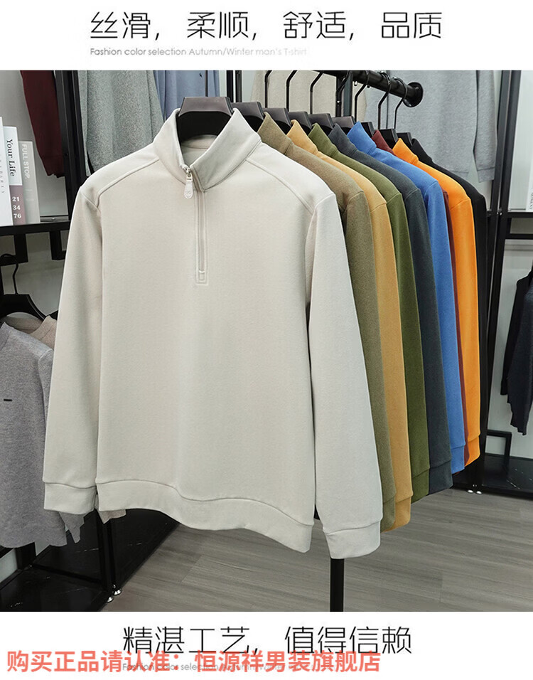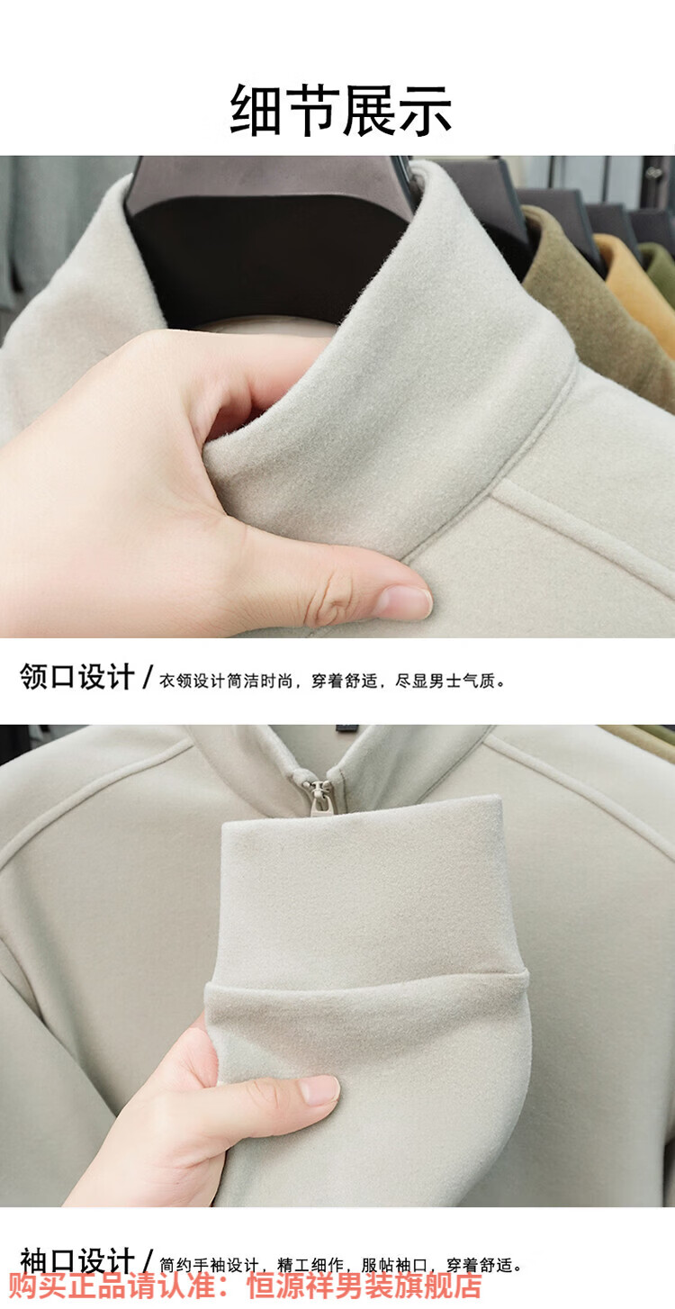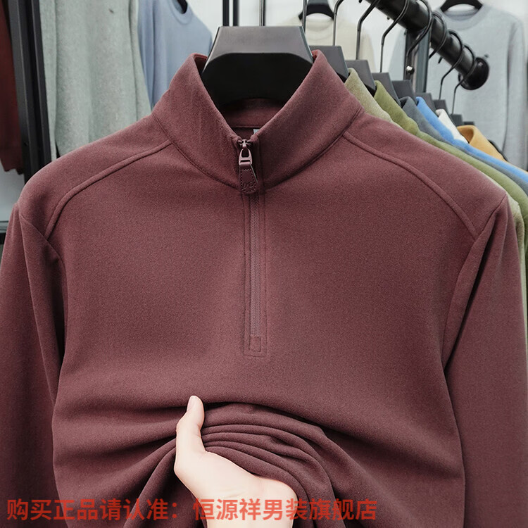 Hengyuanxiang anti-static autumn and winter zippered half-high collar long-sleeved T-shirt for men thickened and warm double-sided velvet sweatshirt with base layer khaki XL 52