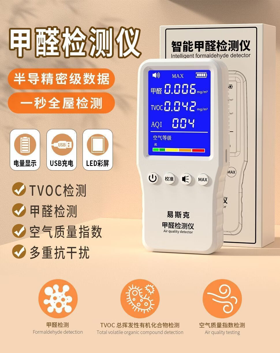 Shantou Lincun Household Intelligent Formaldehyde Detector New House Air Quality Carbon Dioxide Formaldehyde Detector 6 Rapid Detection ~ Household Model Accurate Data + No Alarm