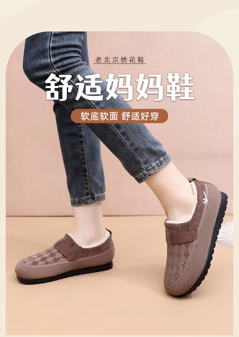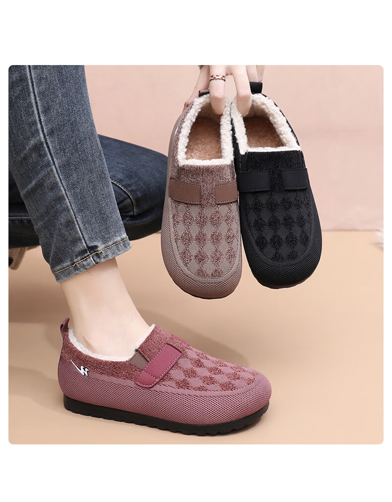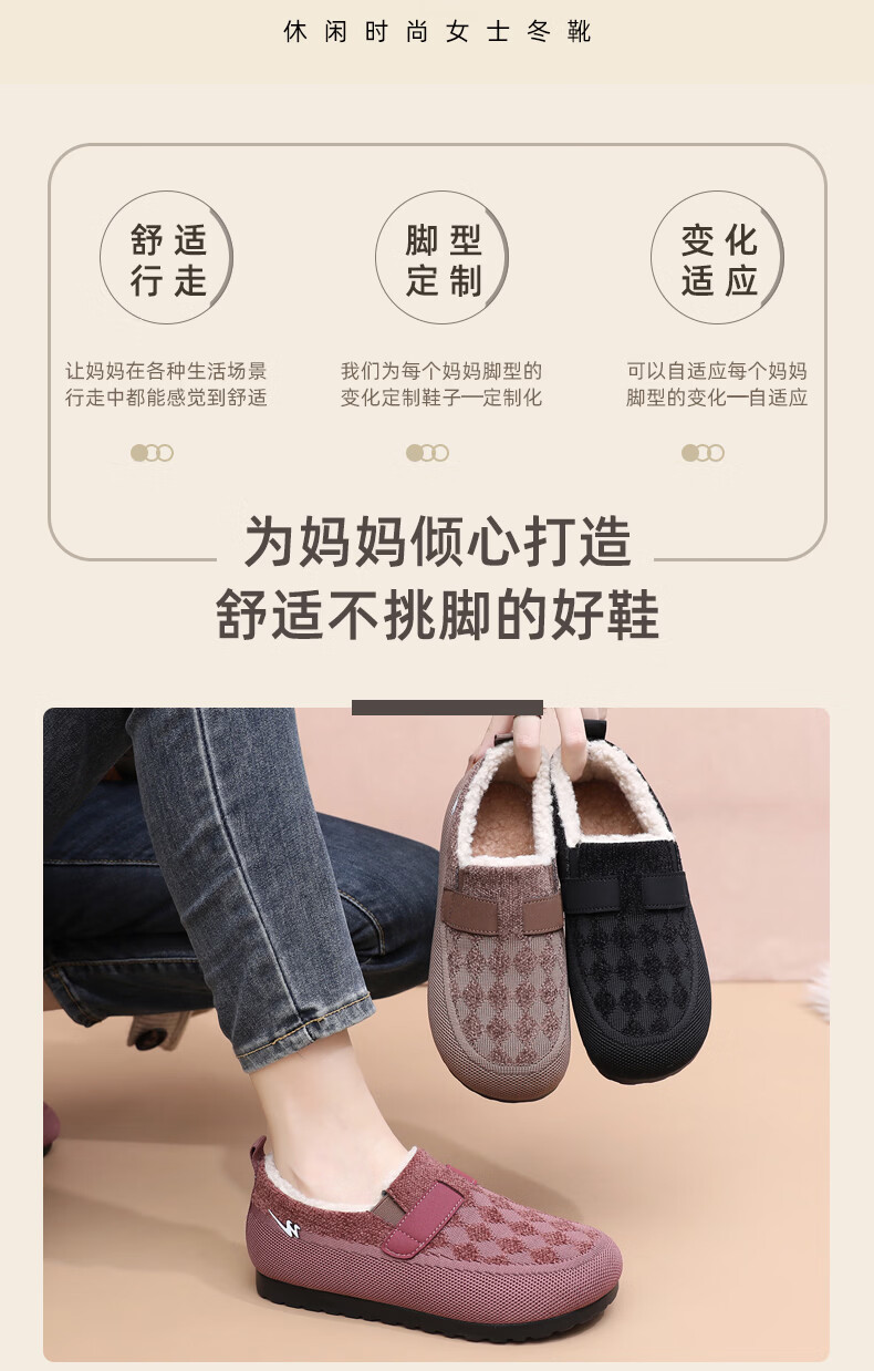 Double Star women's shoes winter new style for middle-aged and elderly people plus velvet to keep warm old Beijing canvas shoes one-step mother cotton slippers grandma shoes purple 37