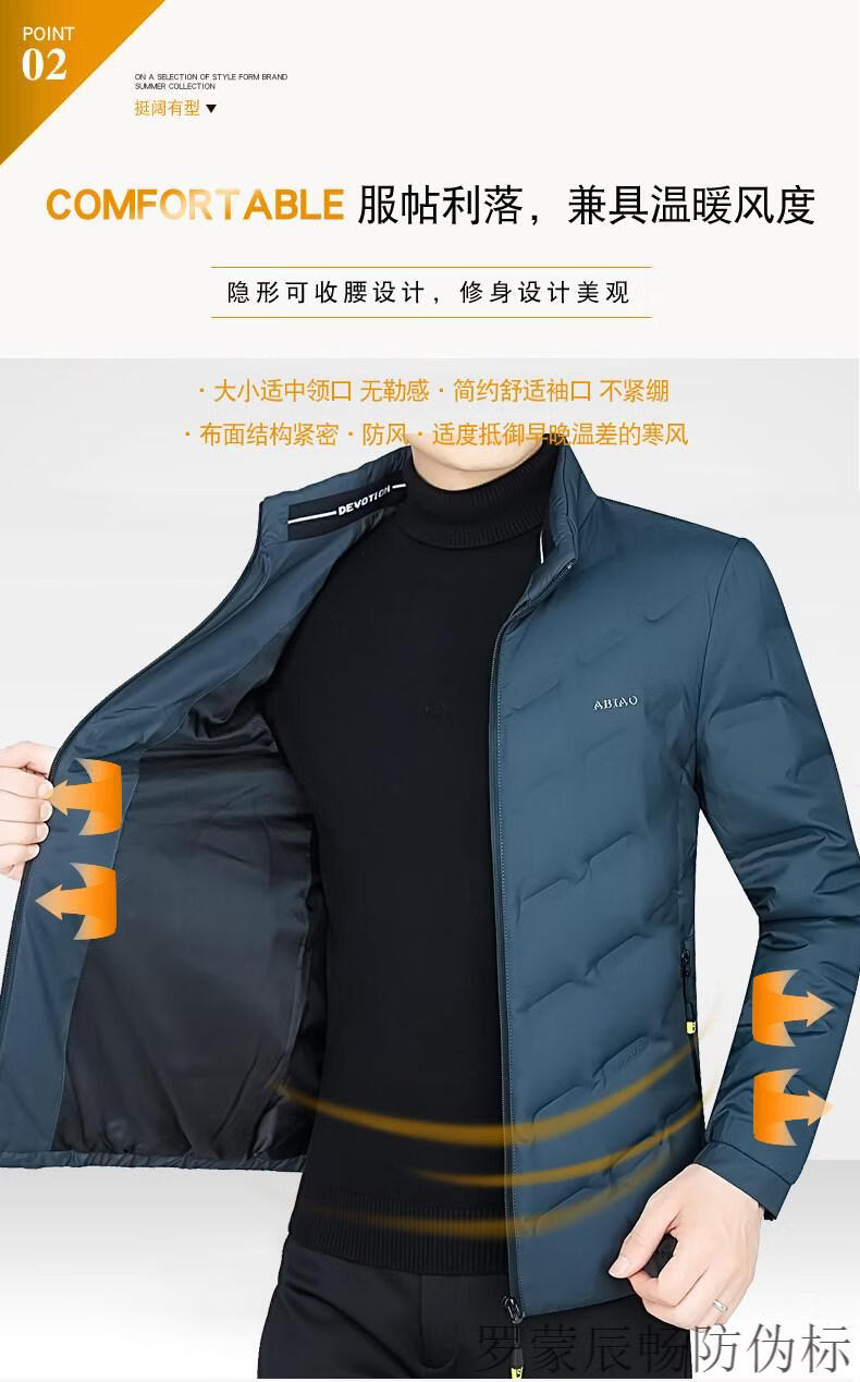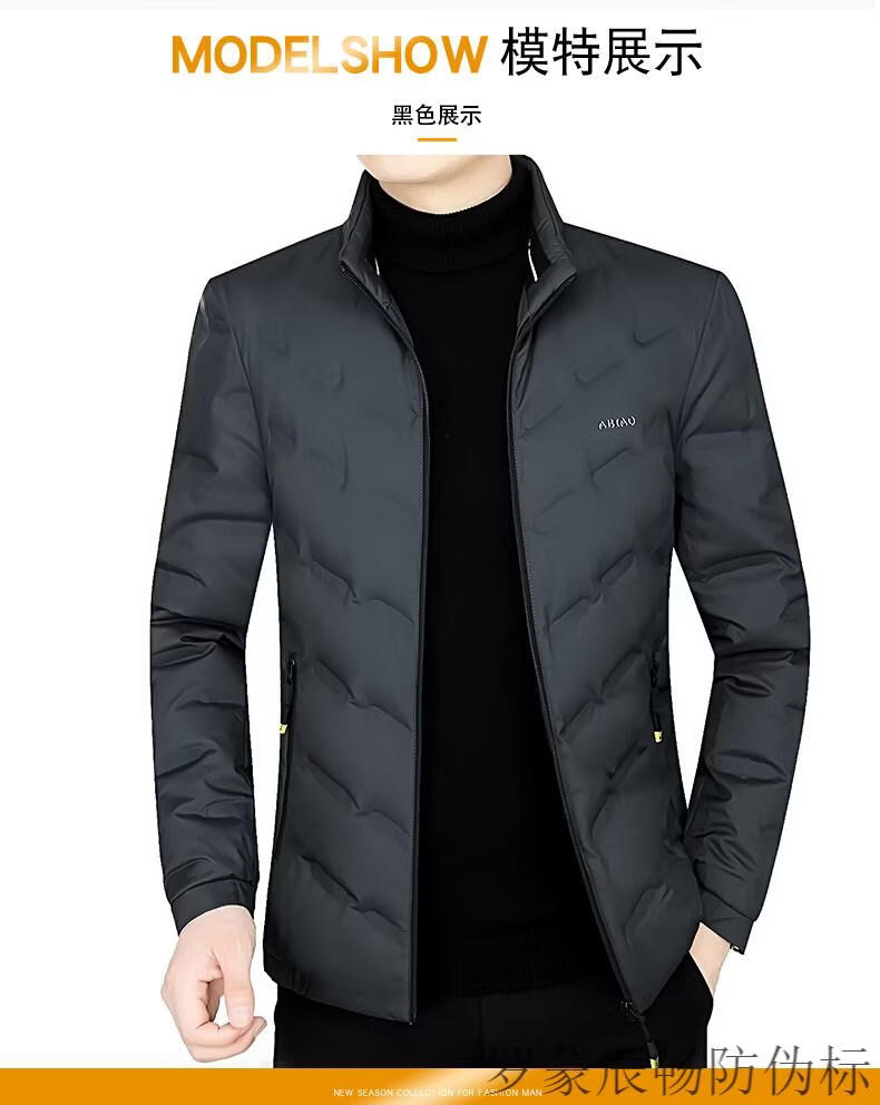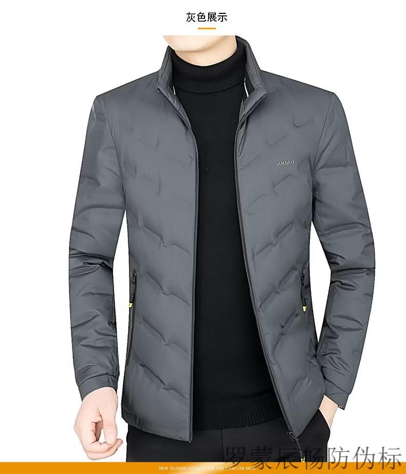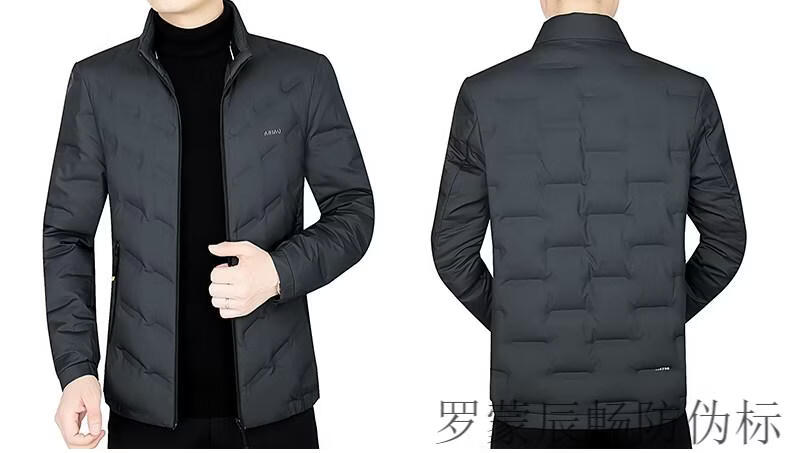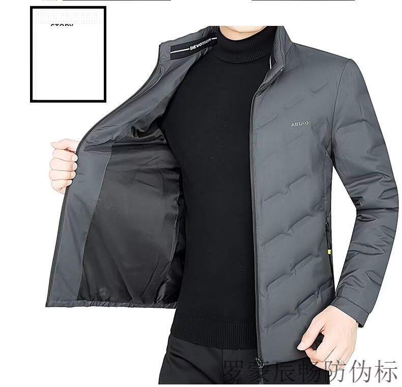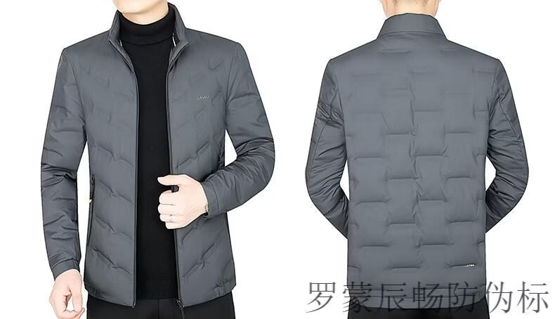 ROMON Men's Down Jacket Winter Short Style Men's Middle-aged Business Casual White Duck Down Light Thin Stand Collar Warm Jacket Gray 2056 M 170 Size