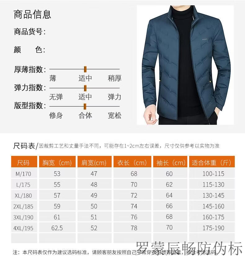 China (cm) 165 / 88-90 170 / 96-98 175 / 108-110 180 / 118-122 185 / 126-130