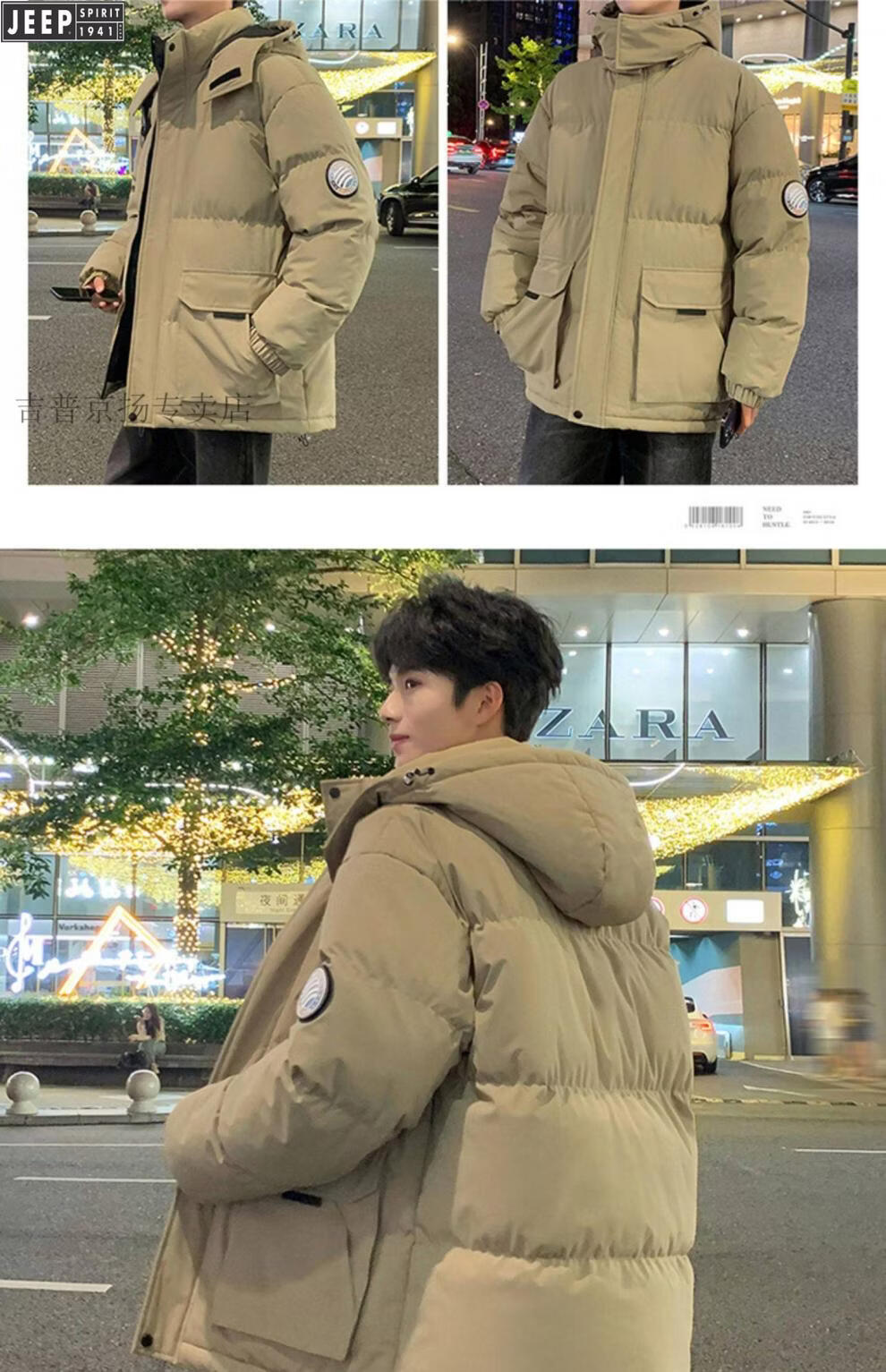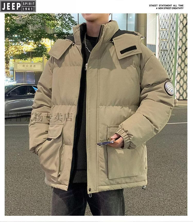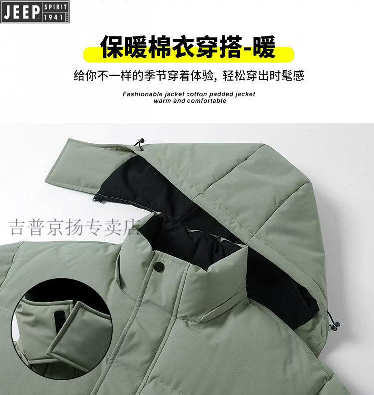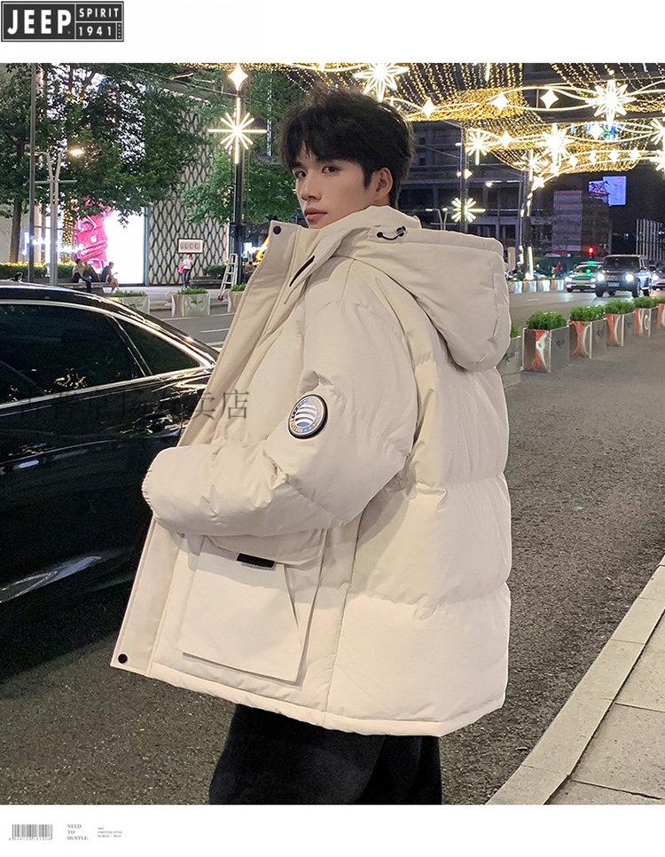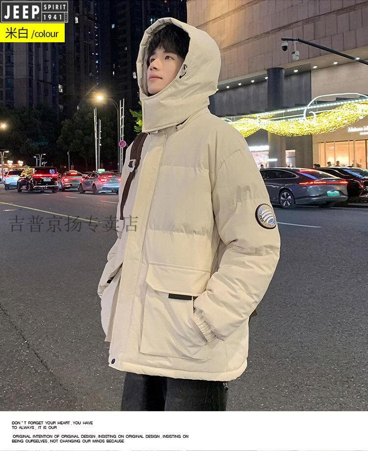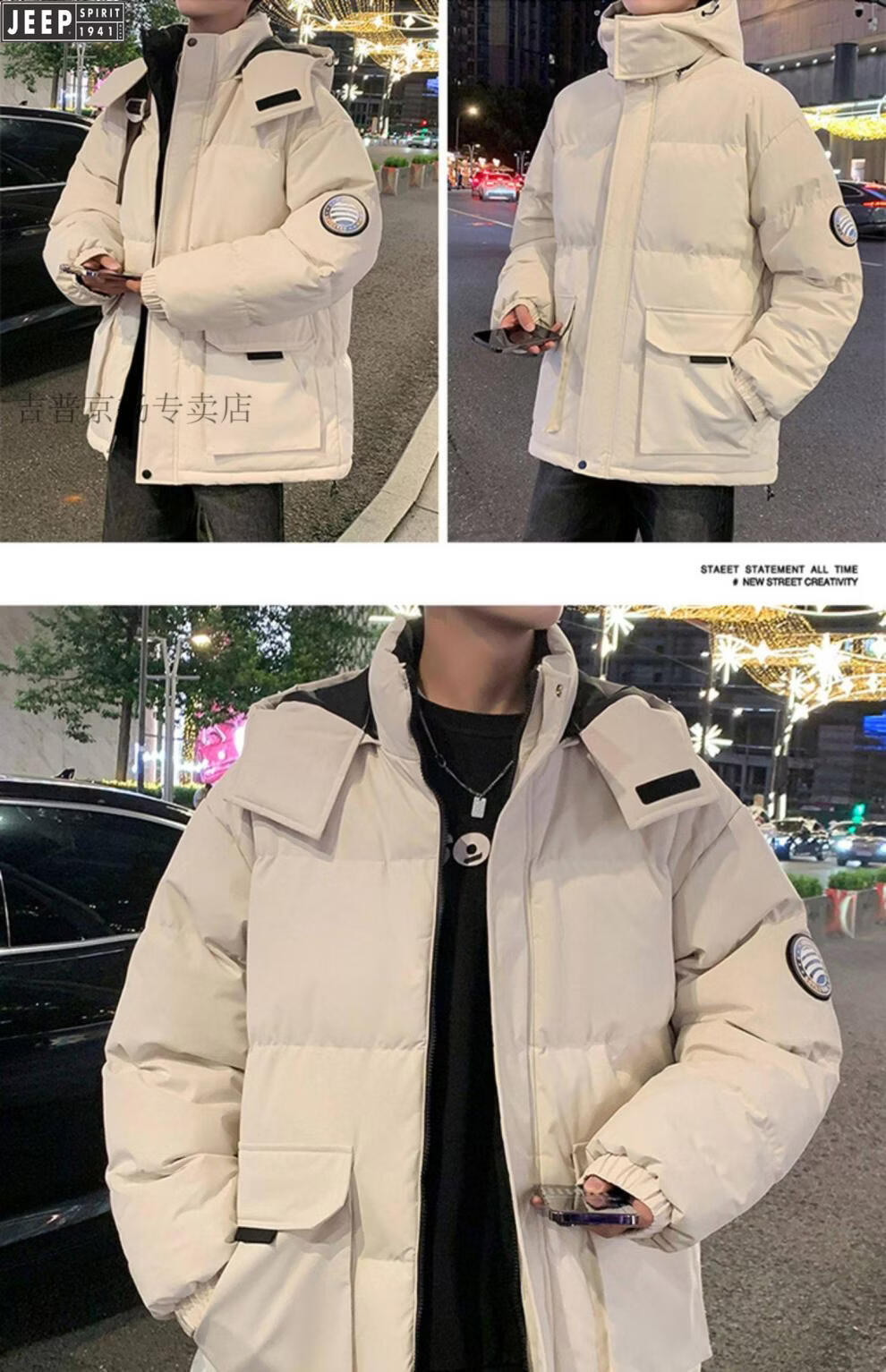 JEEP international brand hooded down jacket men's winter thickened warm cotton coat loose workwear cotton jacket off-white S recommended 90-120Jin Jin equals 0.5 kg