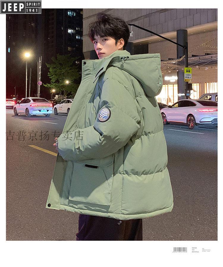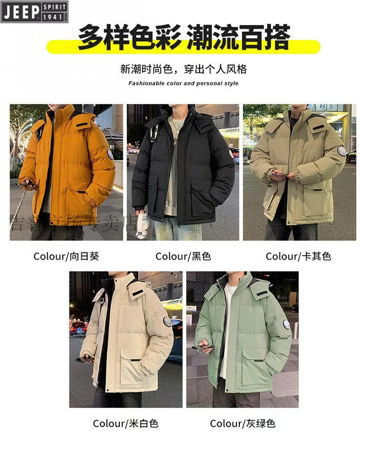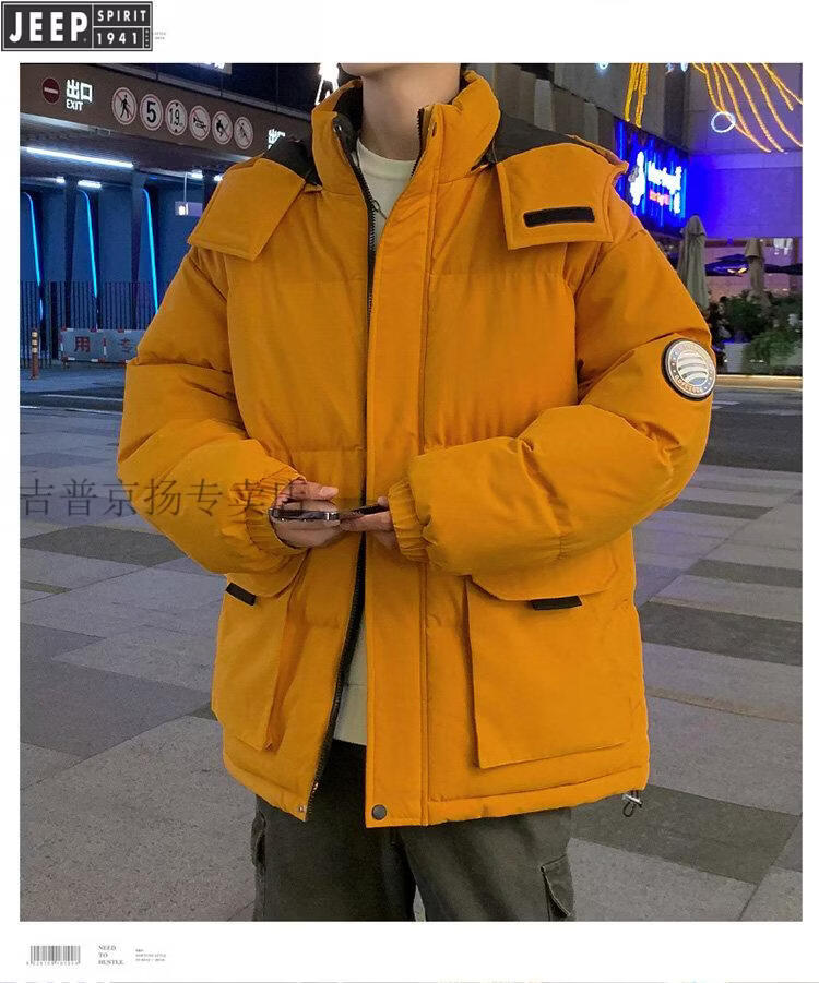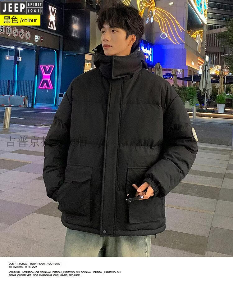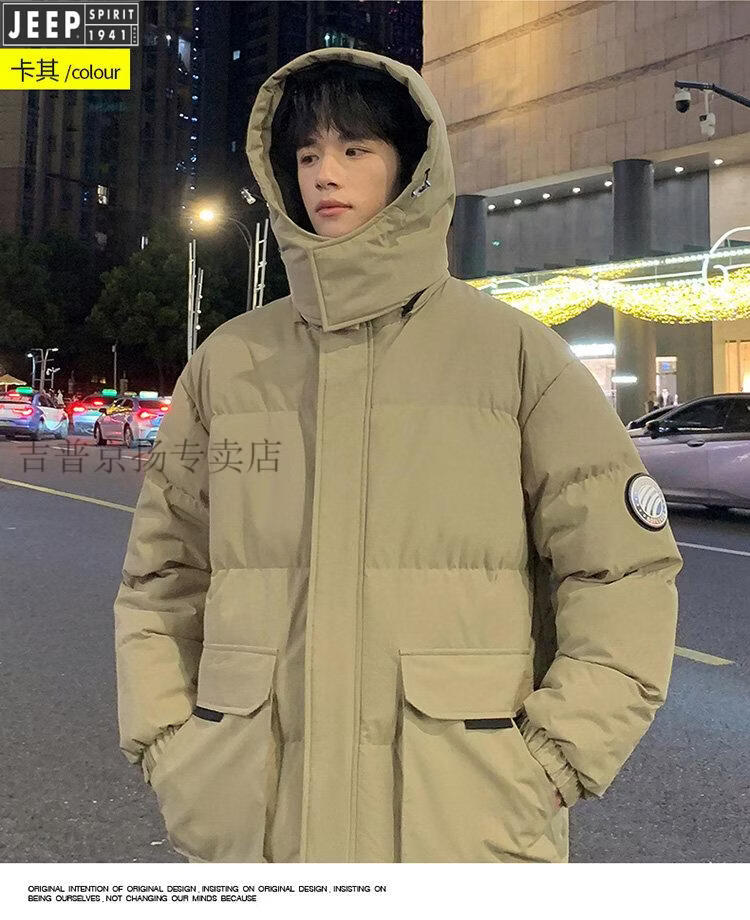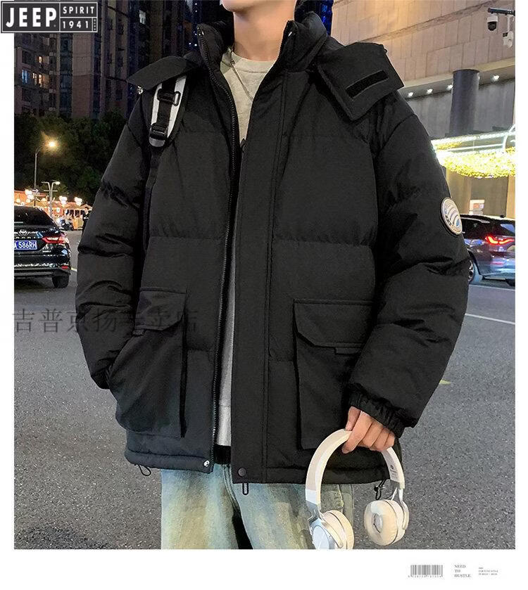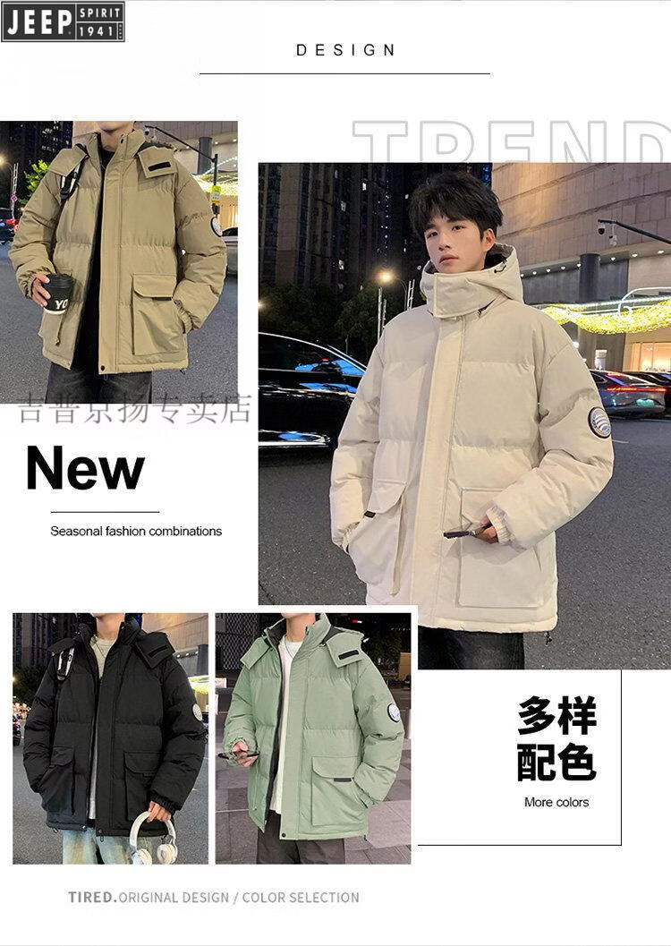 JEEP international brand hooded down jacket men's winter thickened warm cotton coat loose workwear cotton jacket off-white S recommended 90-120Jin Jin equals 0.5 kg