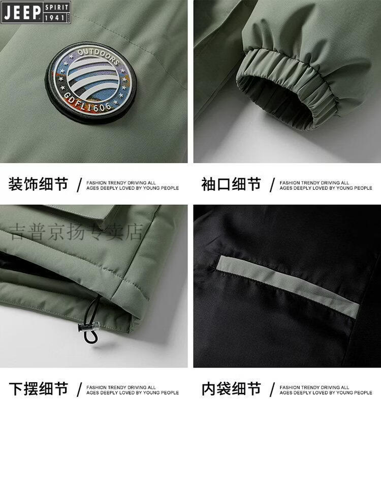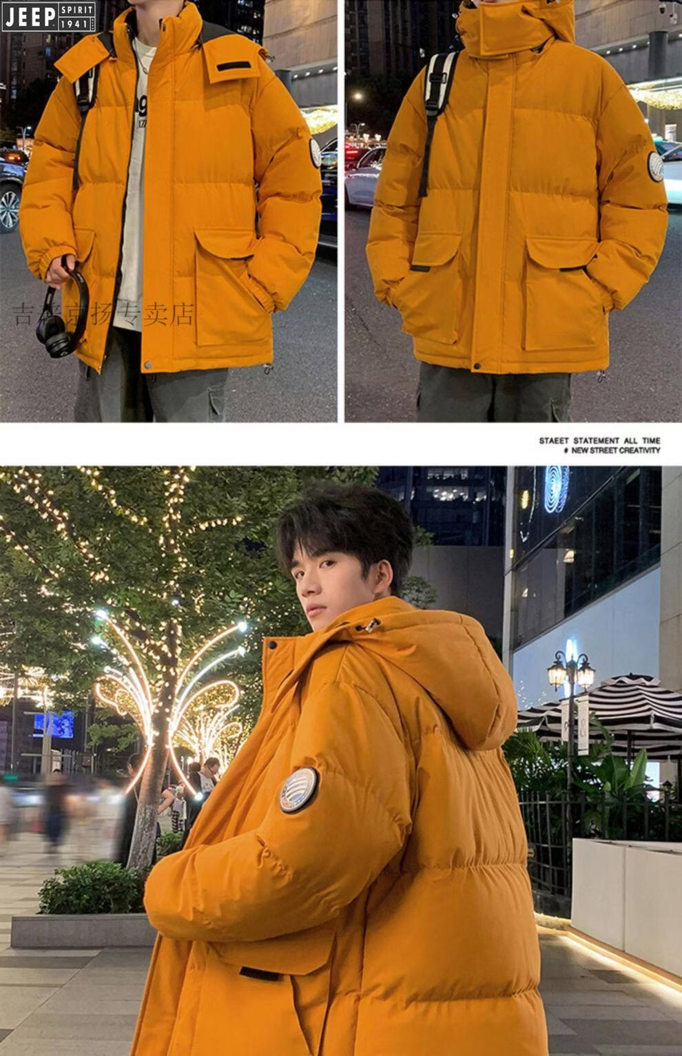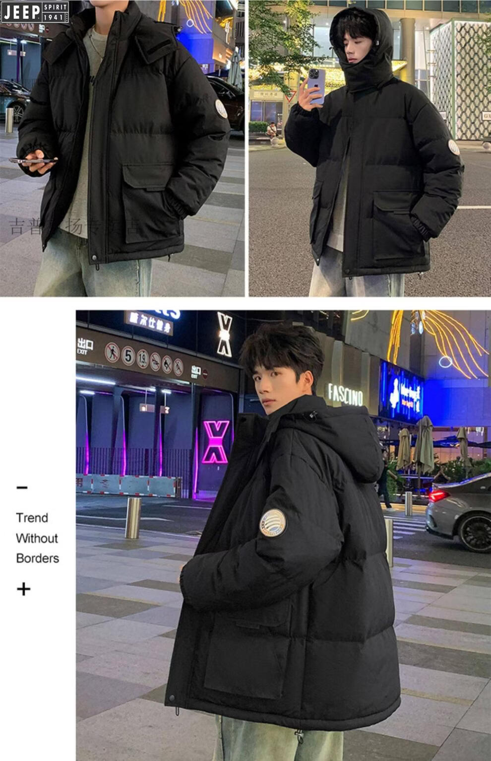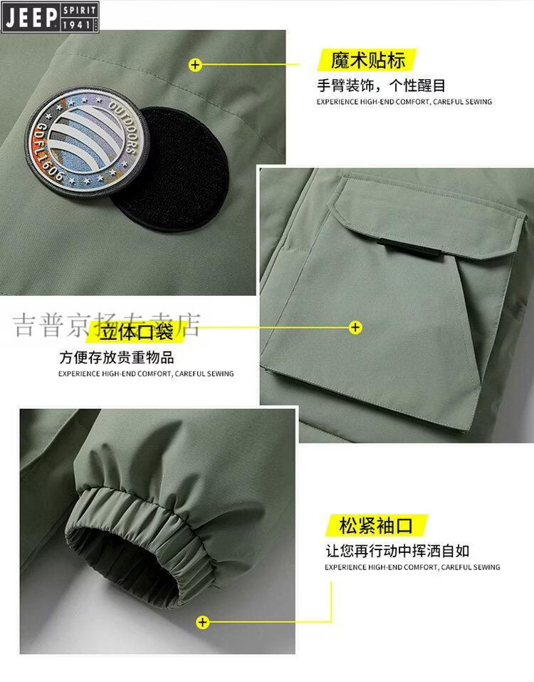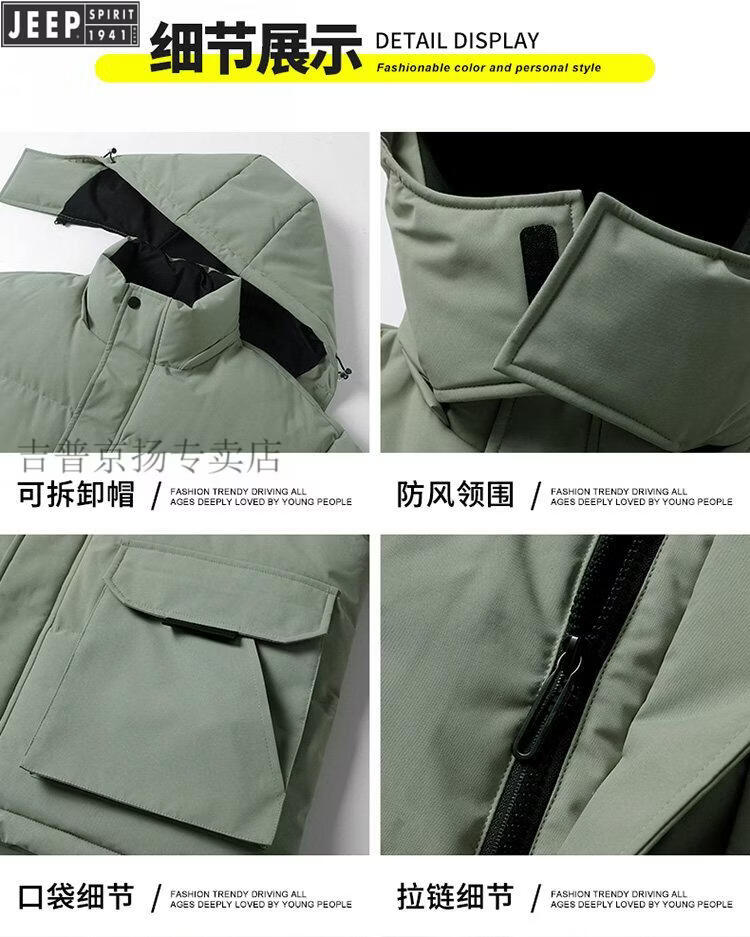 JEEP international brand hooded down jacket men's winter thickened warm cotton coat loose workwear cotton jacket off-white S recommended 90-120Jin Jin equals 0.5 kg