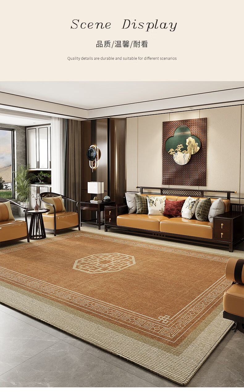 Yingfei sofa living room carpet 2025 new new Chinese style bedroom carpet large area coffee table washable wipeable thickened floor mat A479 Yunjing 300 450CM formaldehyde-free cotton and linen bottom