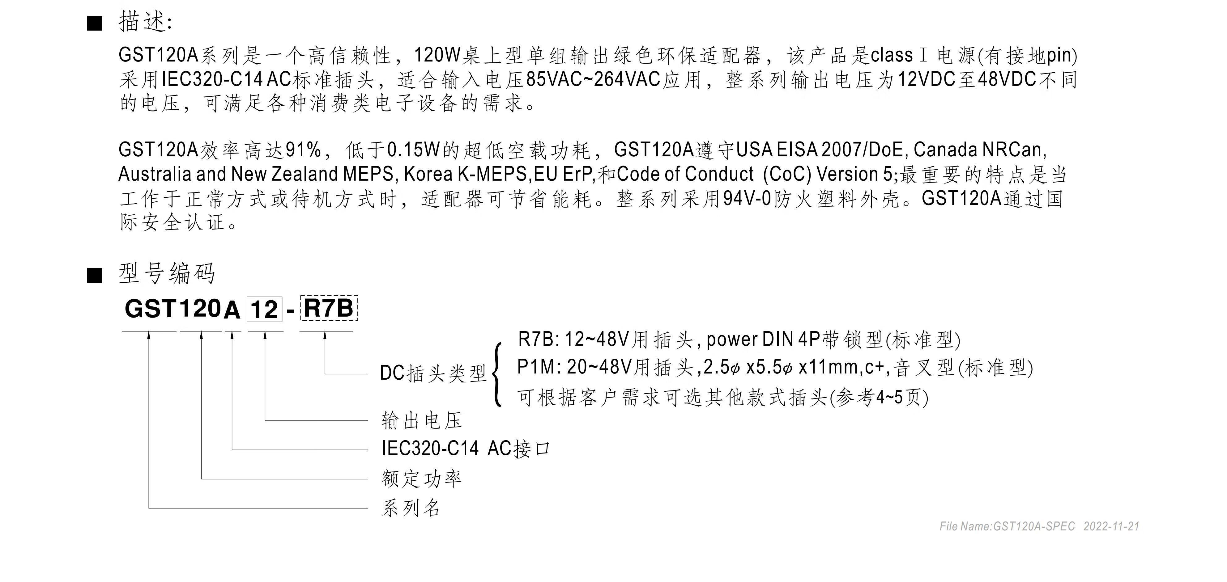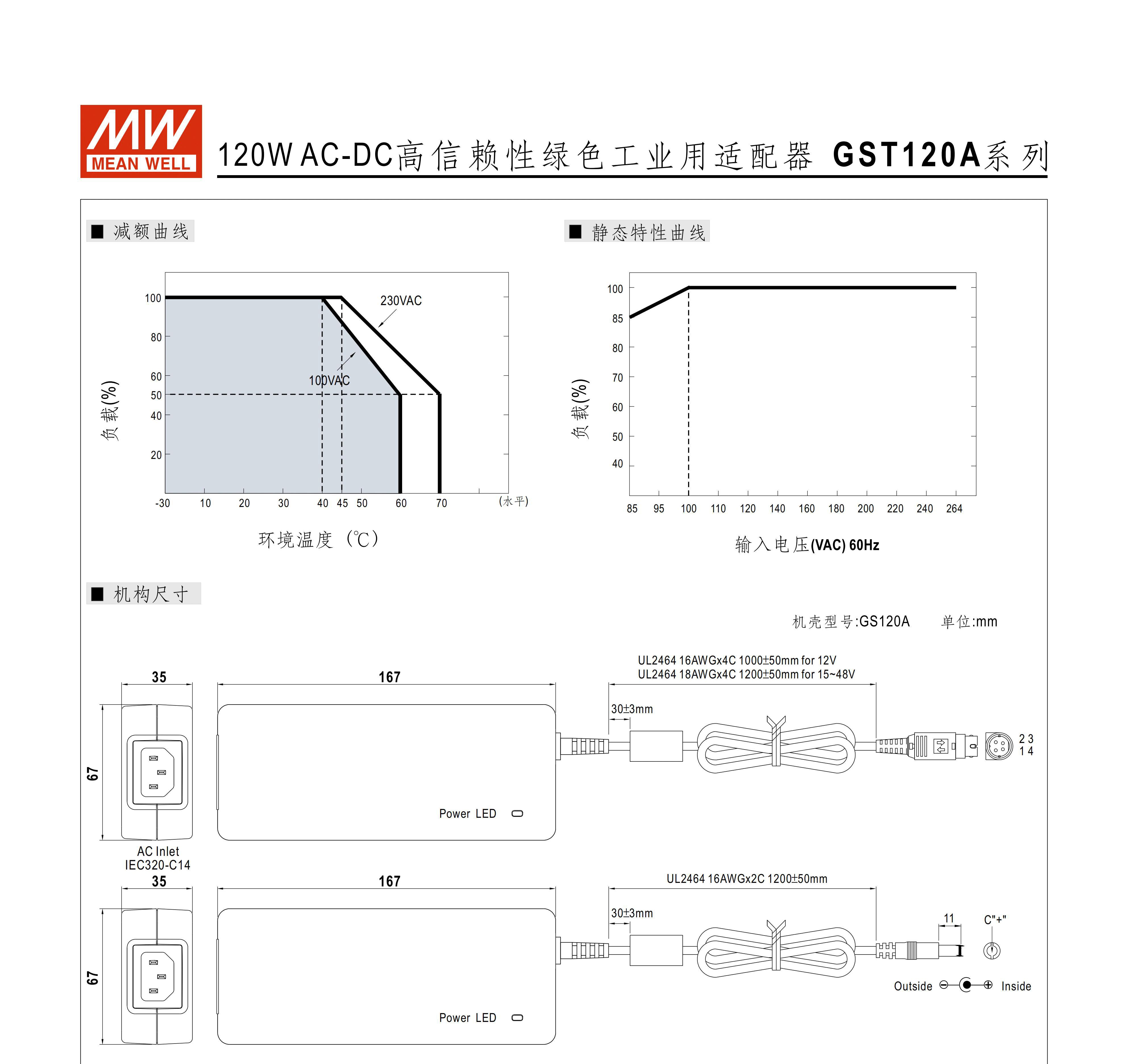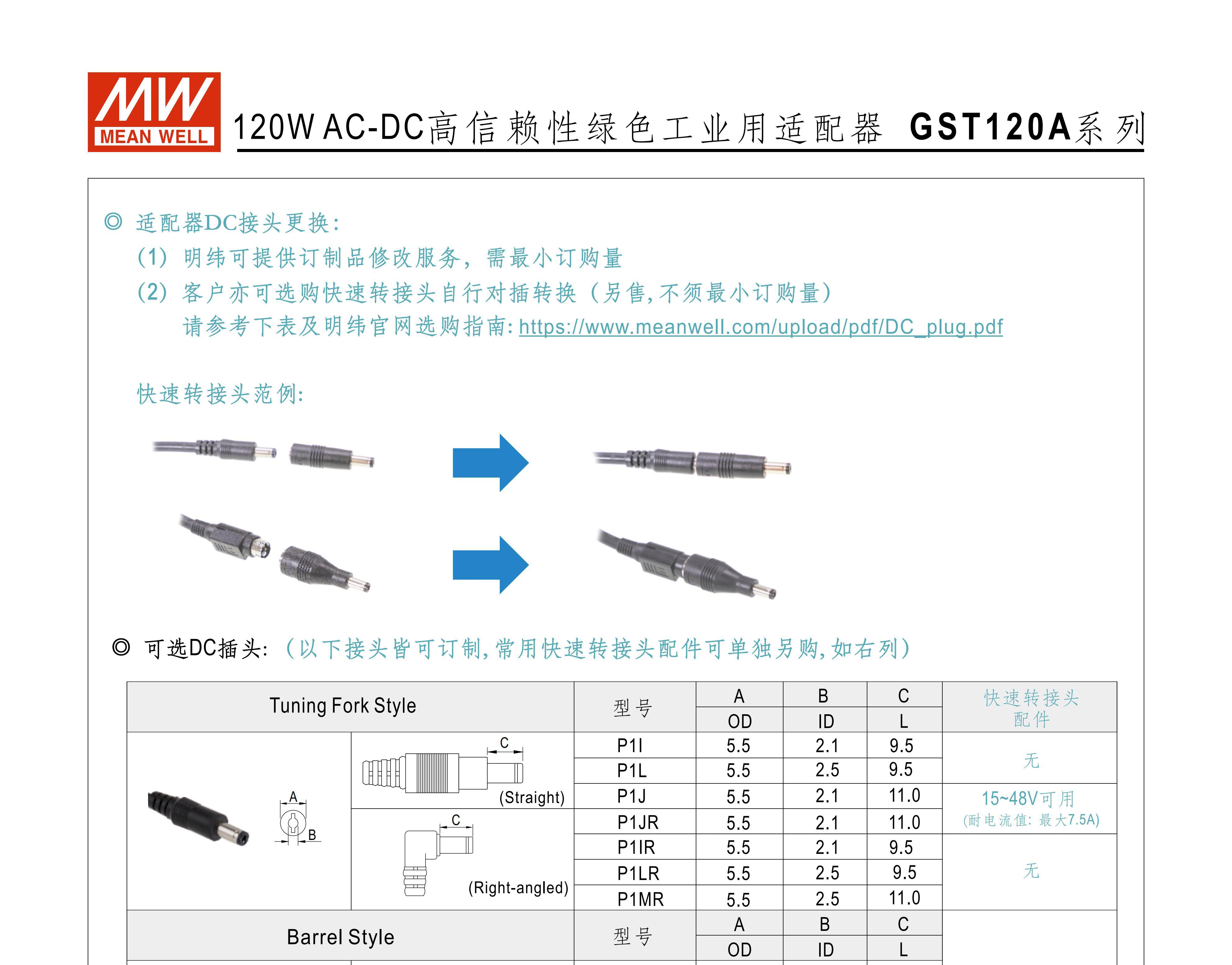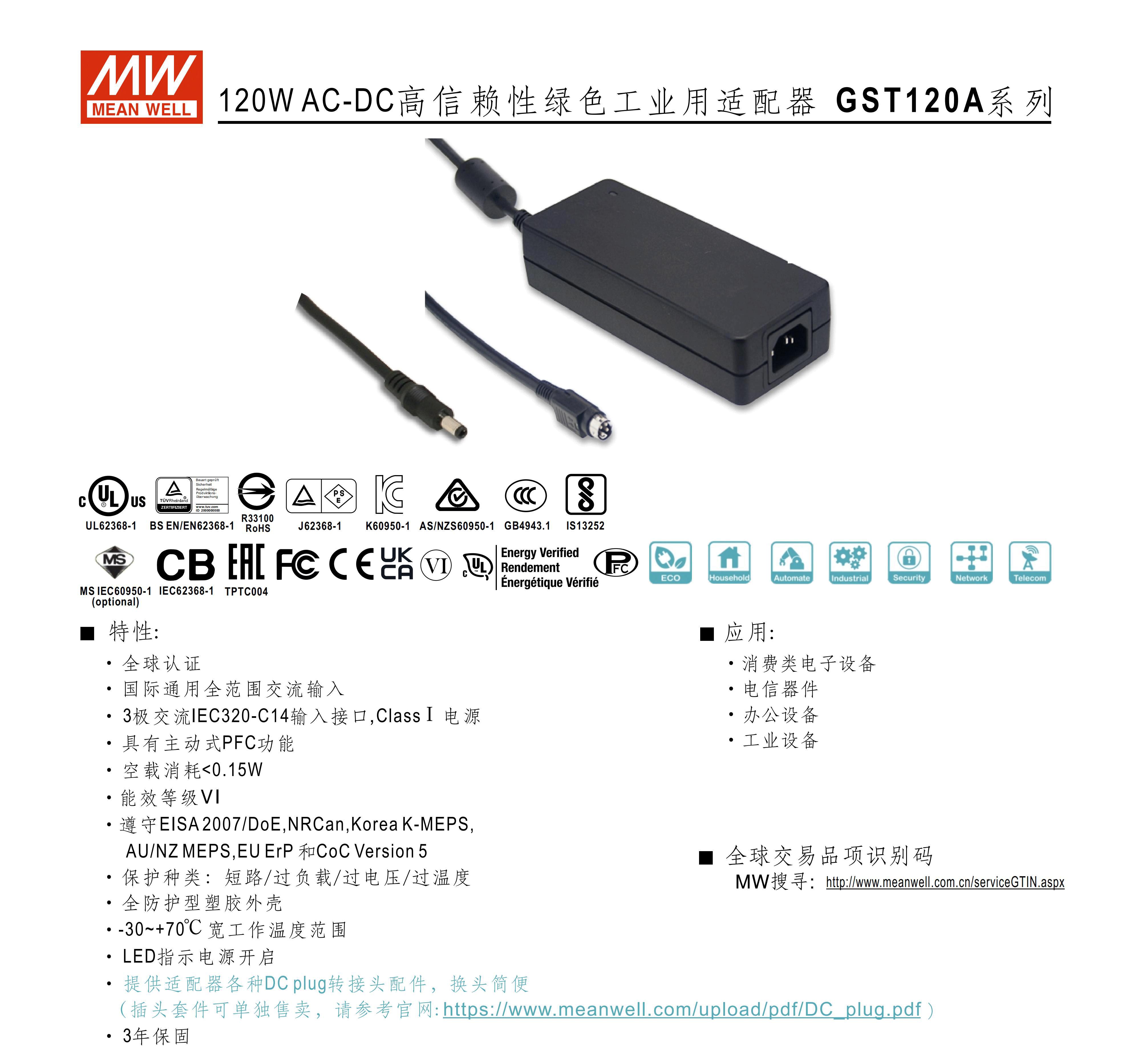 GST120A MEAN WELL A12/A15/A20/A24/A48 switching power supply R7B adapter P1M 12V24V G GST120A12-R7B 12V without input line