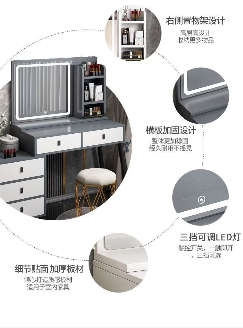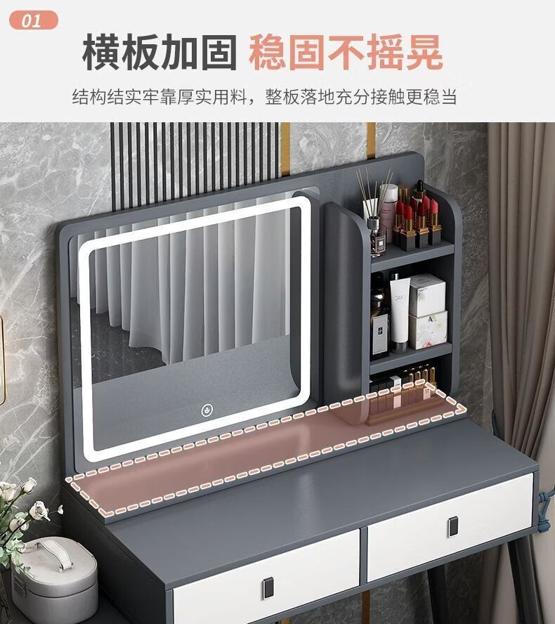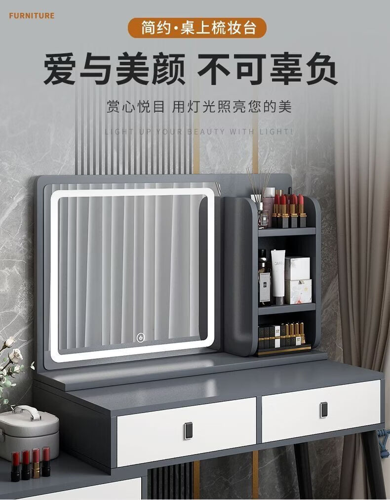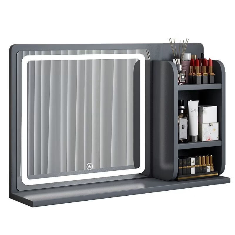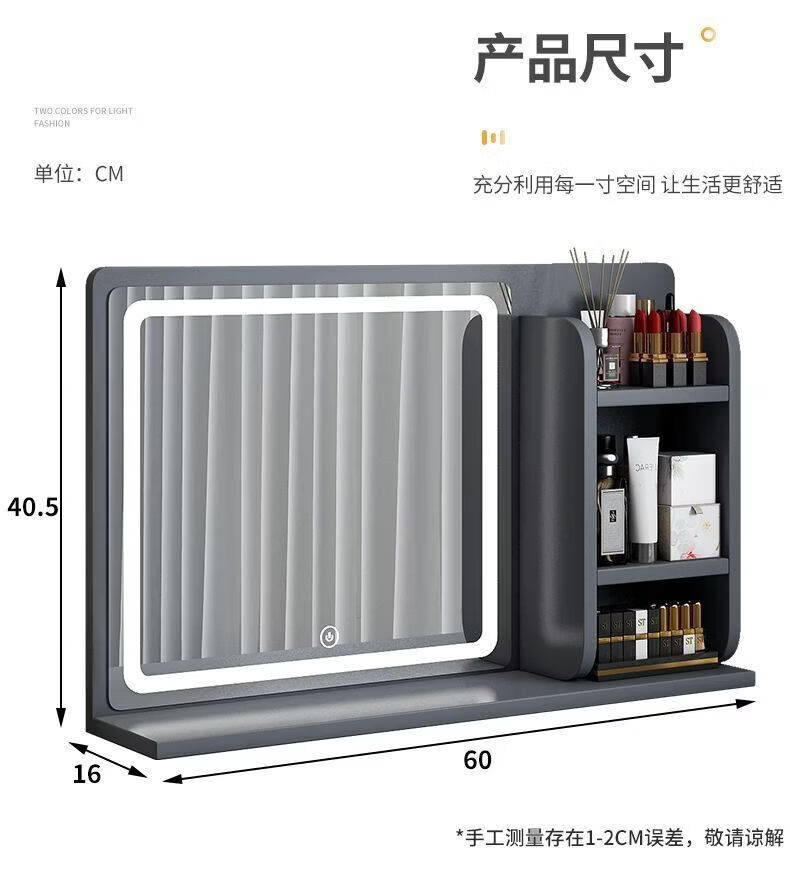 Led makeup mirror with light storage box integrated desktop bedroom dressing table sense fill-in light dressing mirror space design storage mirror 60CM gray + LED light only mirror no table see clearly to place an order