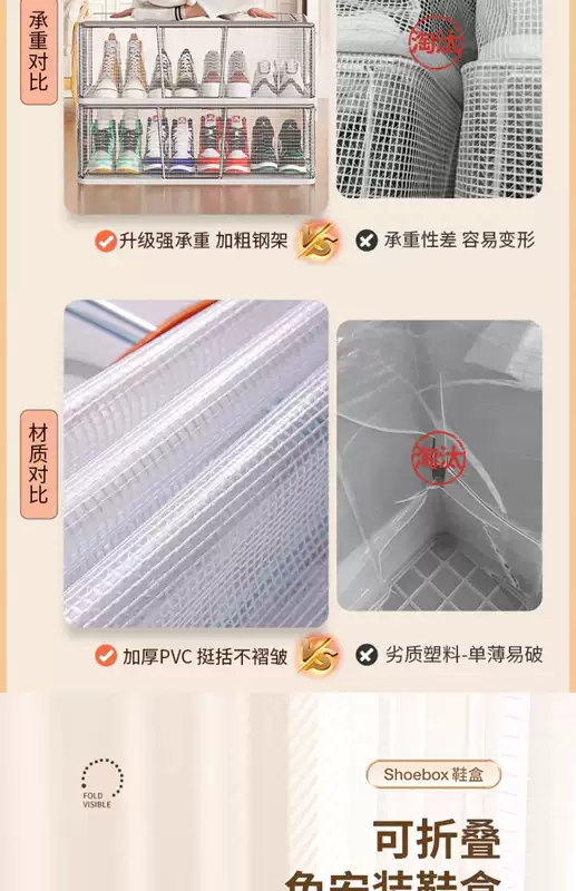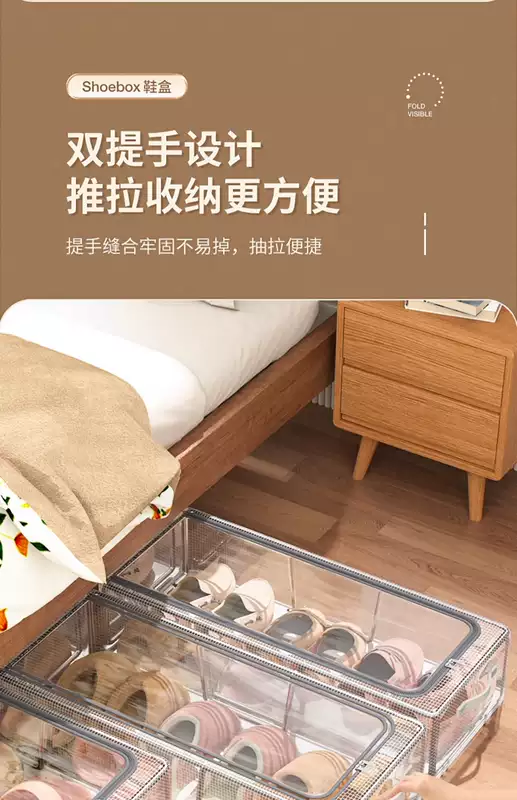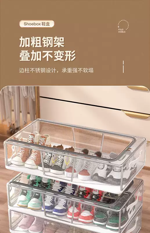 Yusenyi shoe box storage artifact space-saving anti-oxidation and dust-proof transparent storage box folding under-bed storage box bed bottom shoe cabinet medium size (1 piece) thickened steel frame stable stacking
