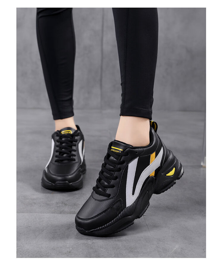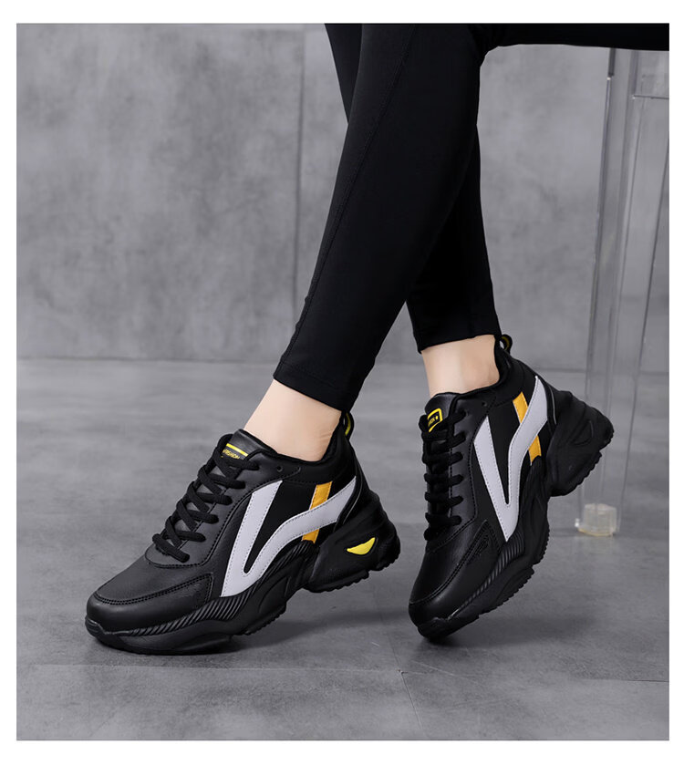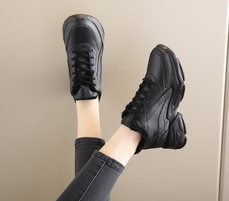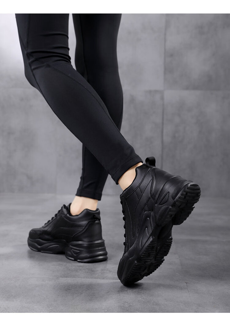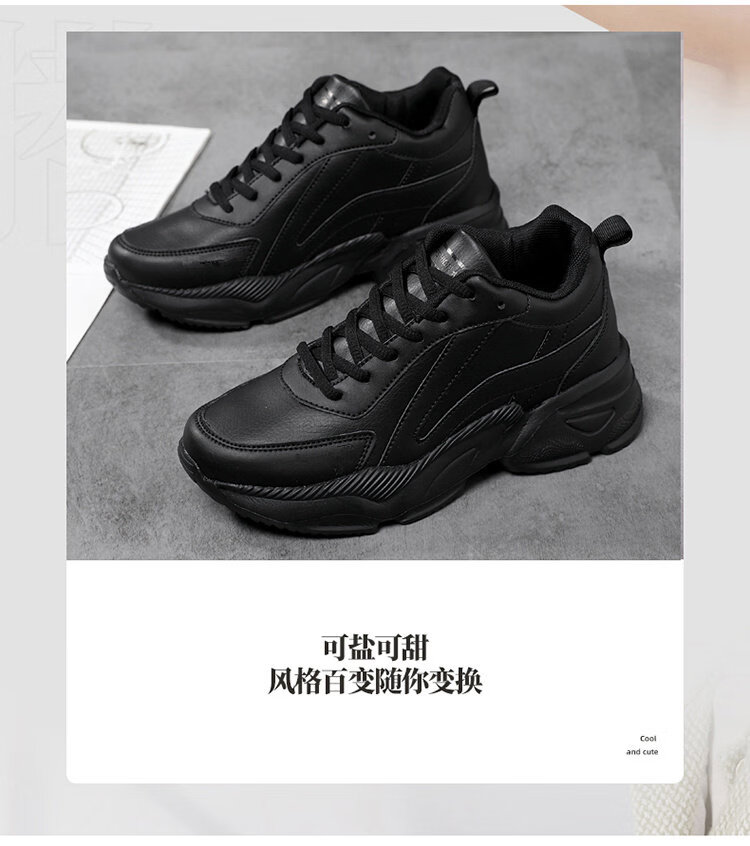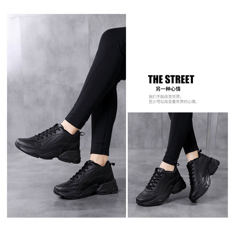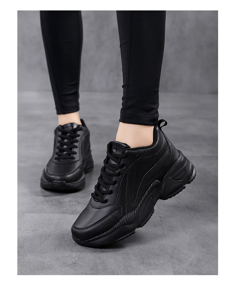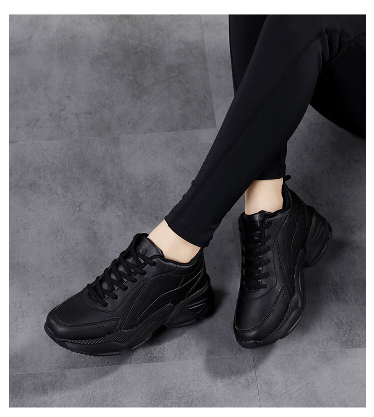 Woodpecker spring and autumn new black women's shoes leather waterproof casual travel shoes Korean version versatile thick sole non-slip dad shoes for women black leather 2288 36