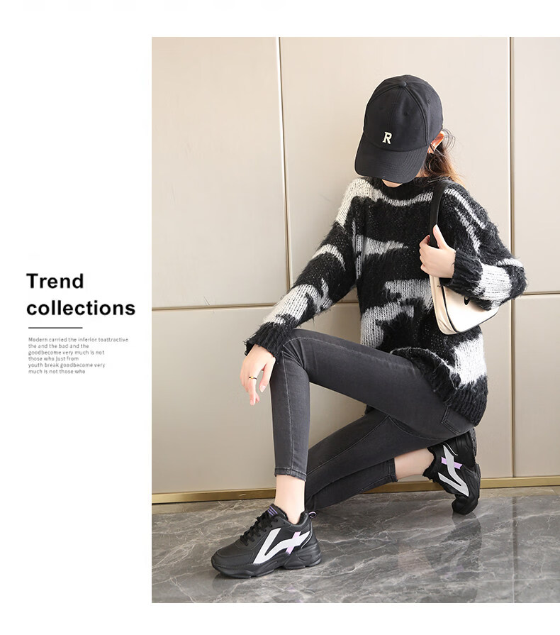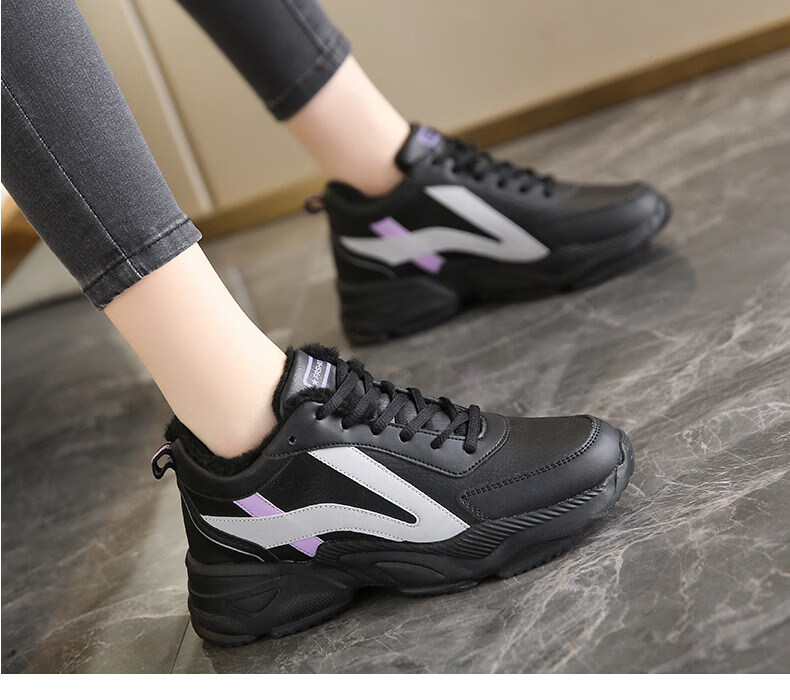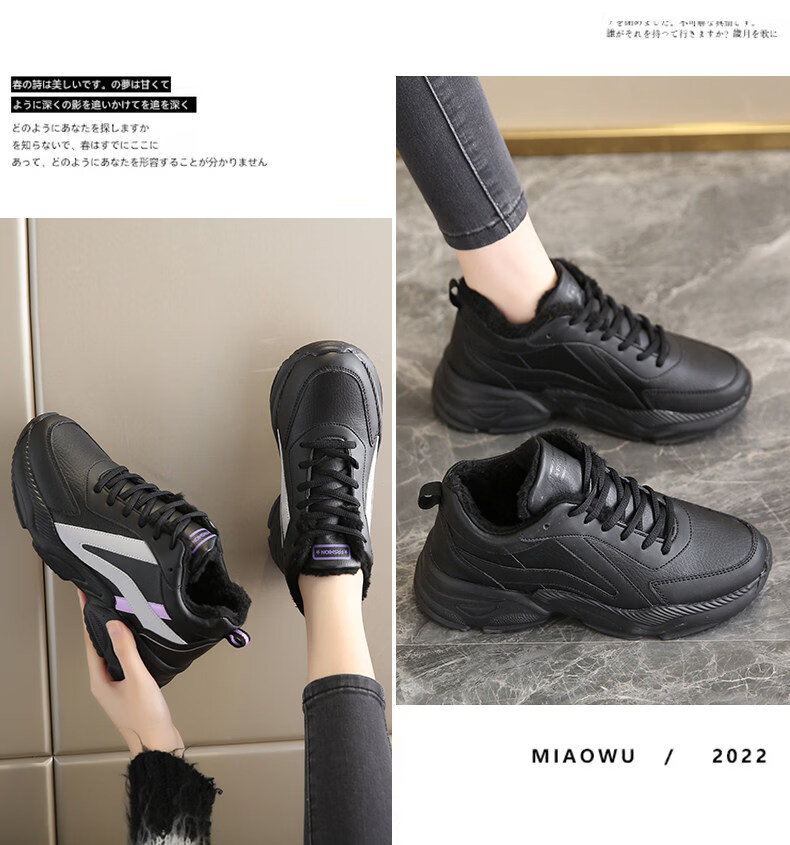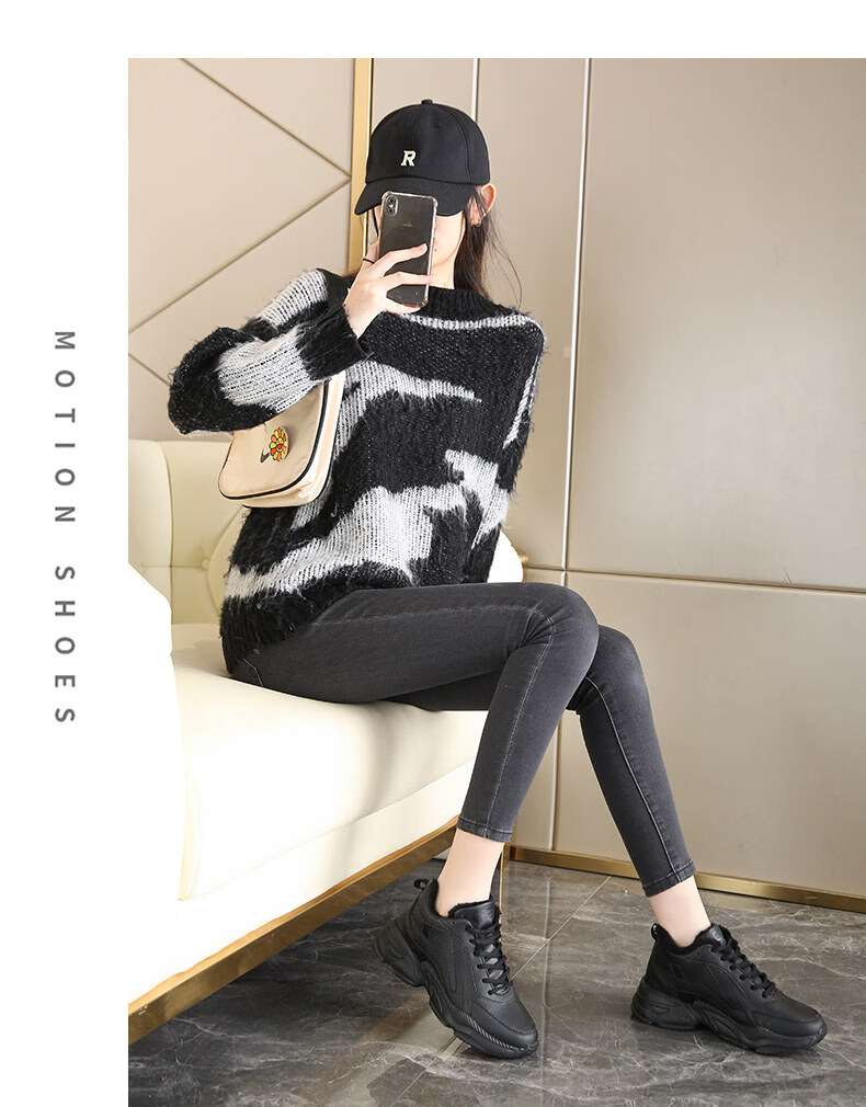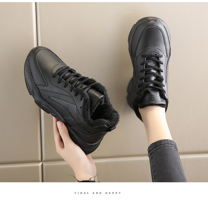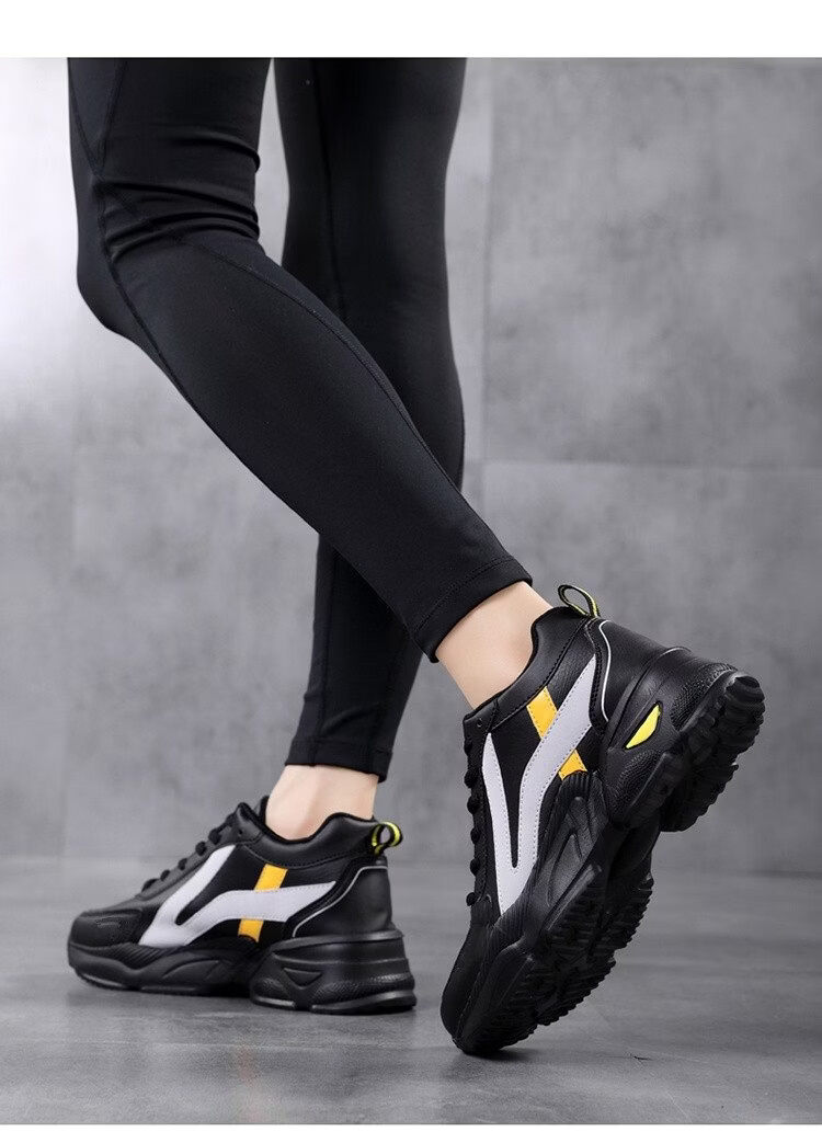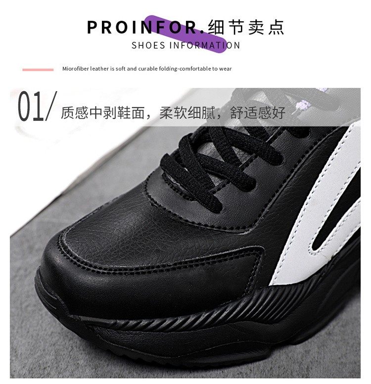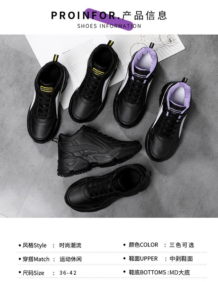 Woodpecker spring and autumn new black women's shoes leather waterproof casual travel shoes Korean version versatile thick sole non-slip dad shoes for women black leather 2288 36