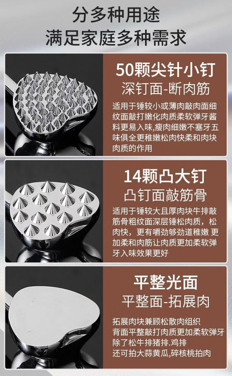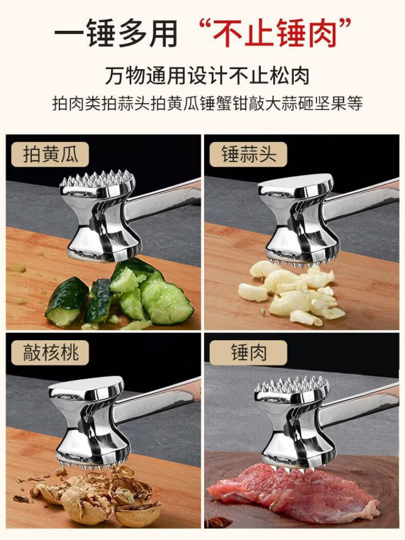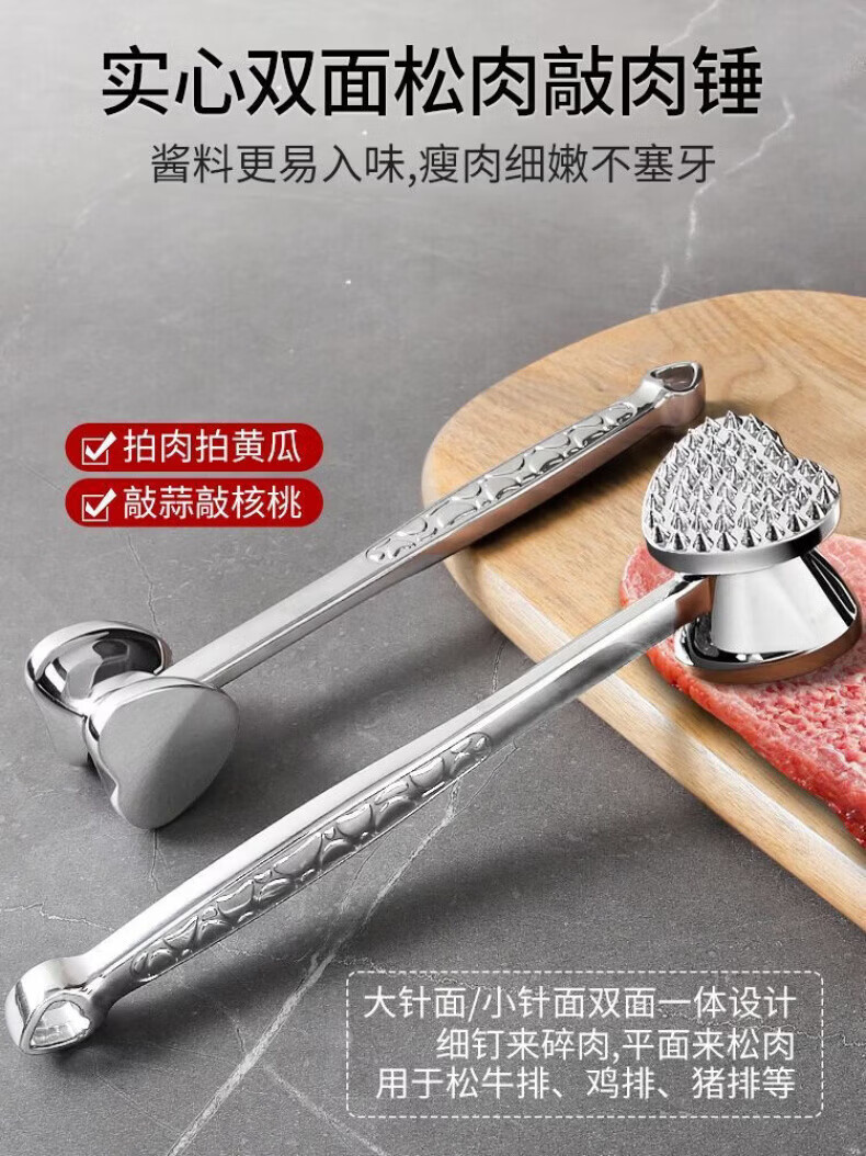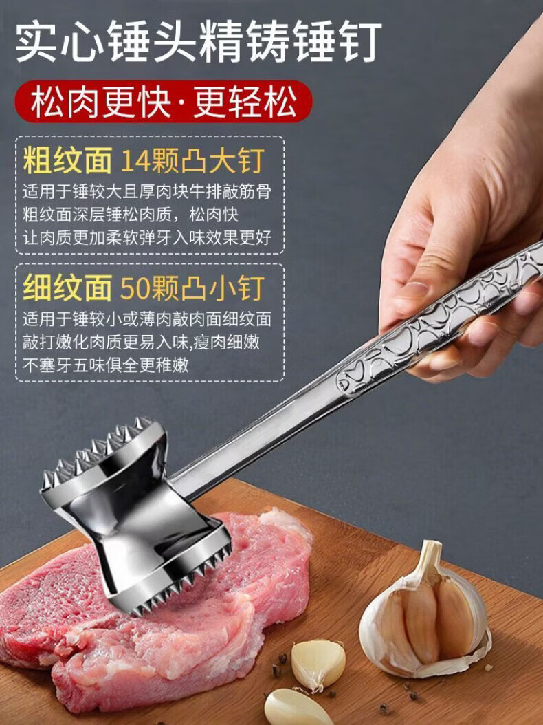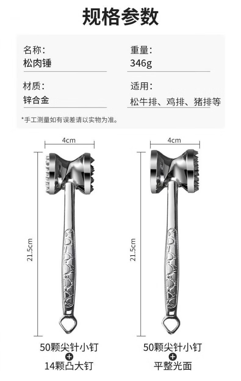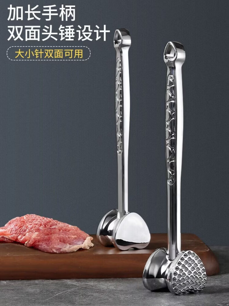 Shijin high-end quality meat hammer, double-sided steak hammer, pork slap, household meat hammer, tendon hammer, type A double-sided meat hammer, 50 sharp needle nails + flat smooth surface