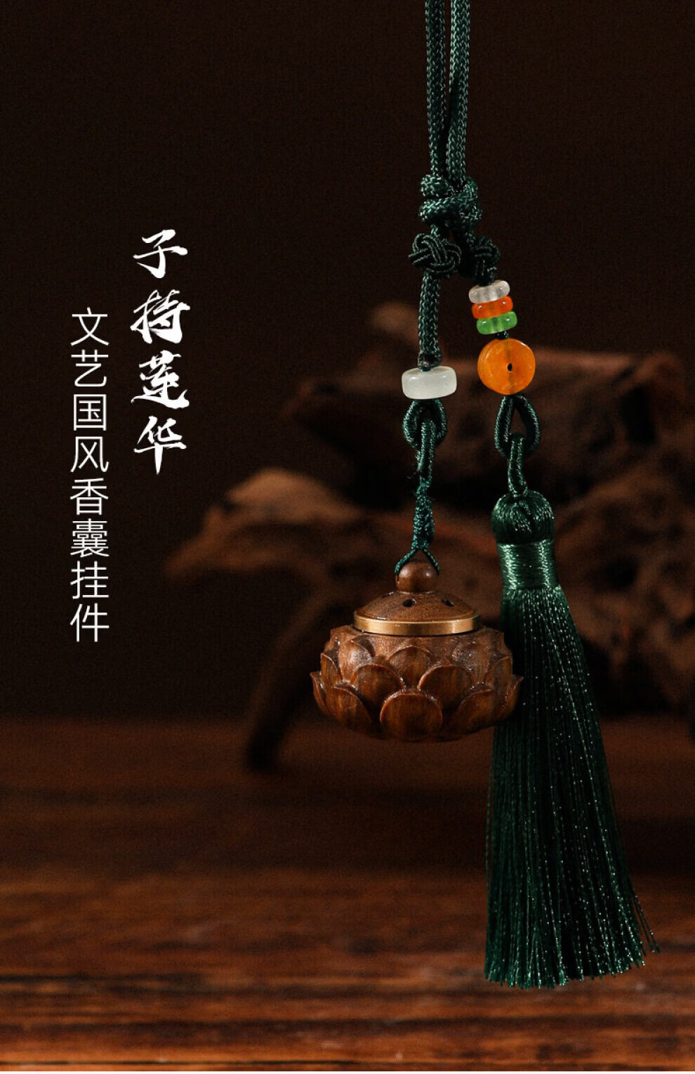 Lotus Aromatherapy Car Perfume Exquisite high-end sweet orange essential oil anti-depressant, soothing, sleep-aiding and incense diffuser wooden car hanging Lotus Aromatherapy Car Hanging Tsukino Lengshan 10ml