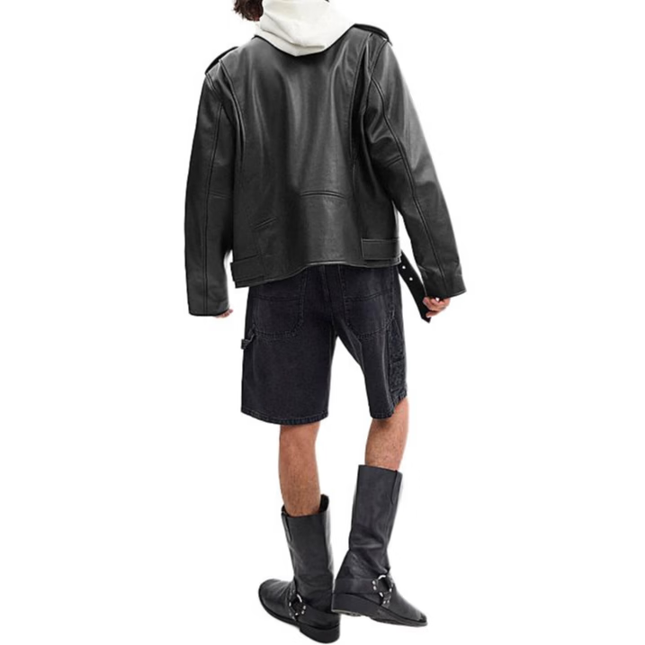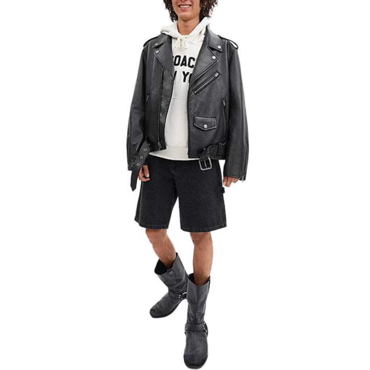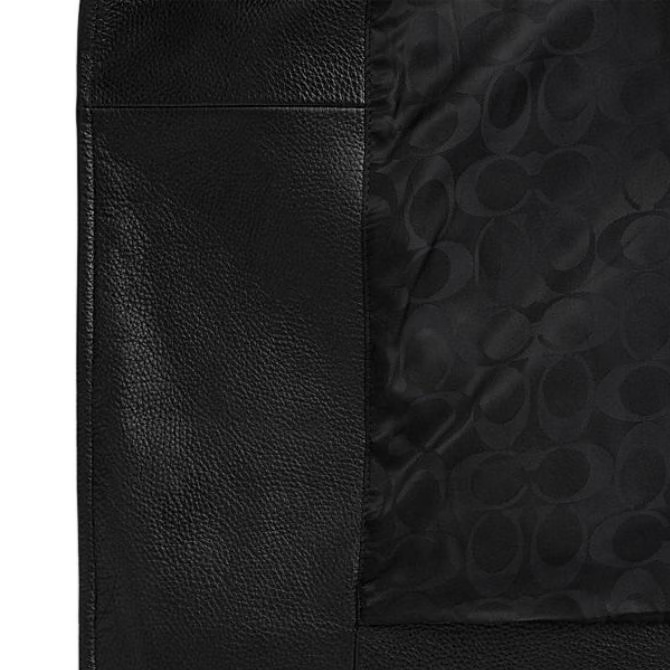 COACH SS24 Solid Color Lapel Zipper Long Sleeve Leather Jacket Men's Black Black S
