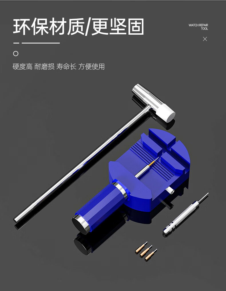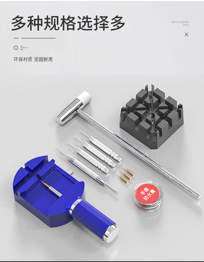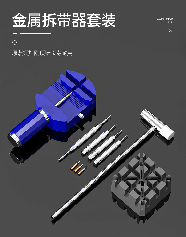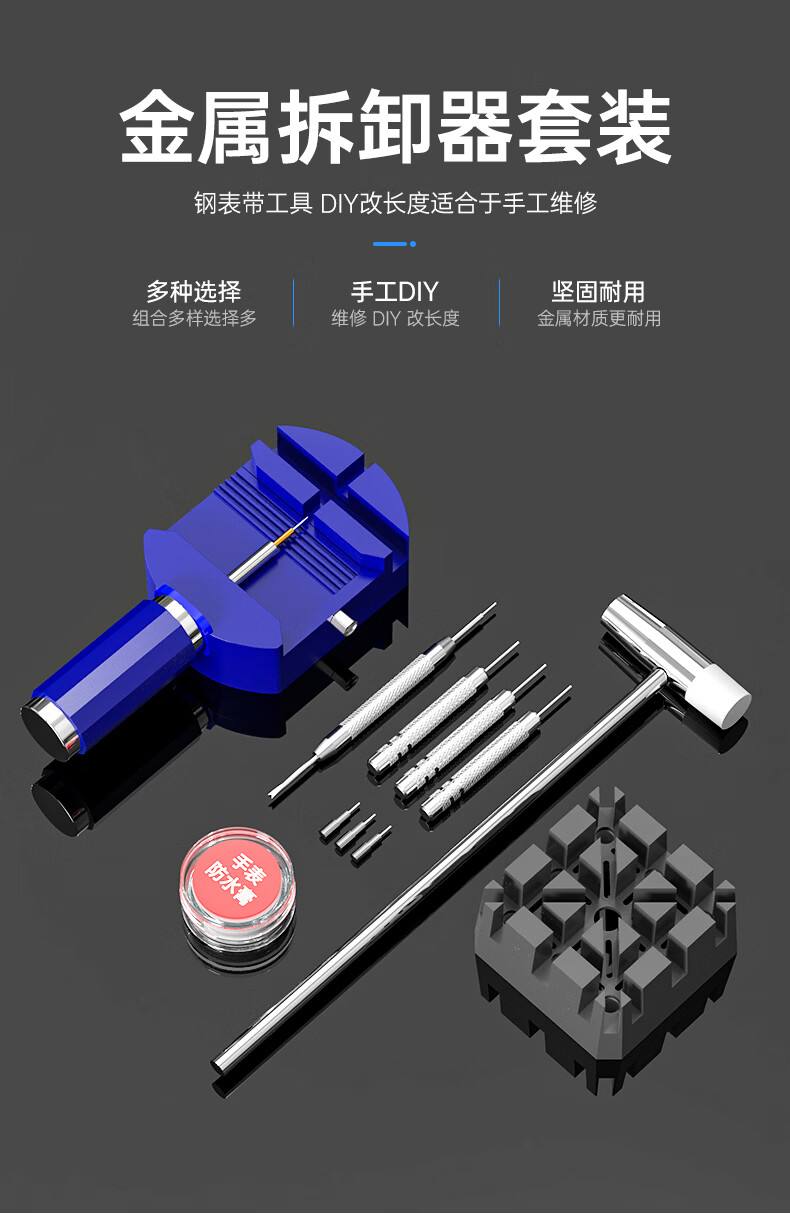 Watch strap remover watch adjustment chain removal tool set strap remover watch repair combination watch tool waterproof blue plastic strap remover + small hammer + rice base + three punches + ear screws + three steel needles