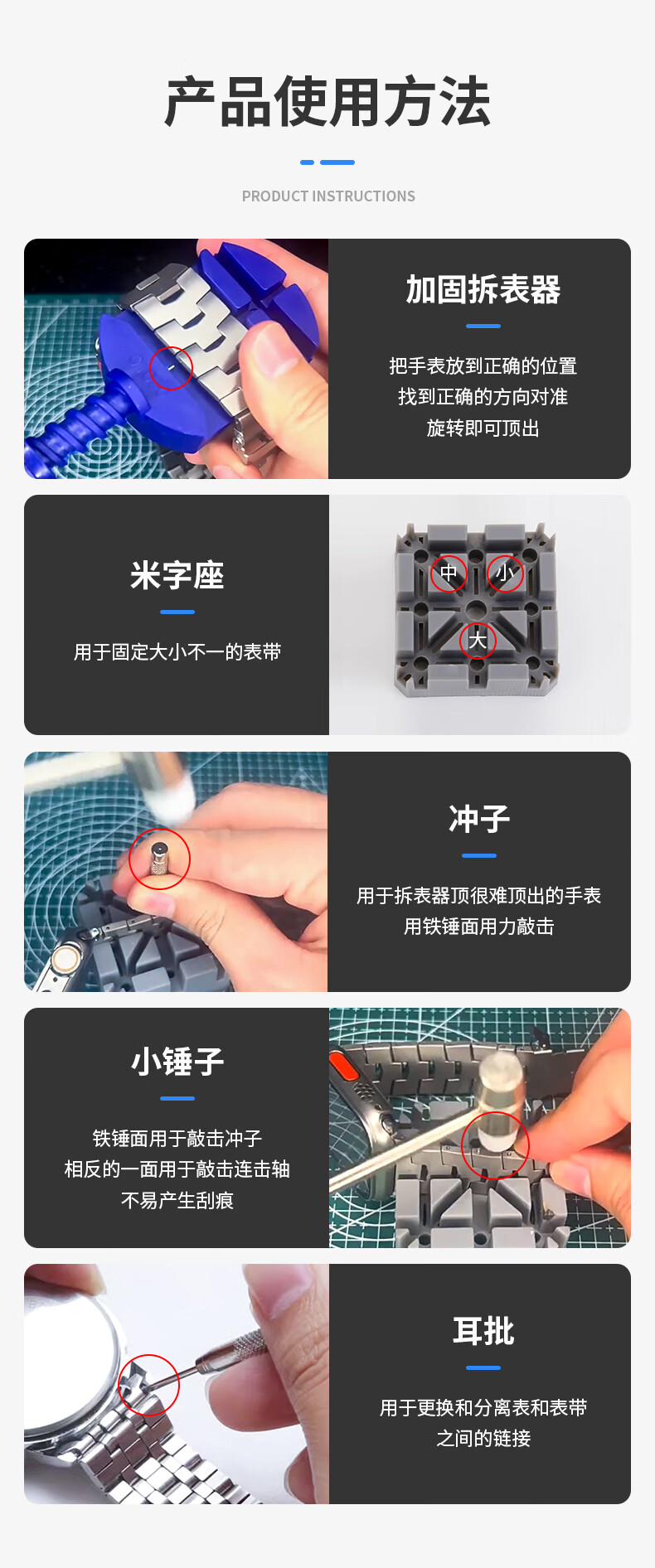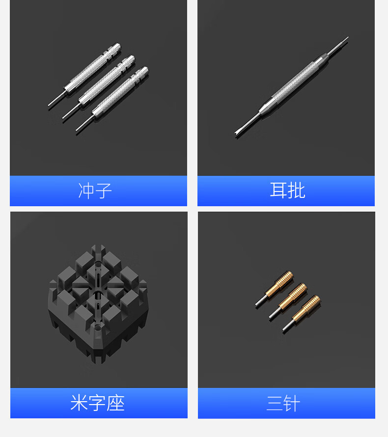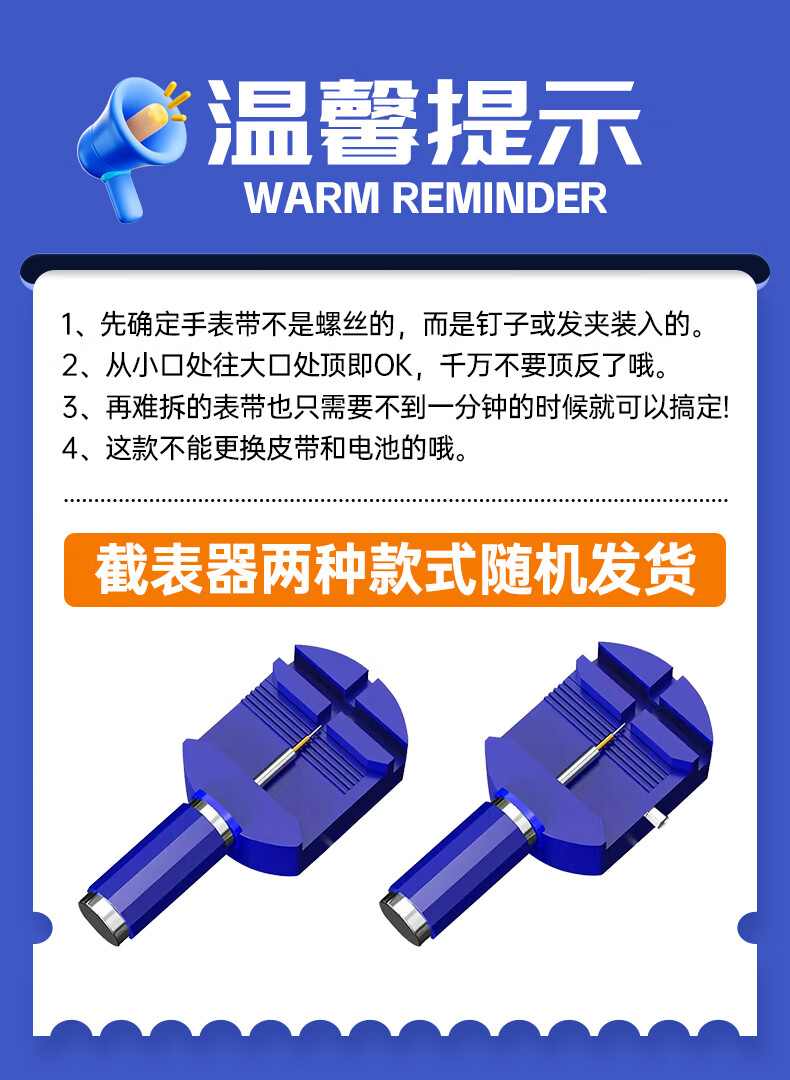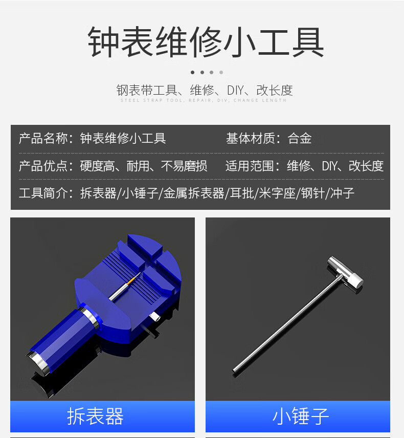 Watch strap remover watch adjustment chain removal tool set strap remover watch repair combination watch tool waterproof blue plastic strap remover + small hammer + rice base + three punches + ear screws + three steel needles