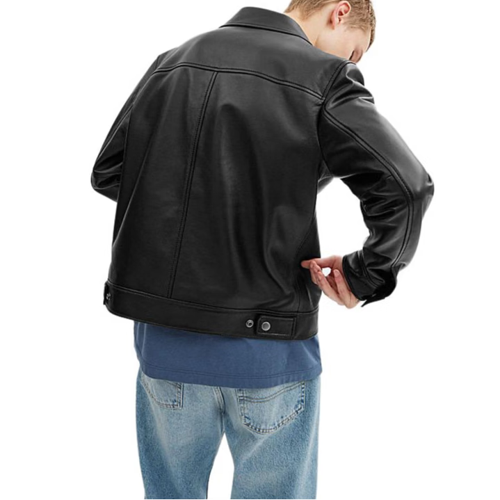 蔻驰(COACH)FW24 纯色拉链翻领长袖皮衣 男款 黑色 黑色 M