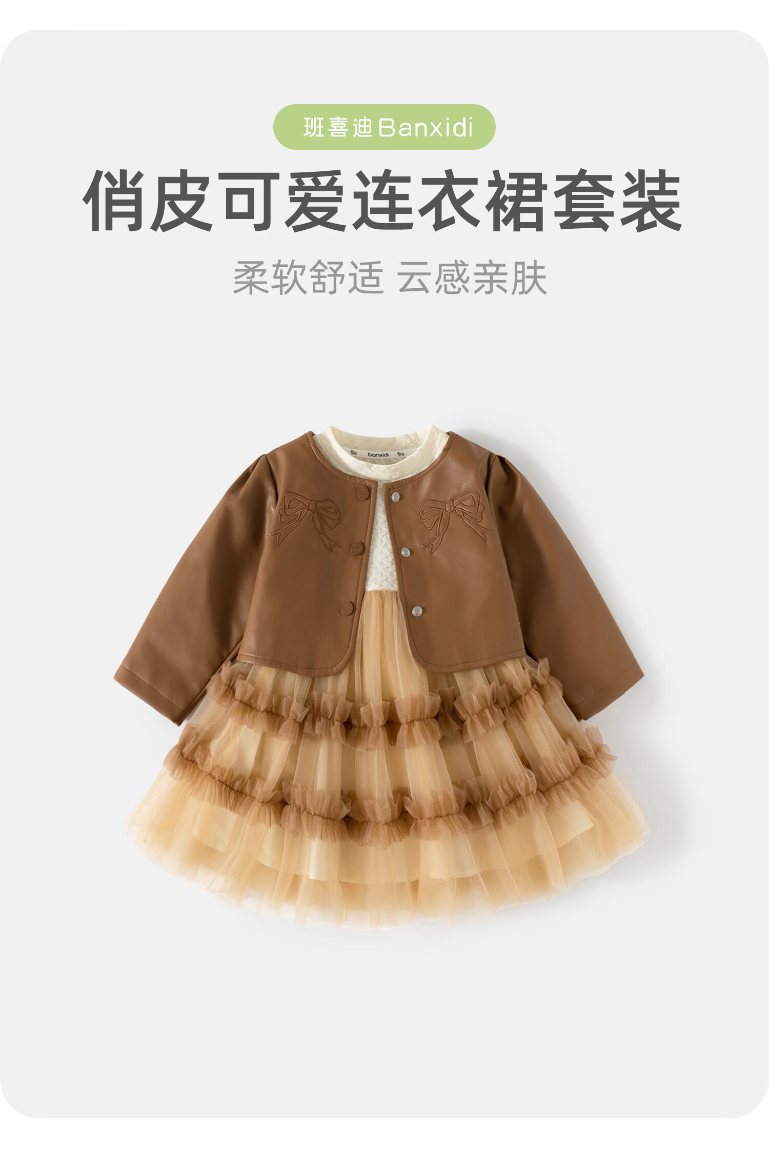 Banxidi girls suit spring new fashion fashionable baby princess dress jacket jacket children's clothes small children's clothing coffee color 100