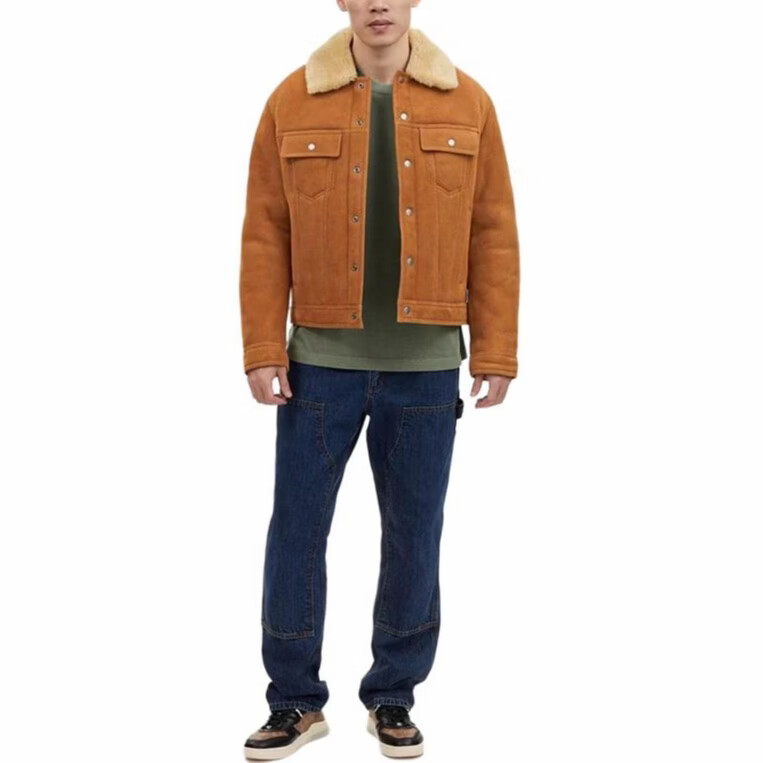 COACH FW Однотонная кожаная куртка с застежкой на пуговицы и длинными рукавами Мужская Темно-коричневый Темно-коричневый S