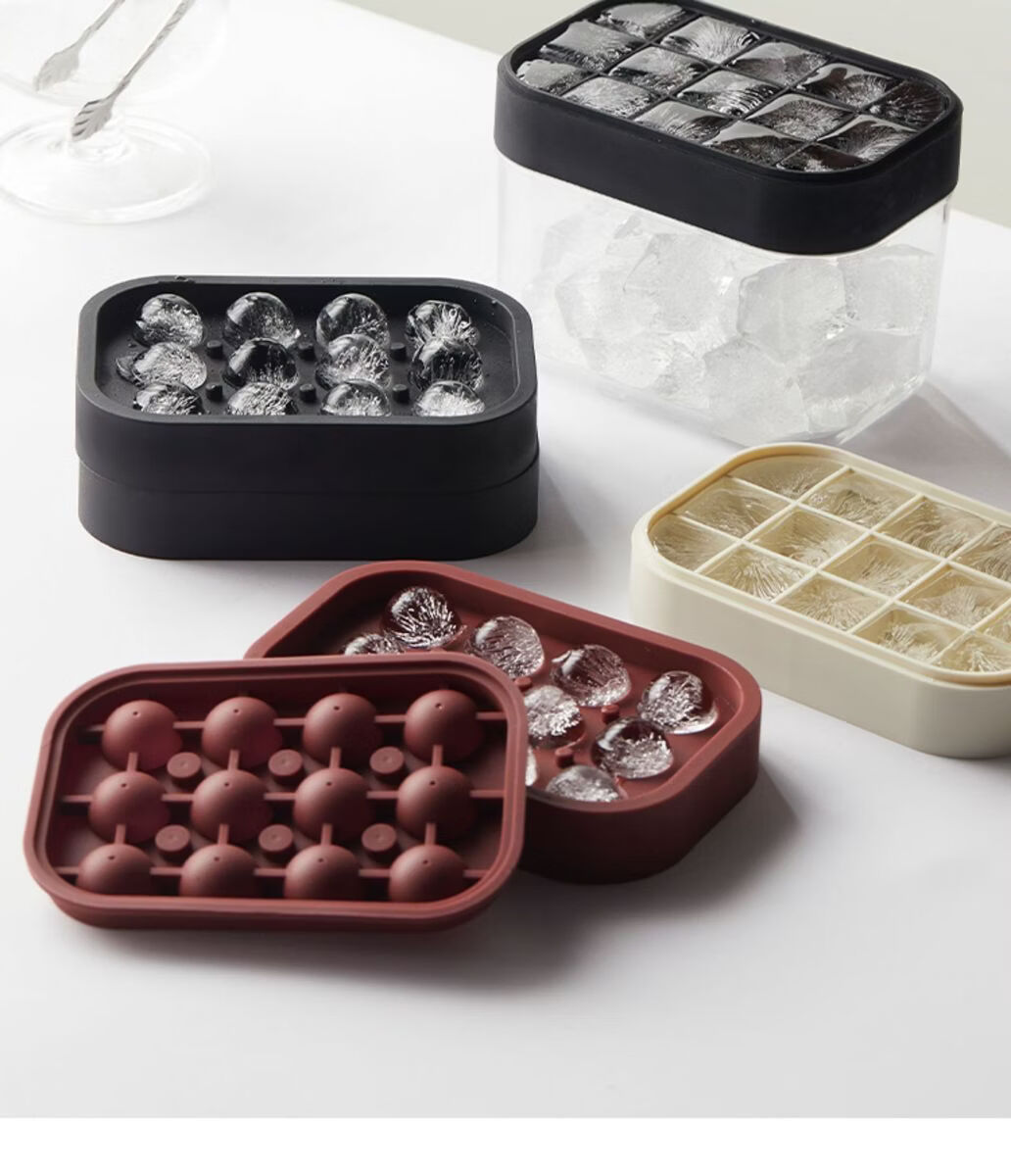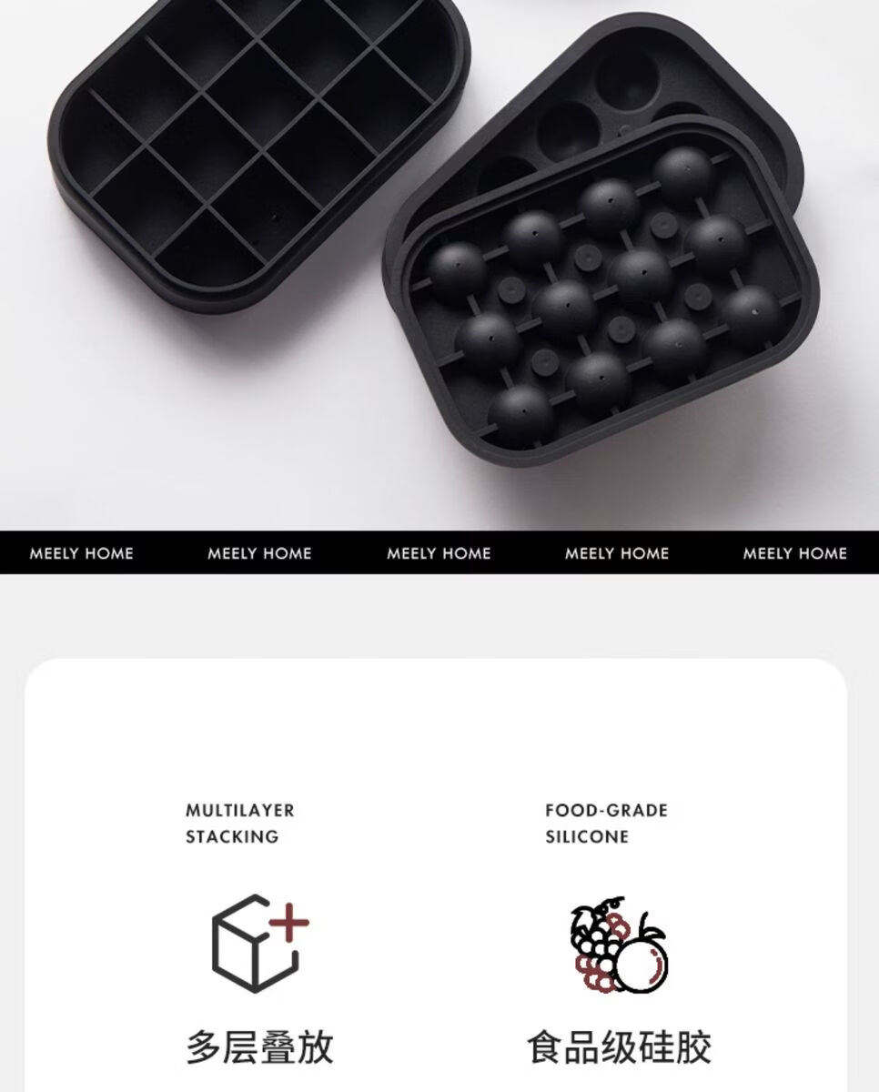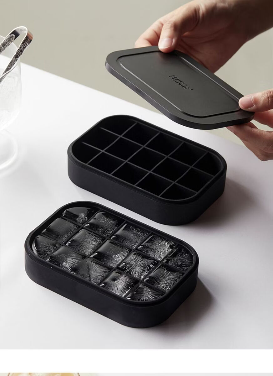 Yongfanwu black ice cube grinder soft frozen ice cube mold frozen ice ball ice box large black 32 compartment ice storage box 1 layer food grade platinum silicone (square