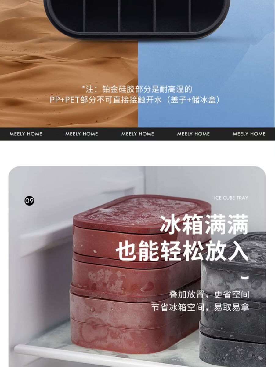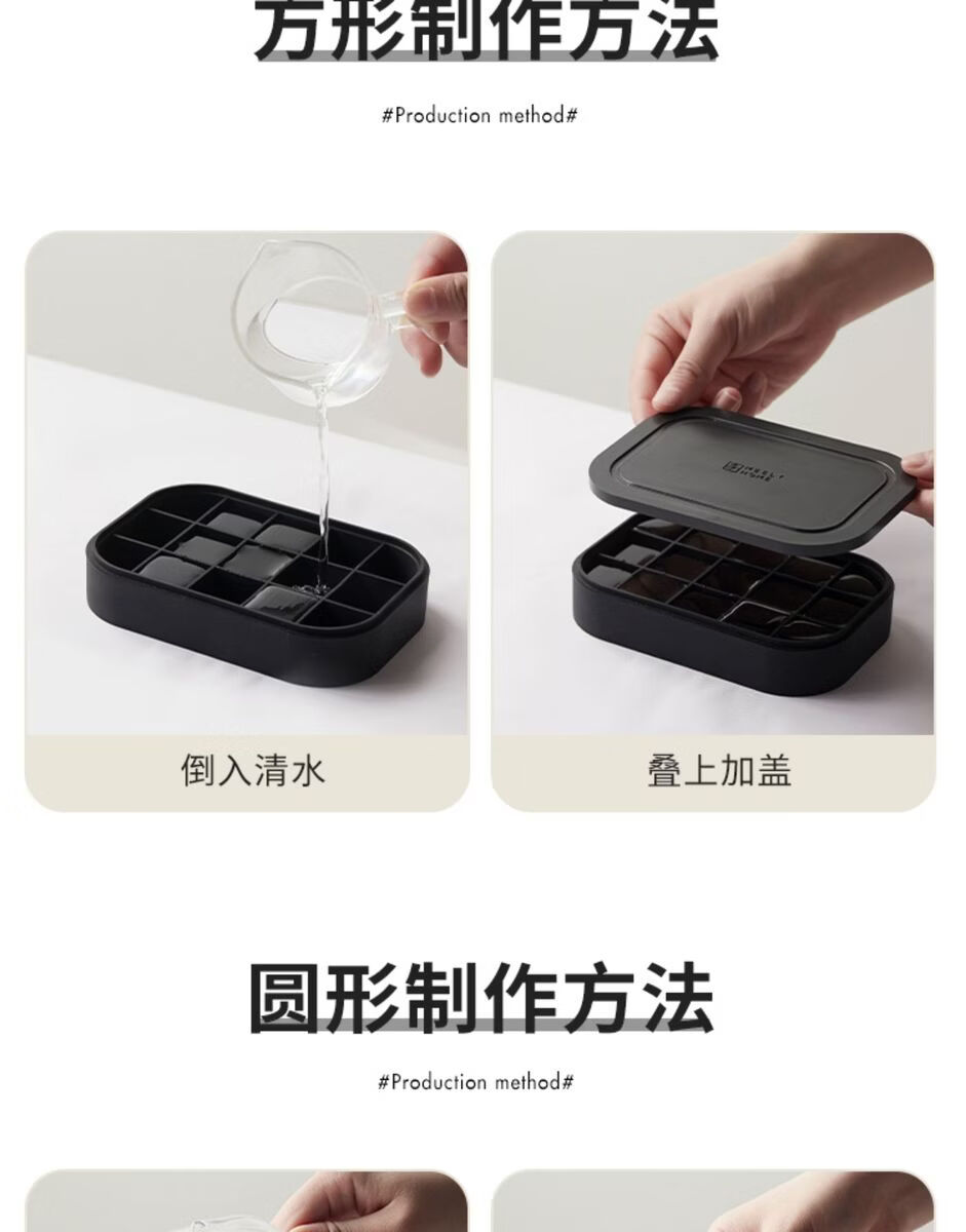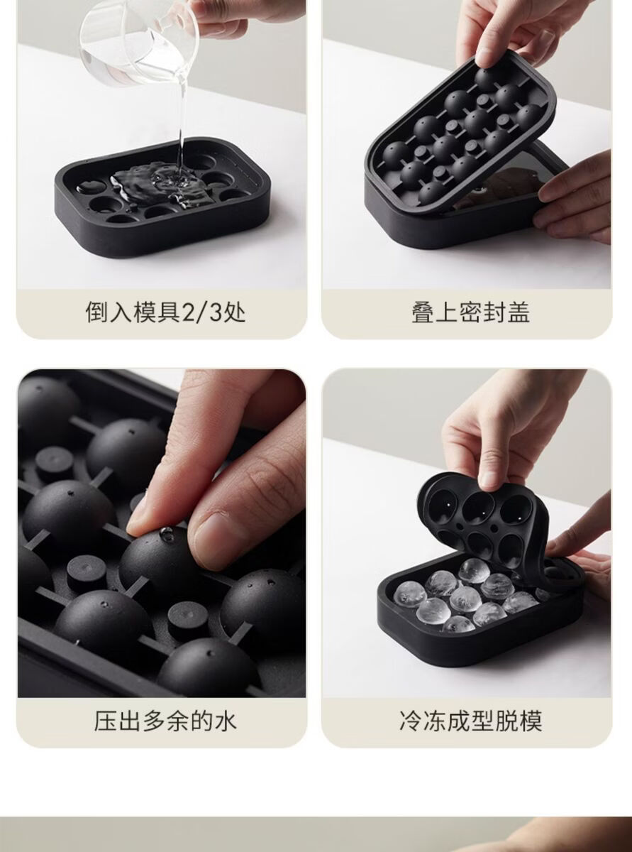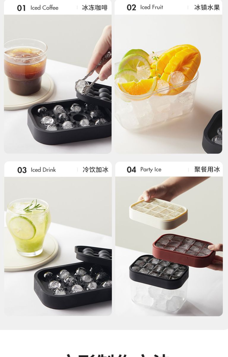 Yongfanwu black ice cube grinder soft frozen ice cube mold frozen ice ball ice box large black 32 compartment ice storage box 1 layer food grade platinum silicone (square