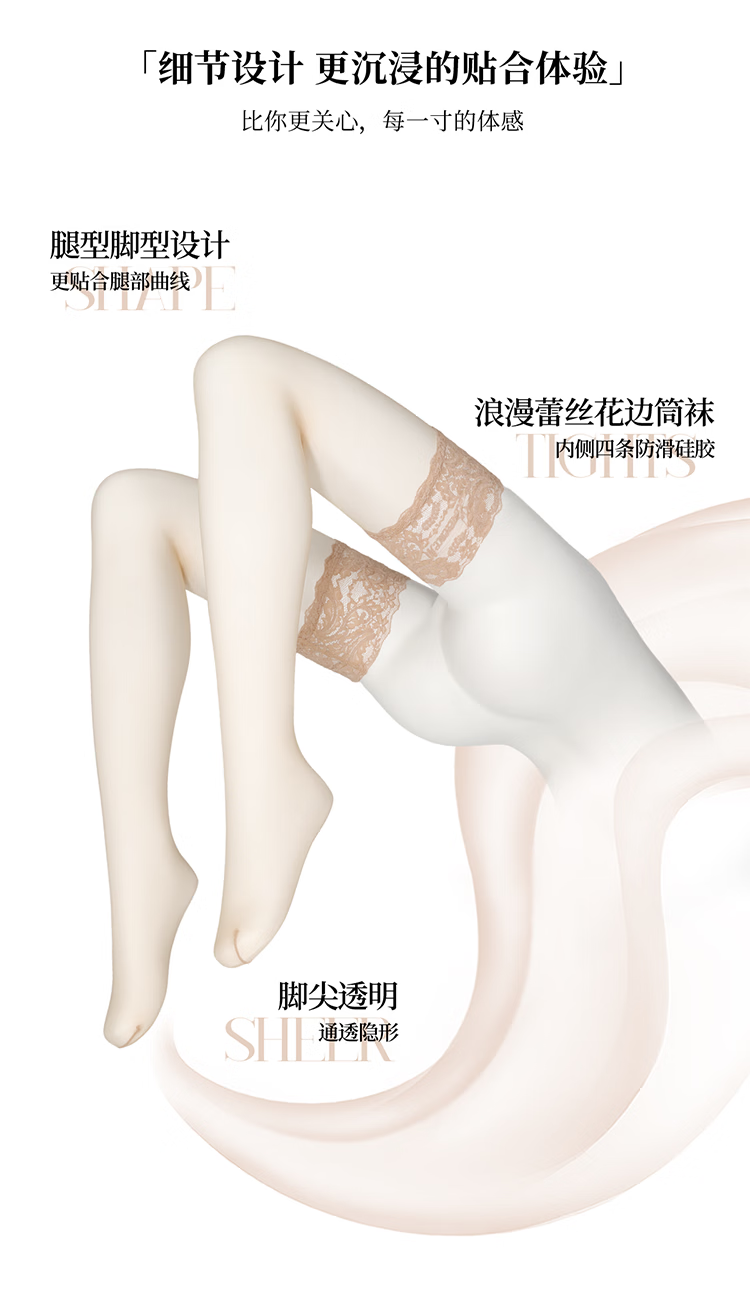 Limerence M Limerence Monet Garden Silky Glossy Stockings Women's Thin Spring and Autumn Stockings Sexy Lace High Stockings White M 0.01 Silky Style One Size (150-180c)