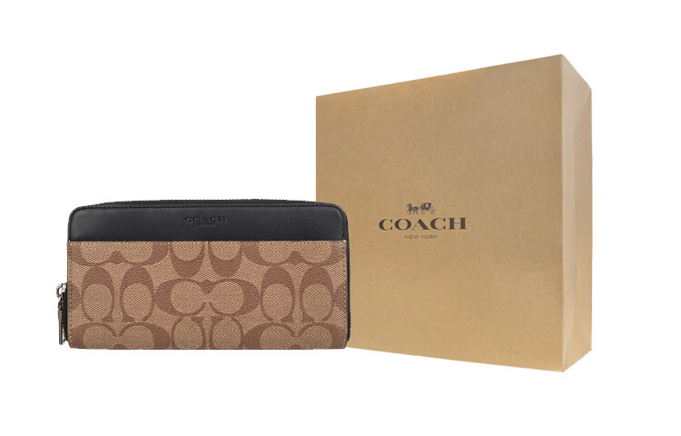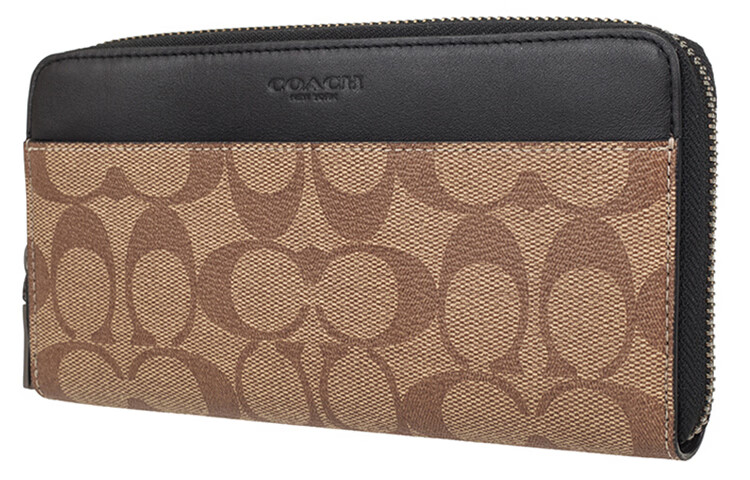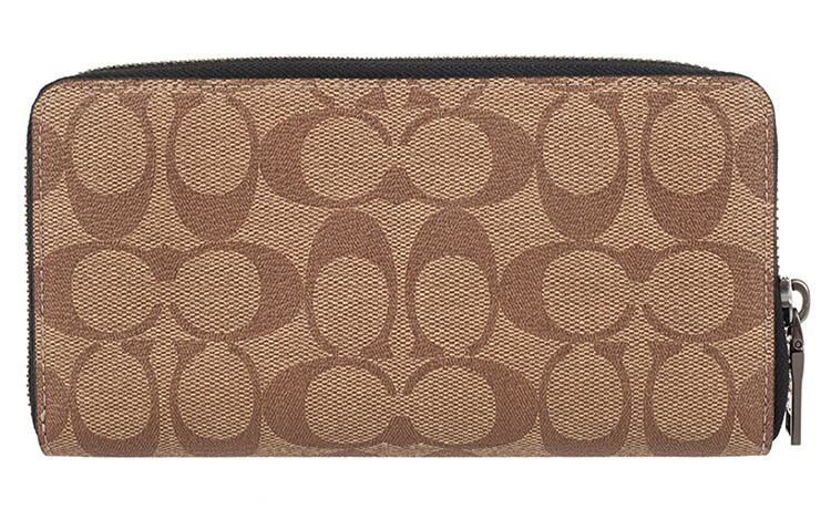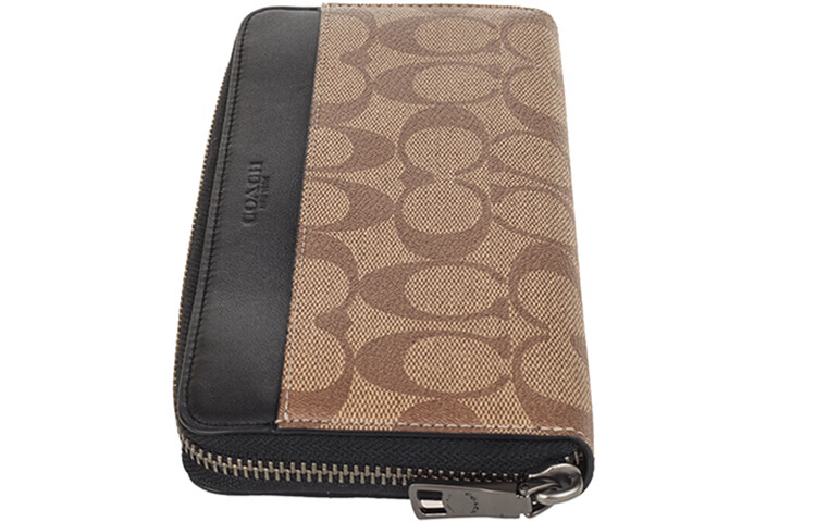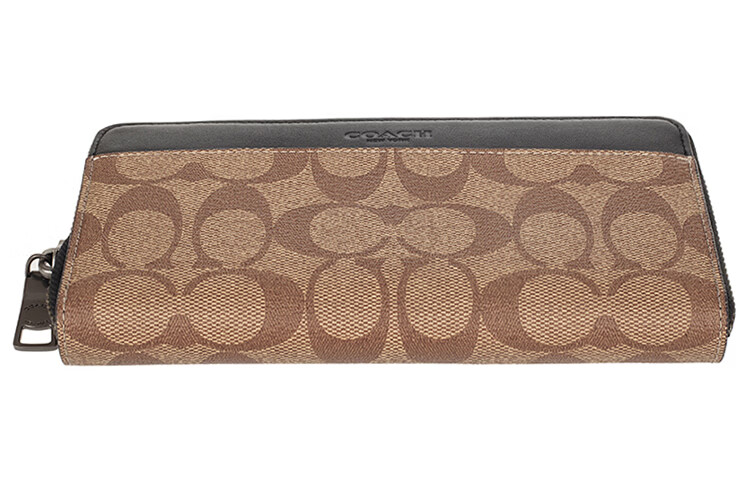 COACH Accordion Wallet Long Zipper PVC Accordion Bag Wallet Men's Khaki Brown Default Basic Pack (Bag + Dust Bag)