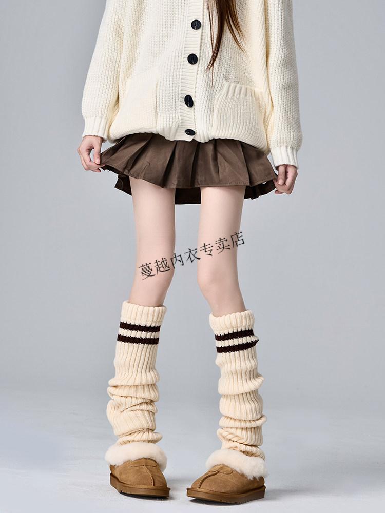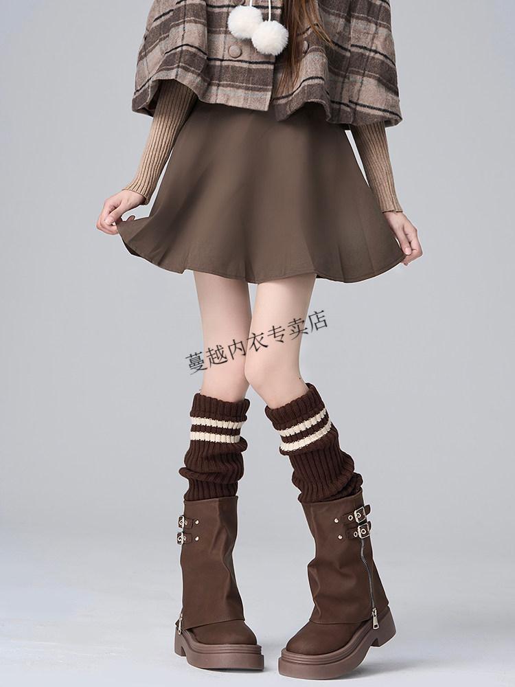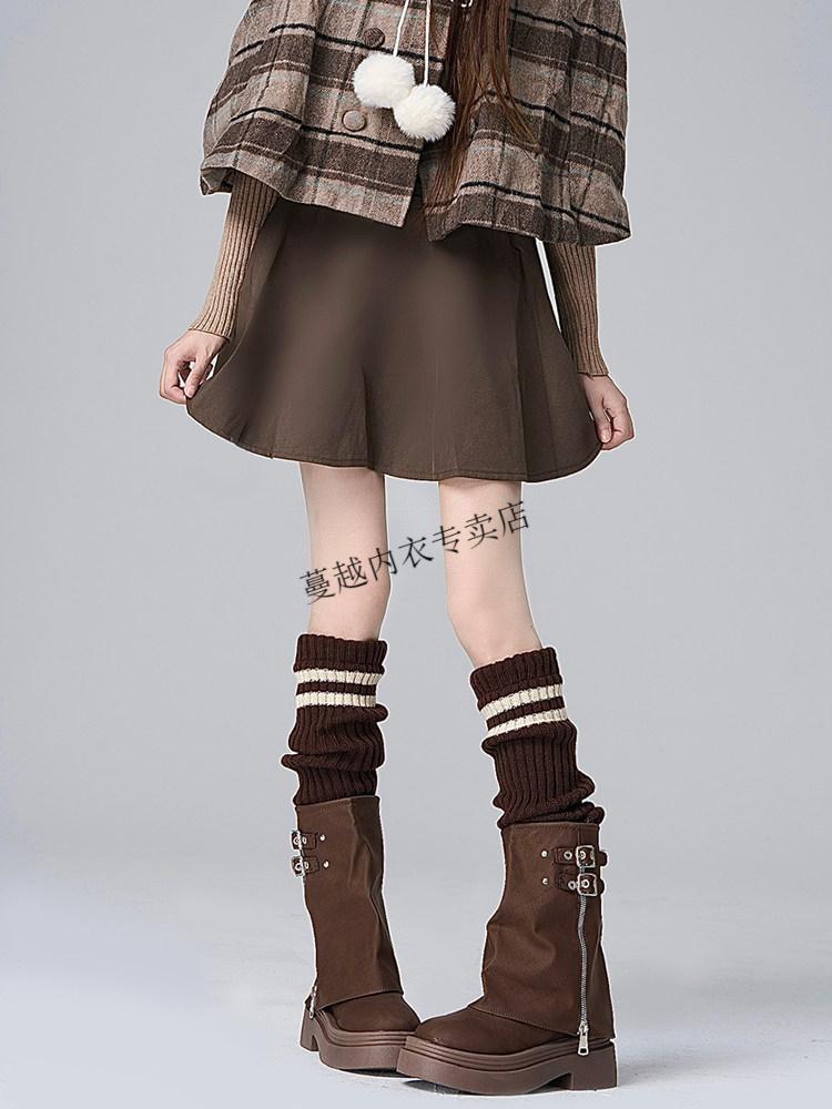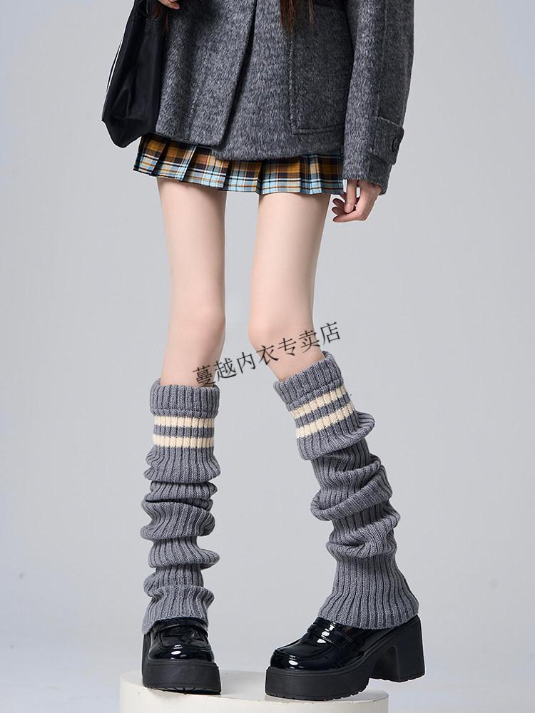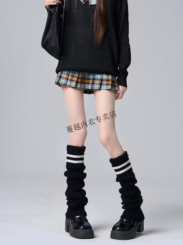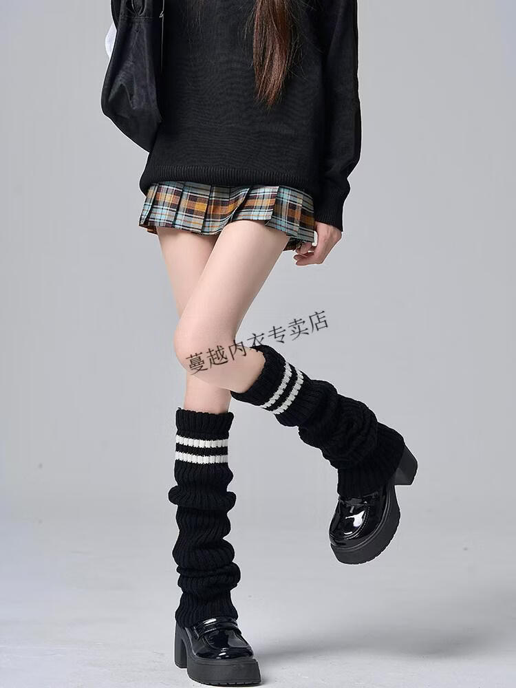 Modal Japanese jk knitted socks women's striped black slimming autumn and winter thick warm leg covers hot girl long calf pile socks black one size