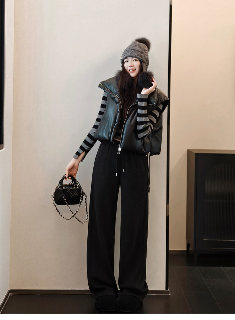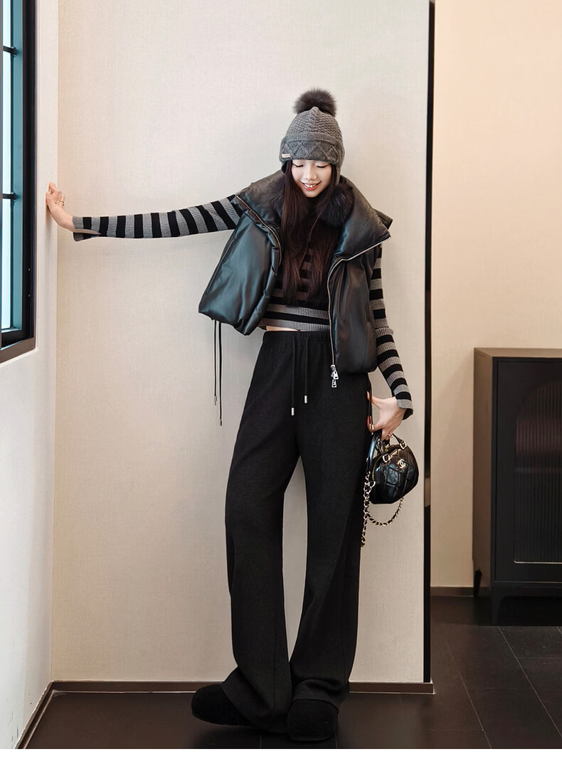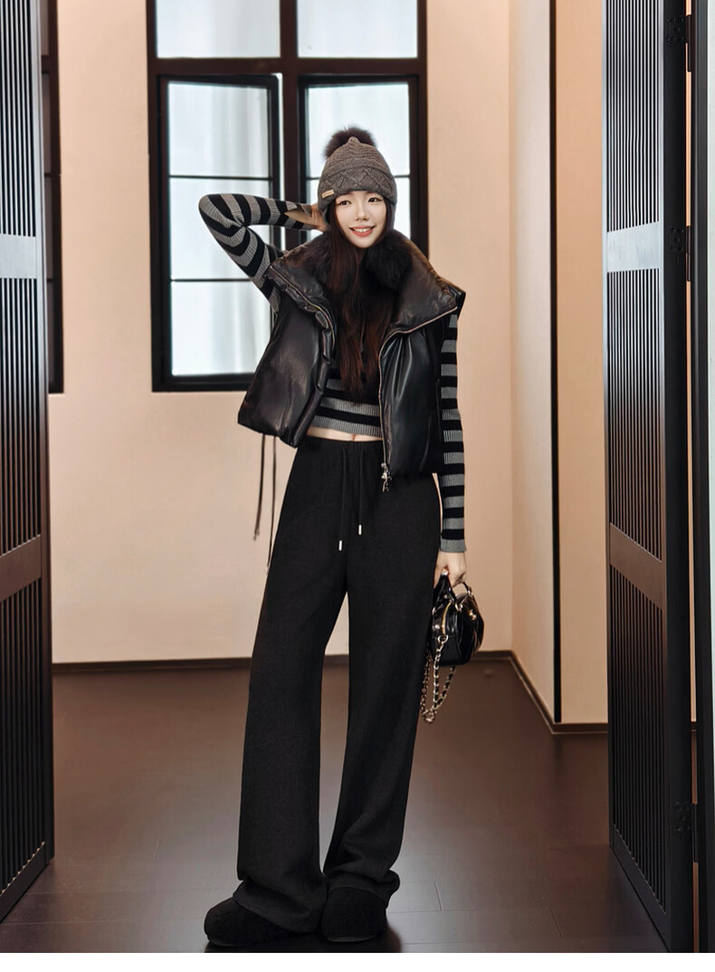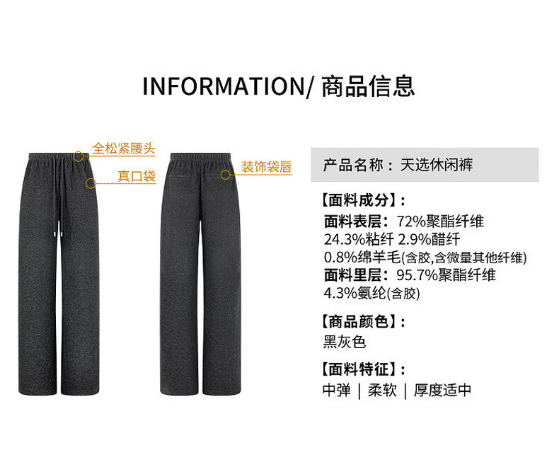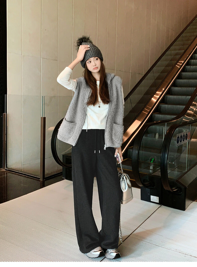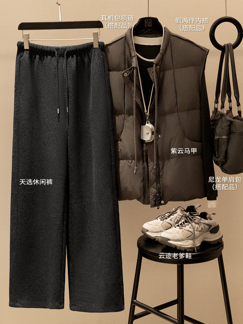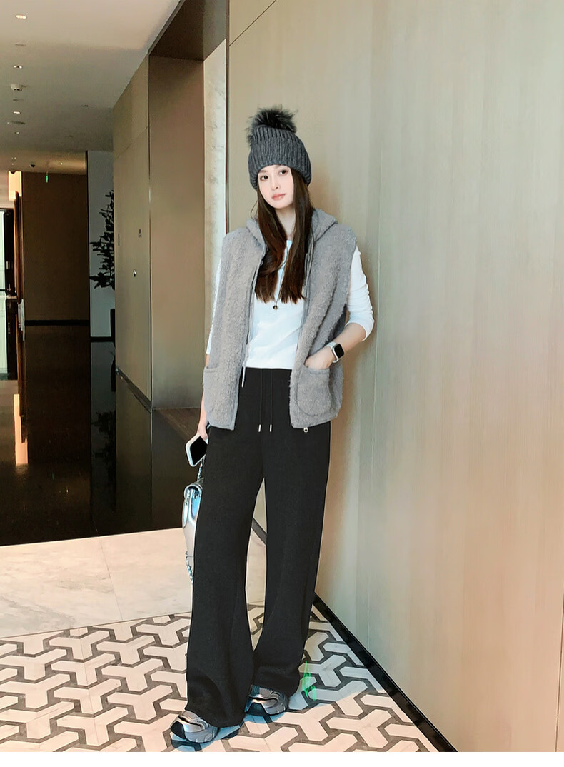 MEIYANG's Choice Casual Pants Capsule Wardrobe Double-sided Velvet Feel Straight Pants Small 60-Wednesday Black Gray (Regular Version) M